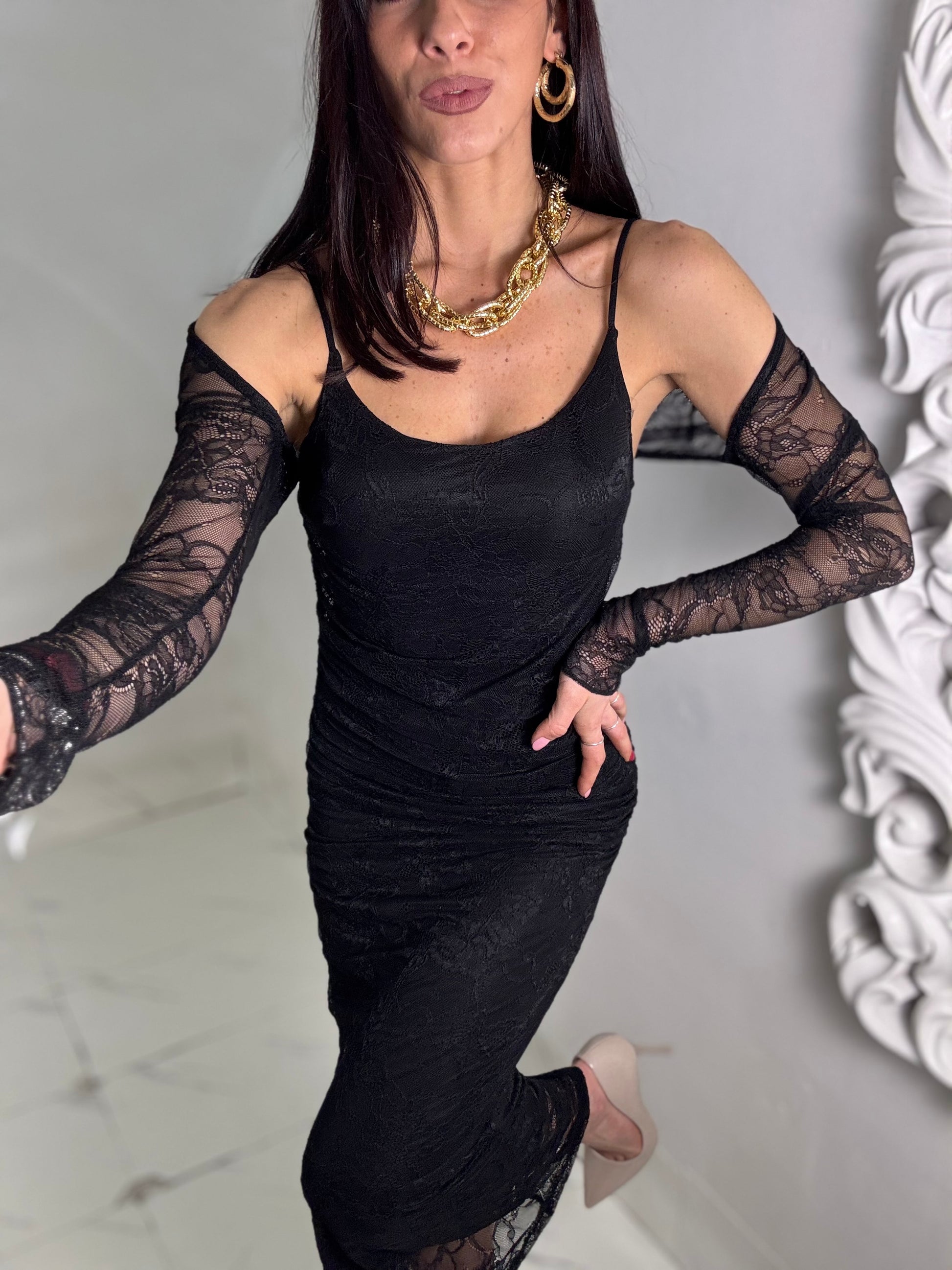 Abito in merletto con bretelle sottile e coprispalle compreso