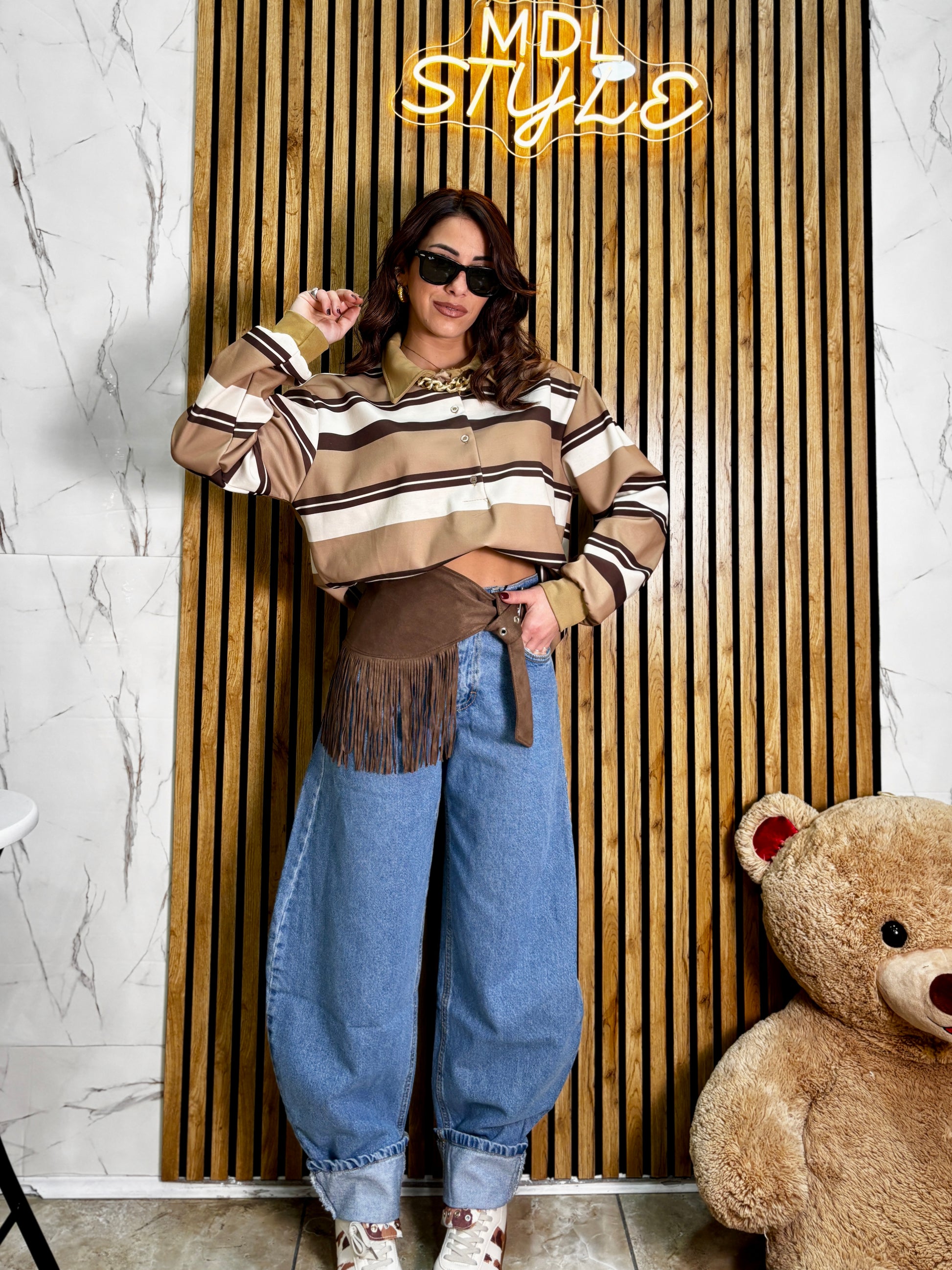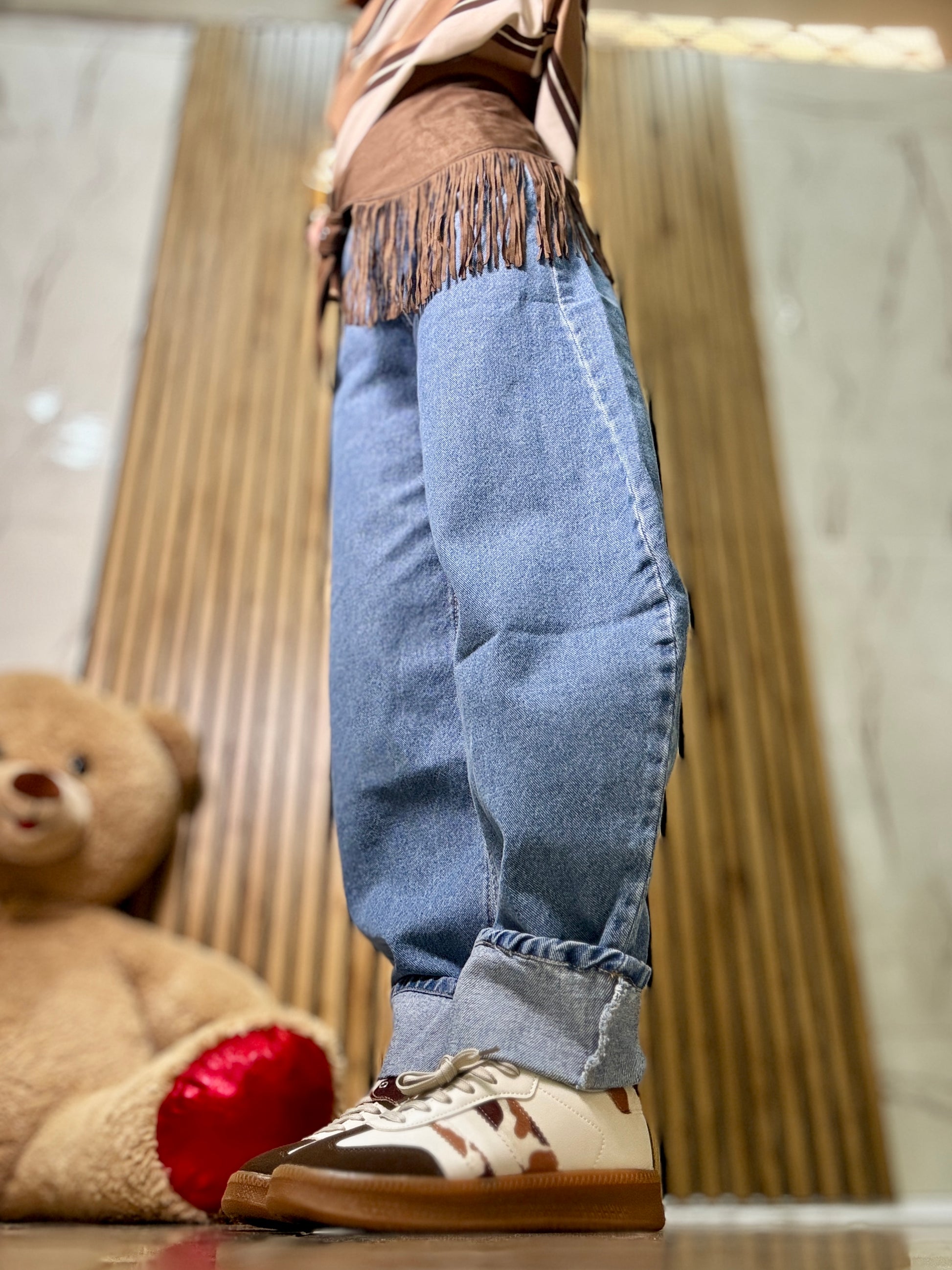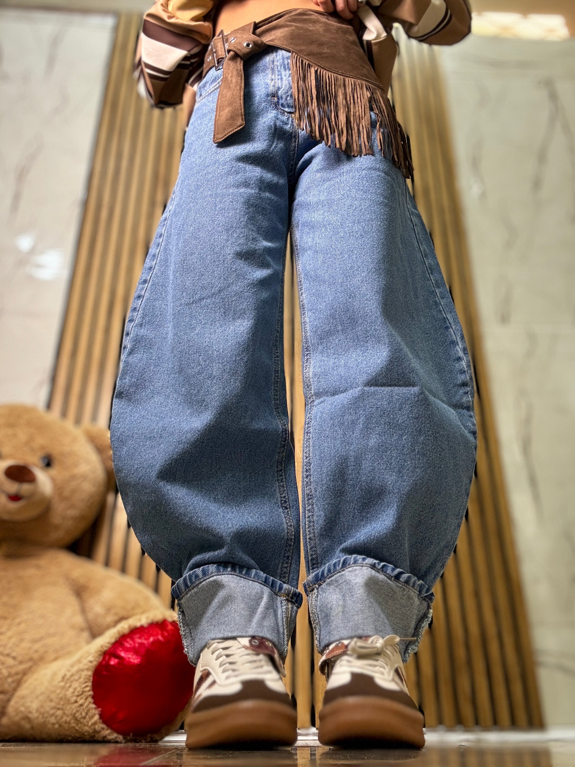 Baggy lavaggio chiaro vita alta con risvolto sul fondo