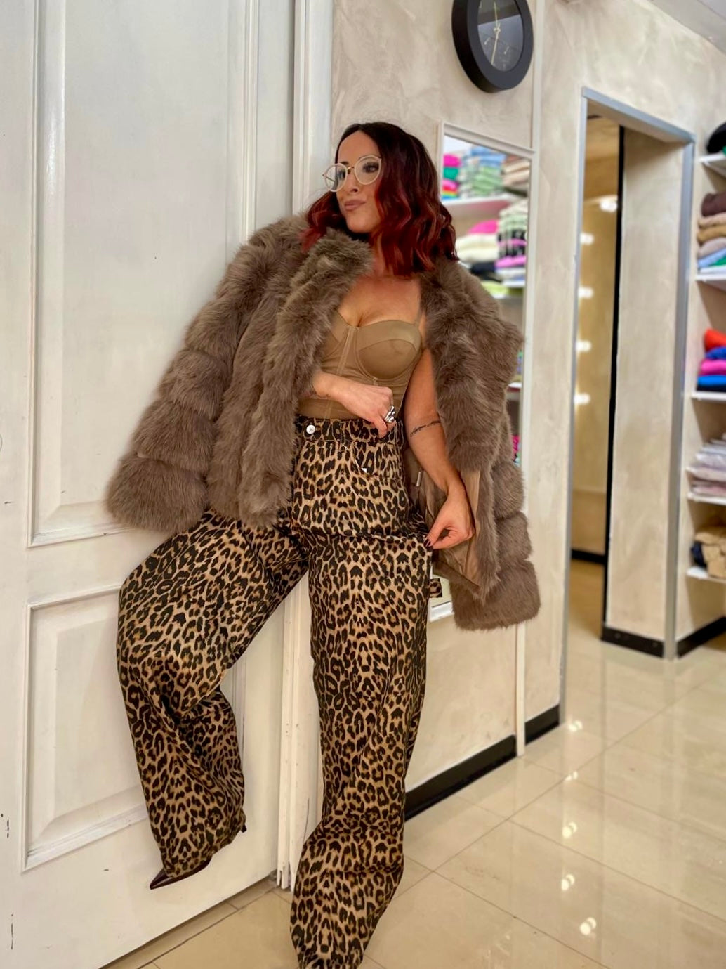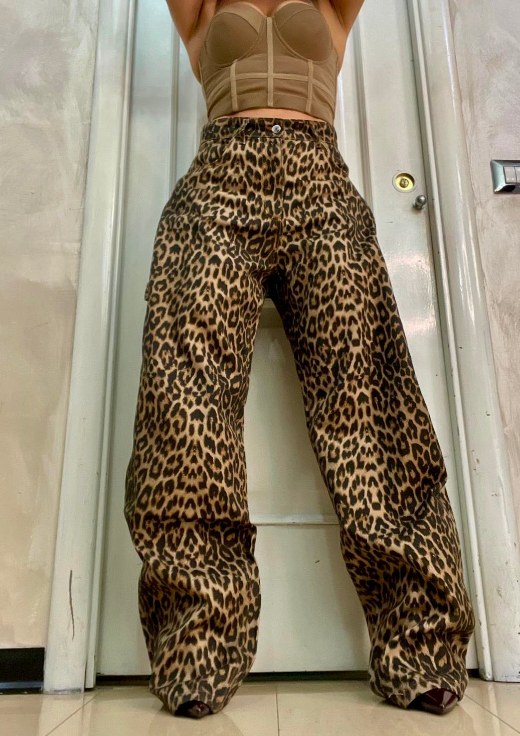 Jeans baggy vestibilità morbida con dettaglio nel laterale fantasia animalier
