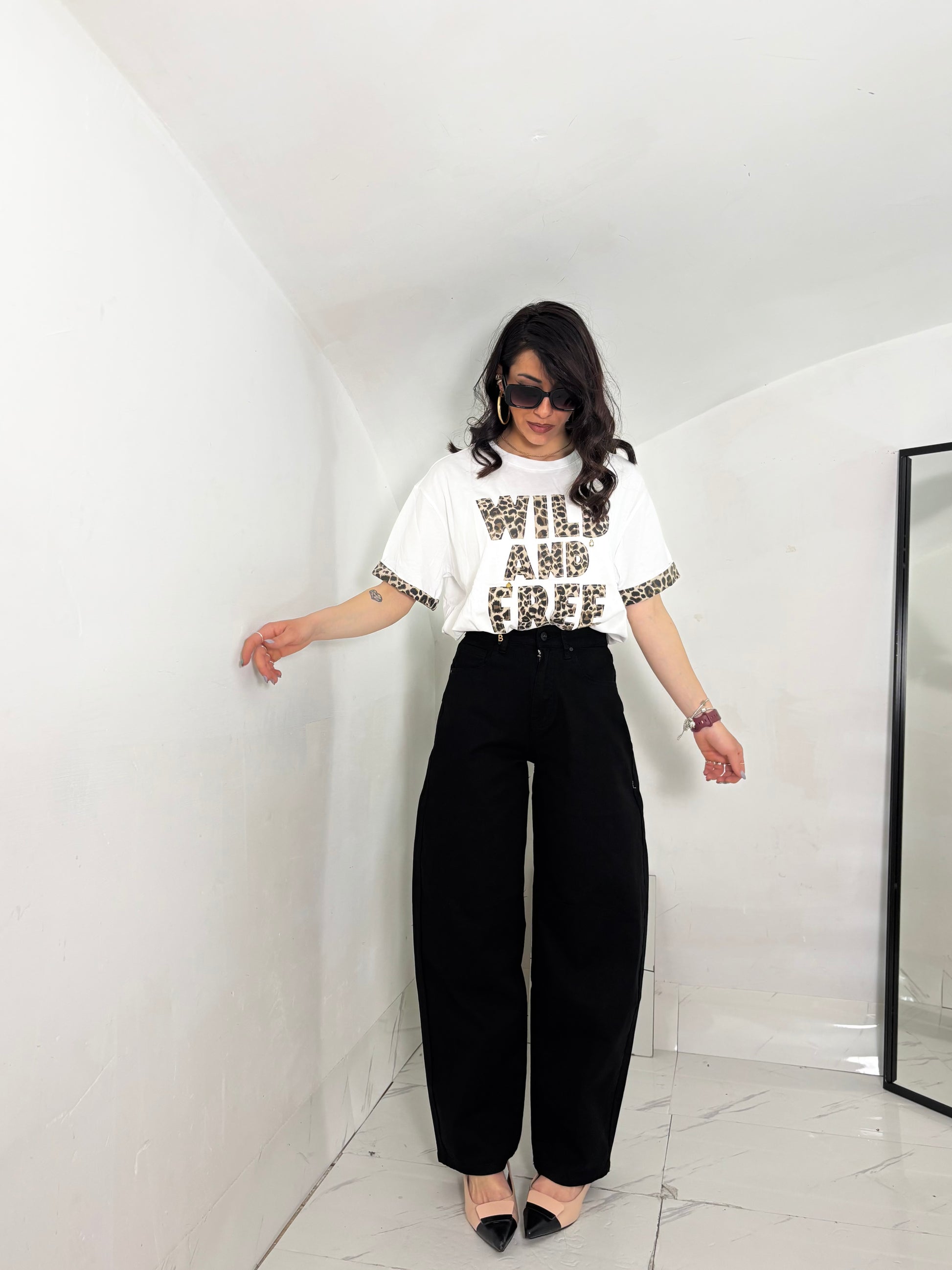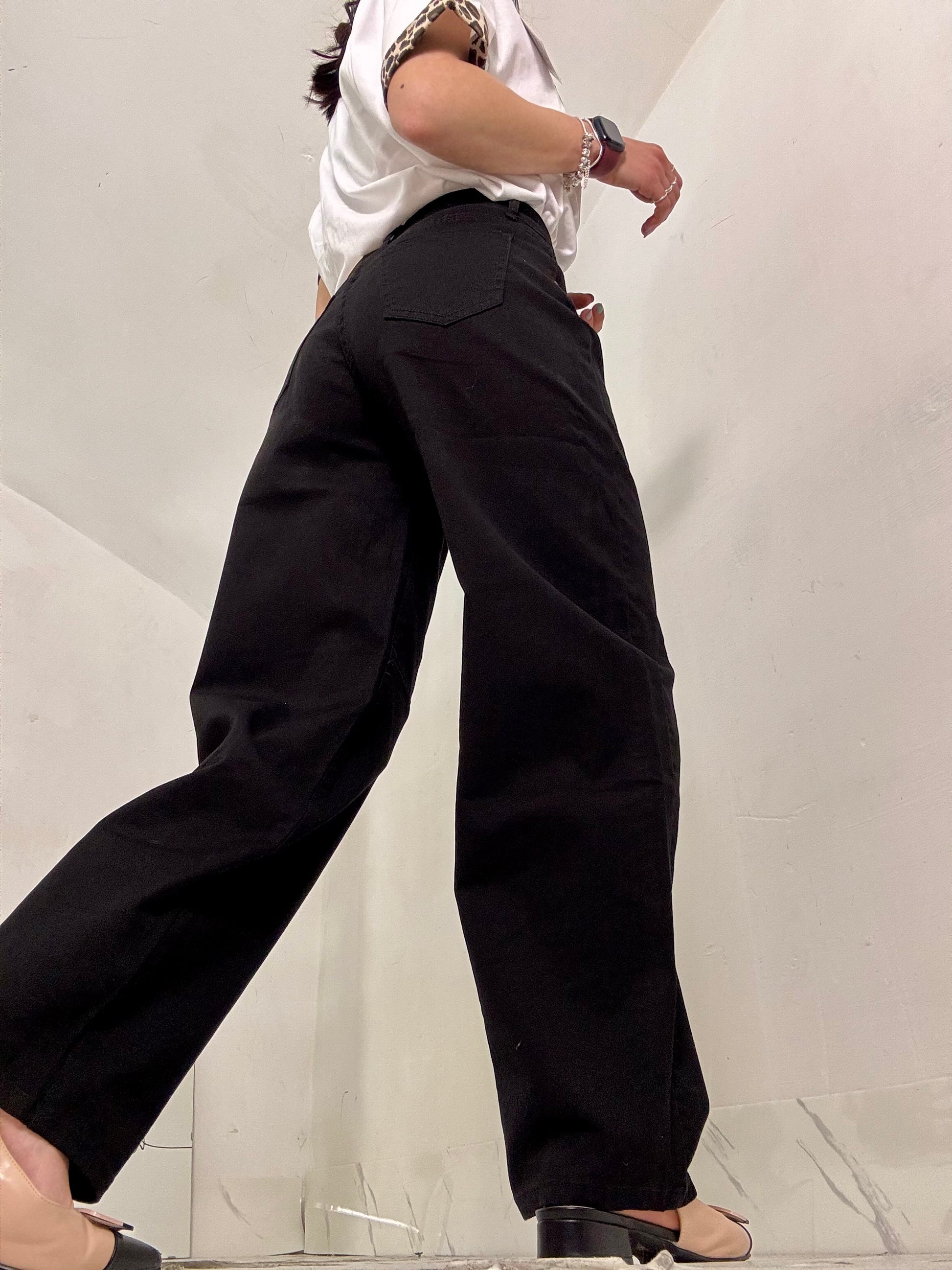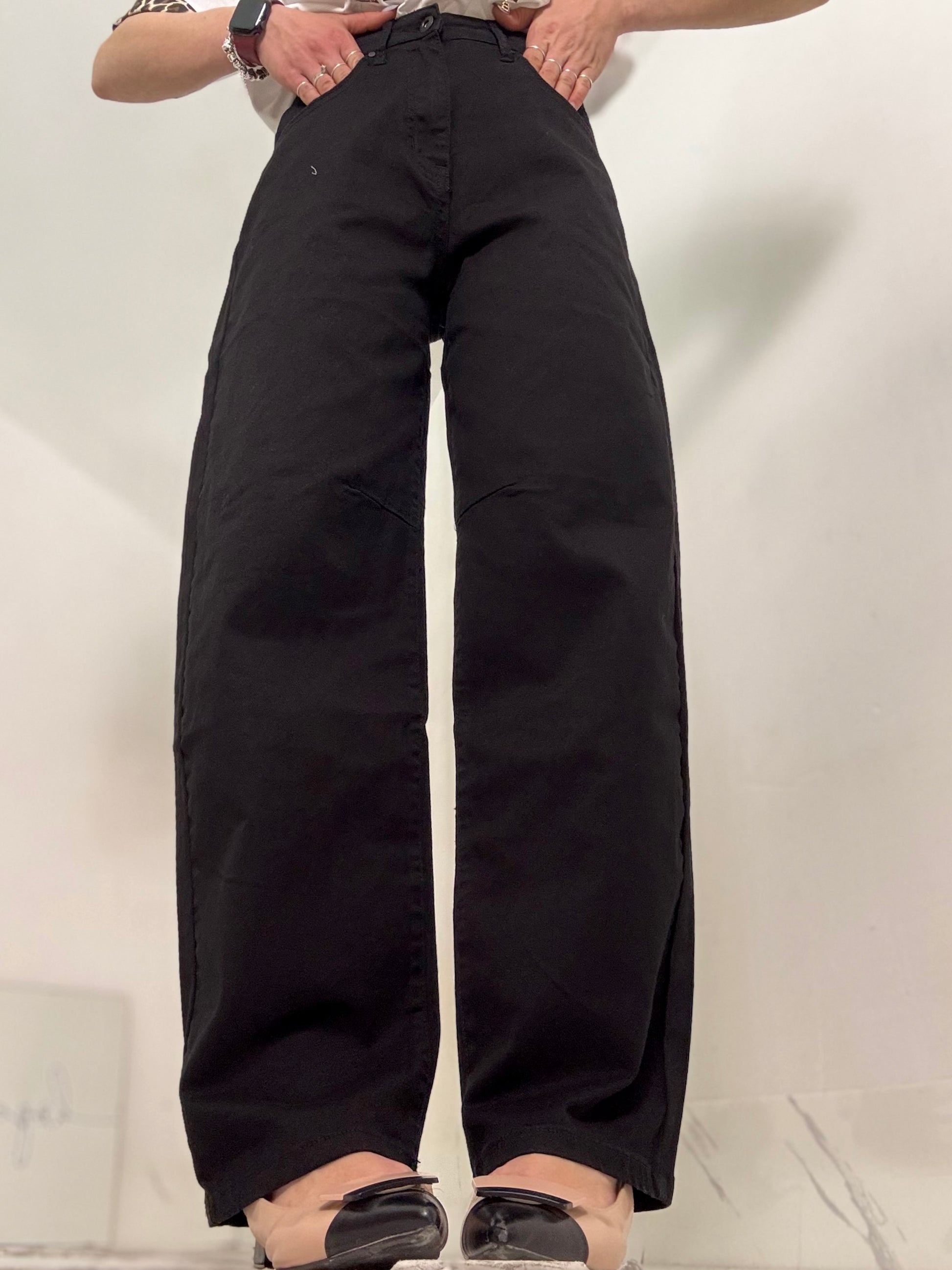 Ballon nero, vita alta, vestibilità morbida, semi elastica, tessuto top