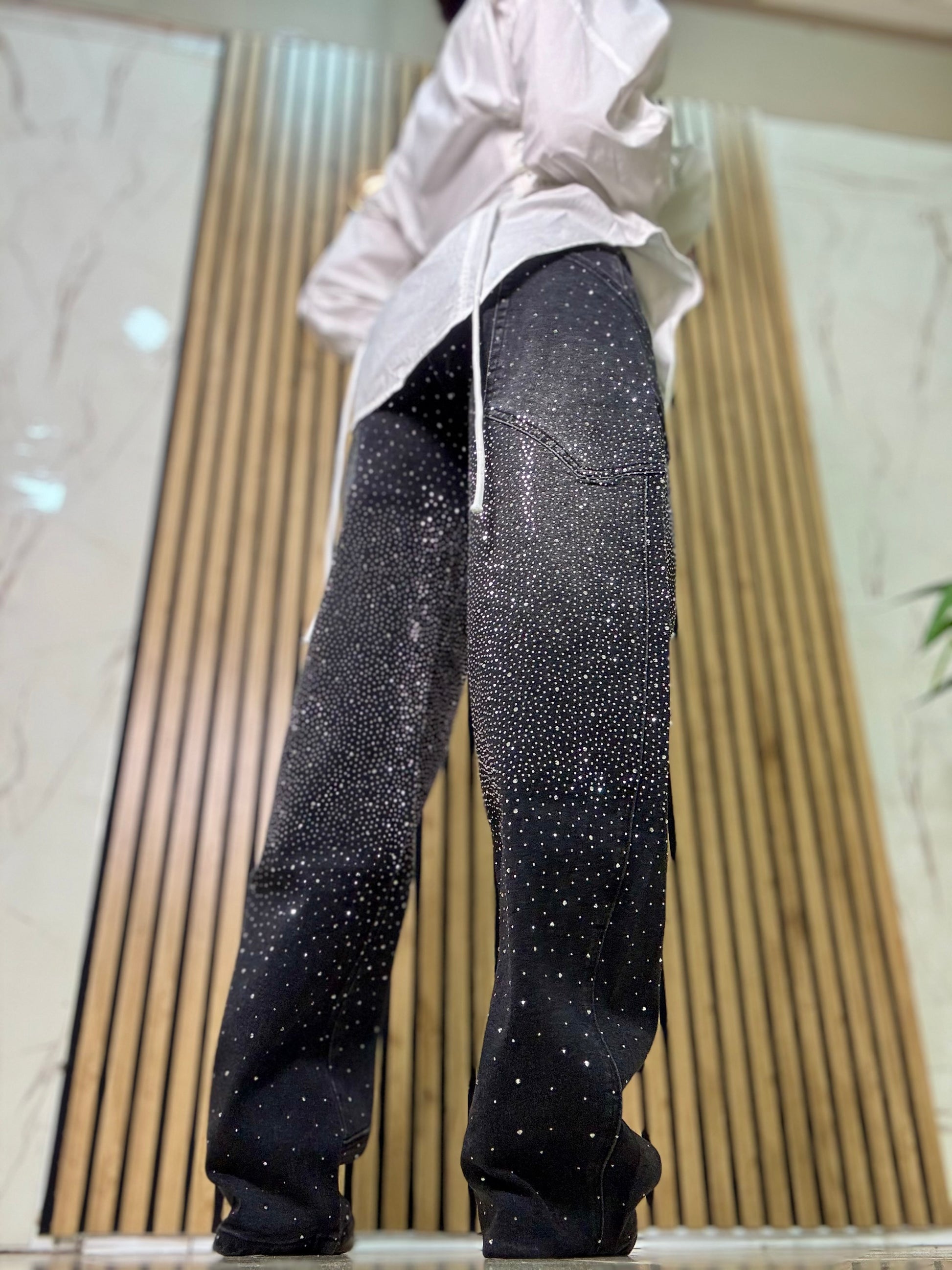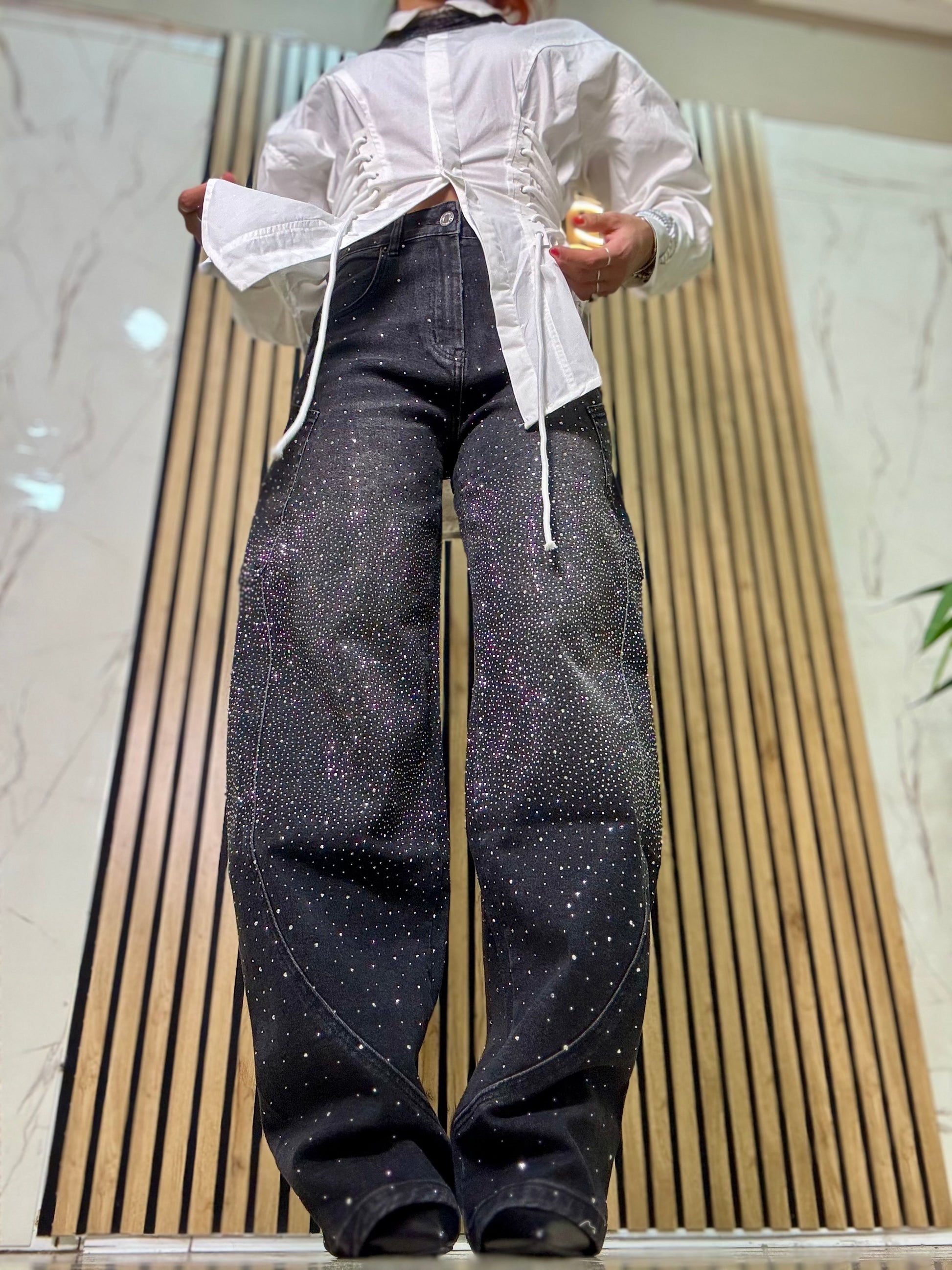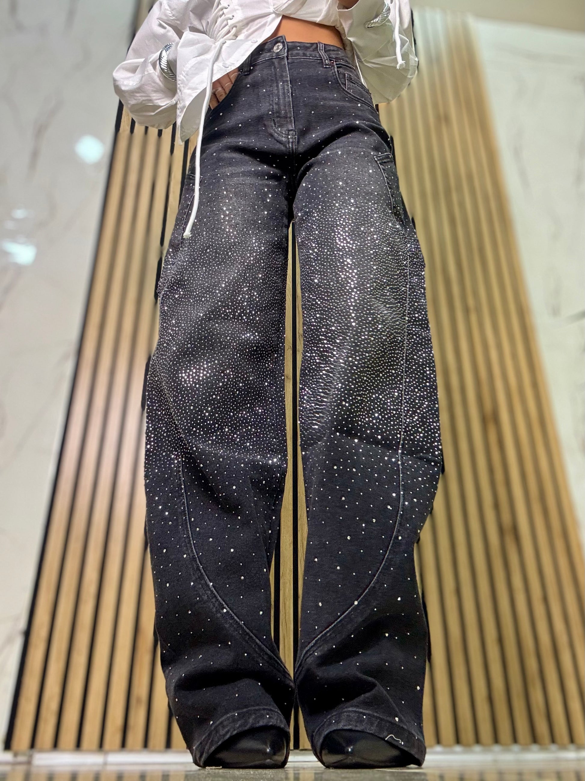 Ballon scuro mod Beggy con tasche laterali completamente strassato vita alta vestibilità semi elastica