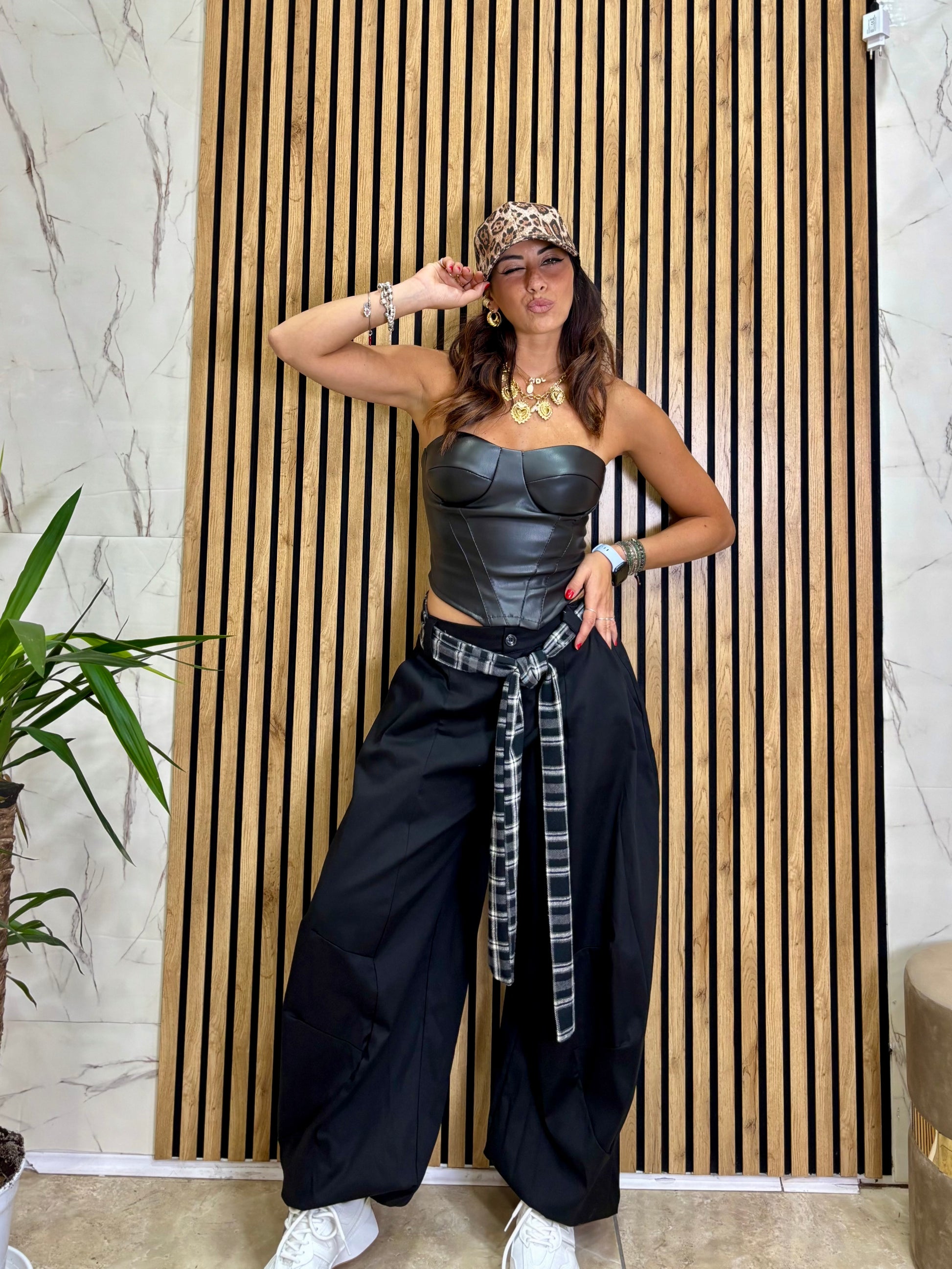 Ballon in cotone con cintura effetto camicia modello morbido tg U veste fino ad una 44-46