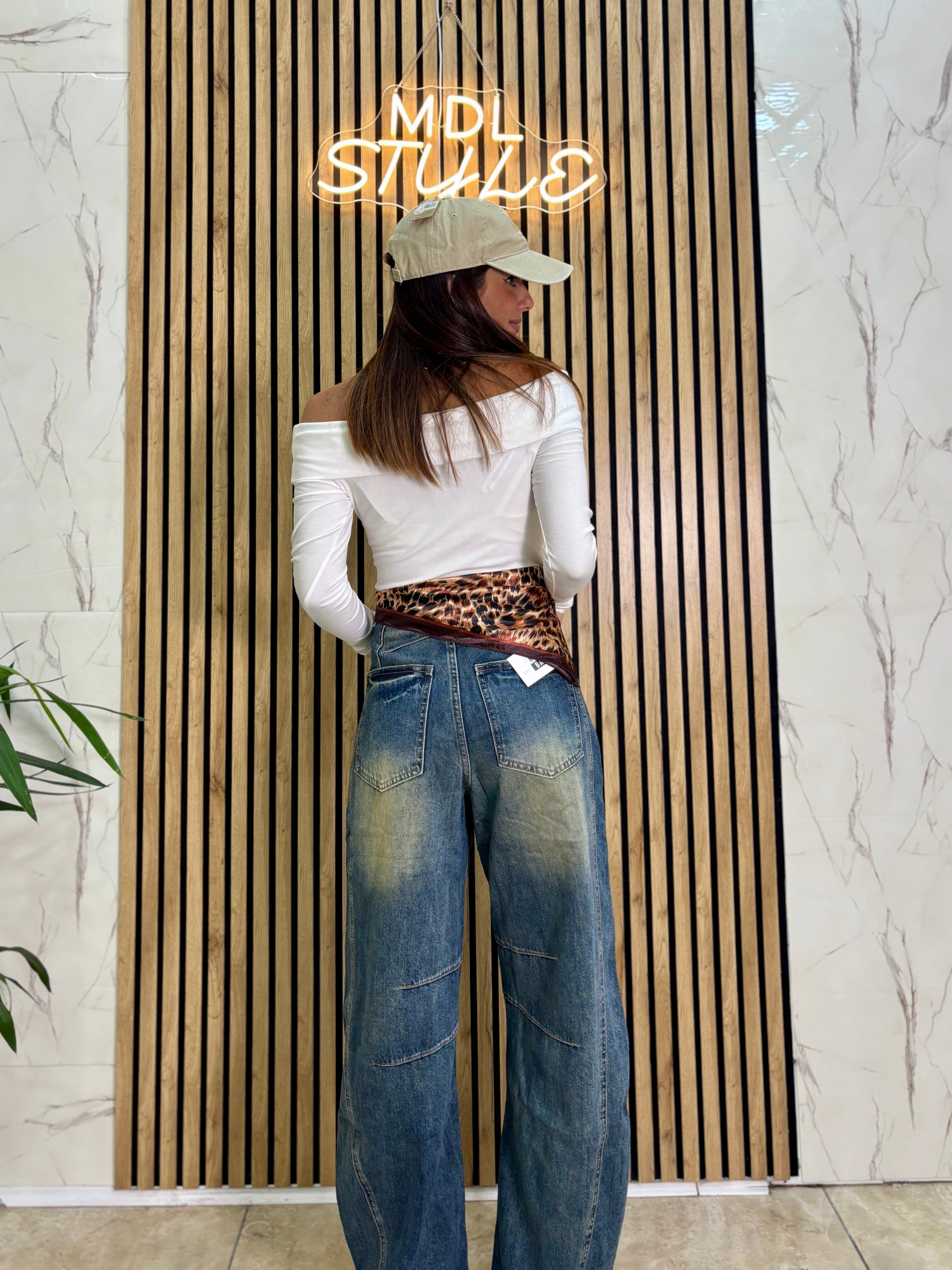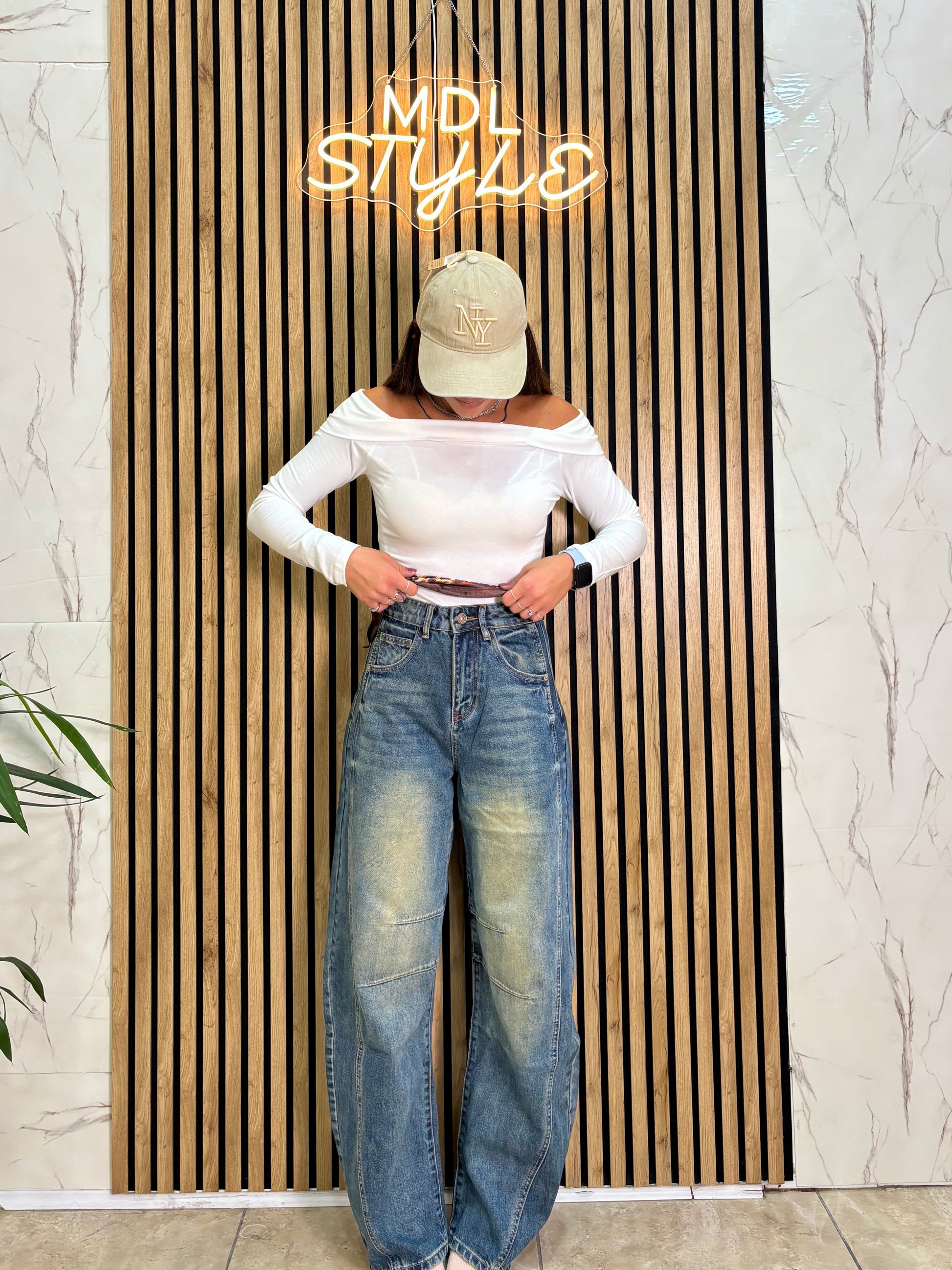 Beggy slavato lavaggio vita alta vestibilità ampia