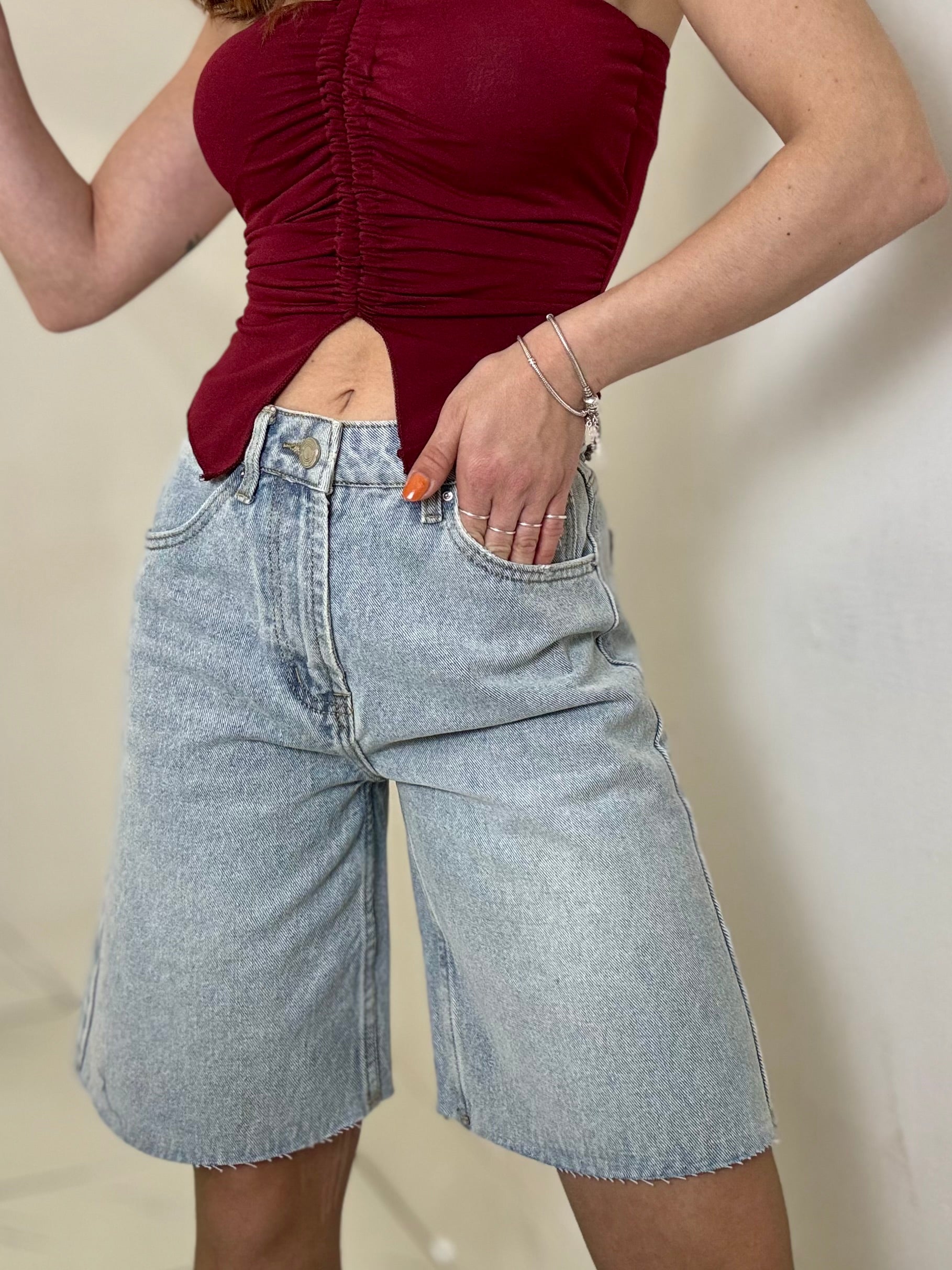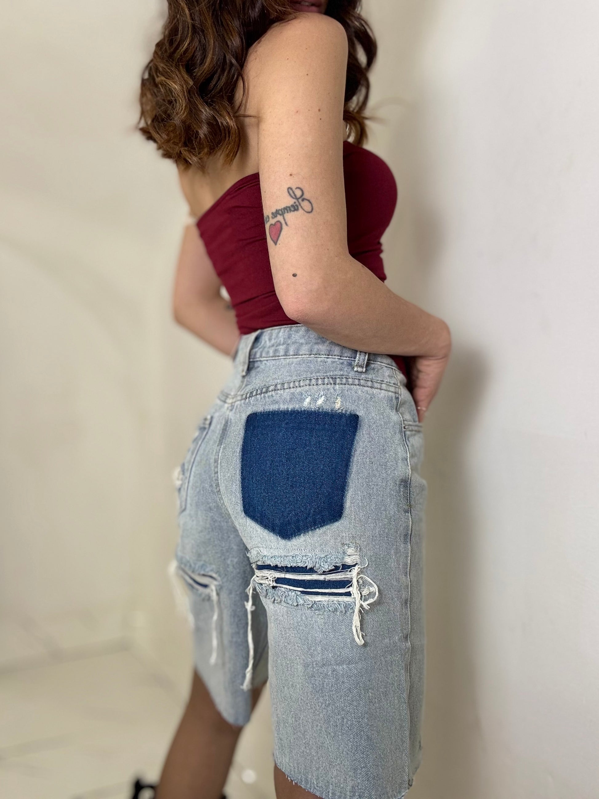 Bermuda lavaggio chiaro con strappetti sul retro tasca colore a contrasto