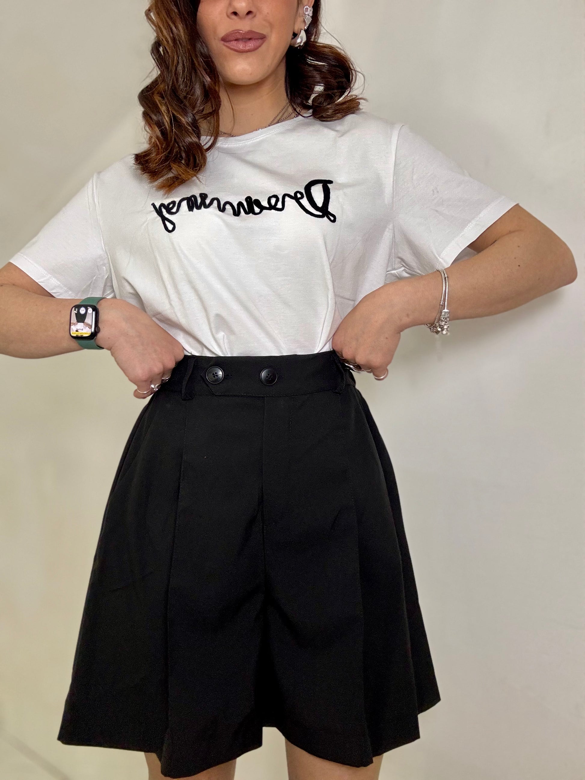 Bermuda vita alta con doppio bottone elastico sul retro lunghezza al ginocchio veste fino alla 44