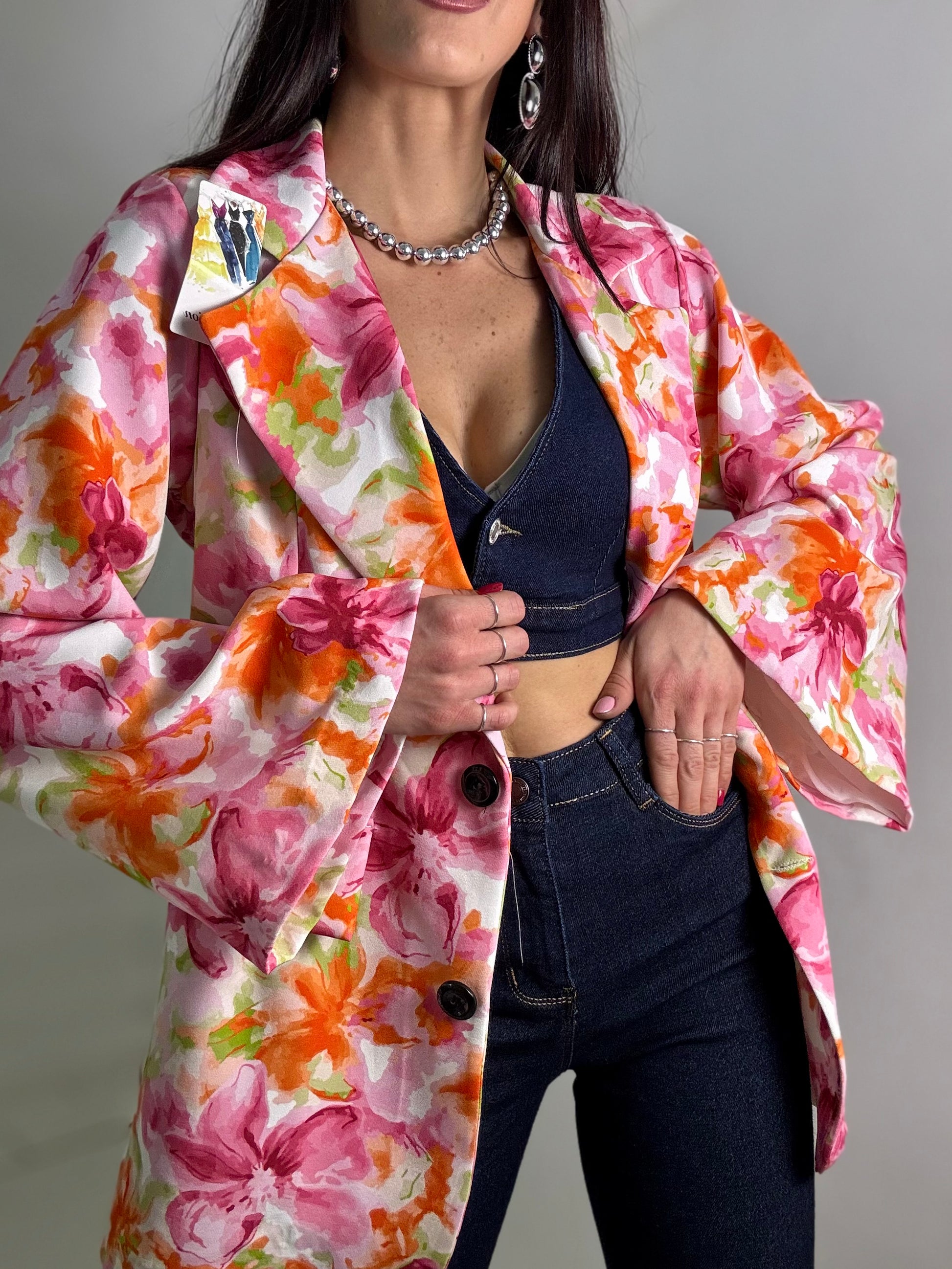 Blazer floreale con fusciacca compresa manica a campana vestibilità ampia tg U veste fino ad una 44-45