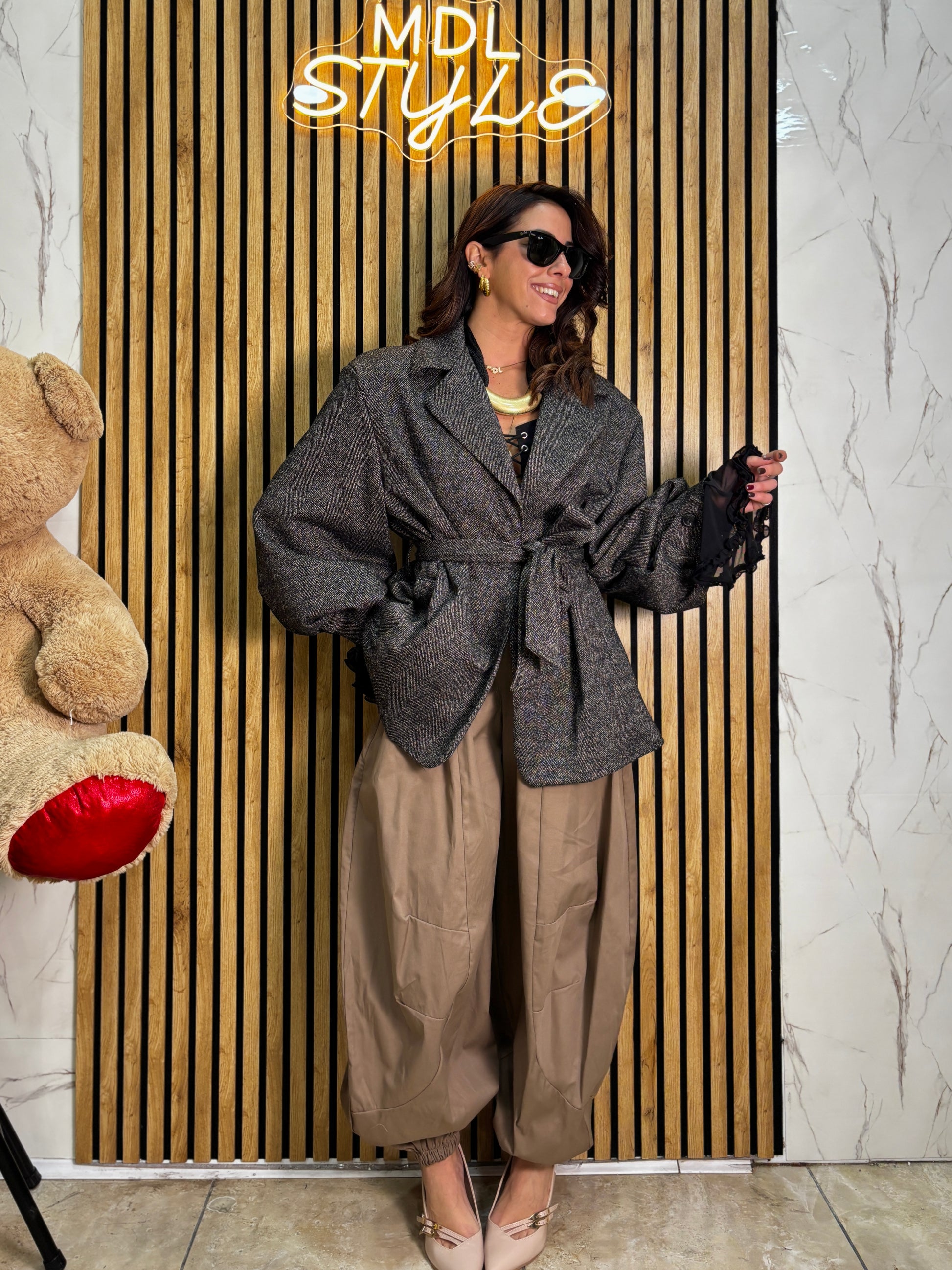 Blazer in flanella modello ampio con cinturino tg U veste fino ad una 46