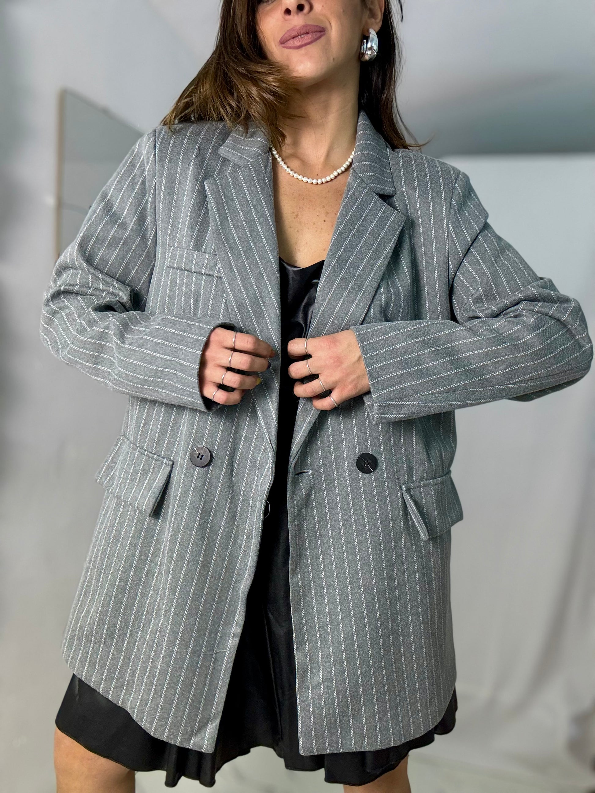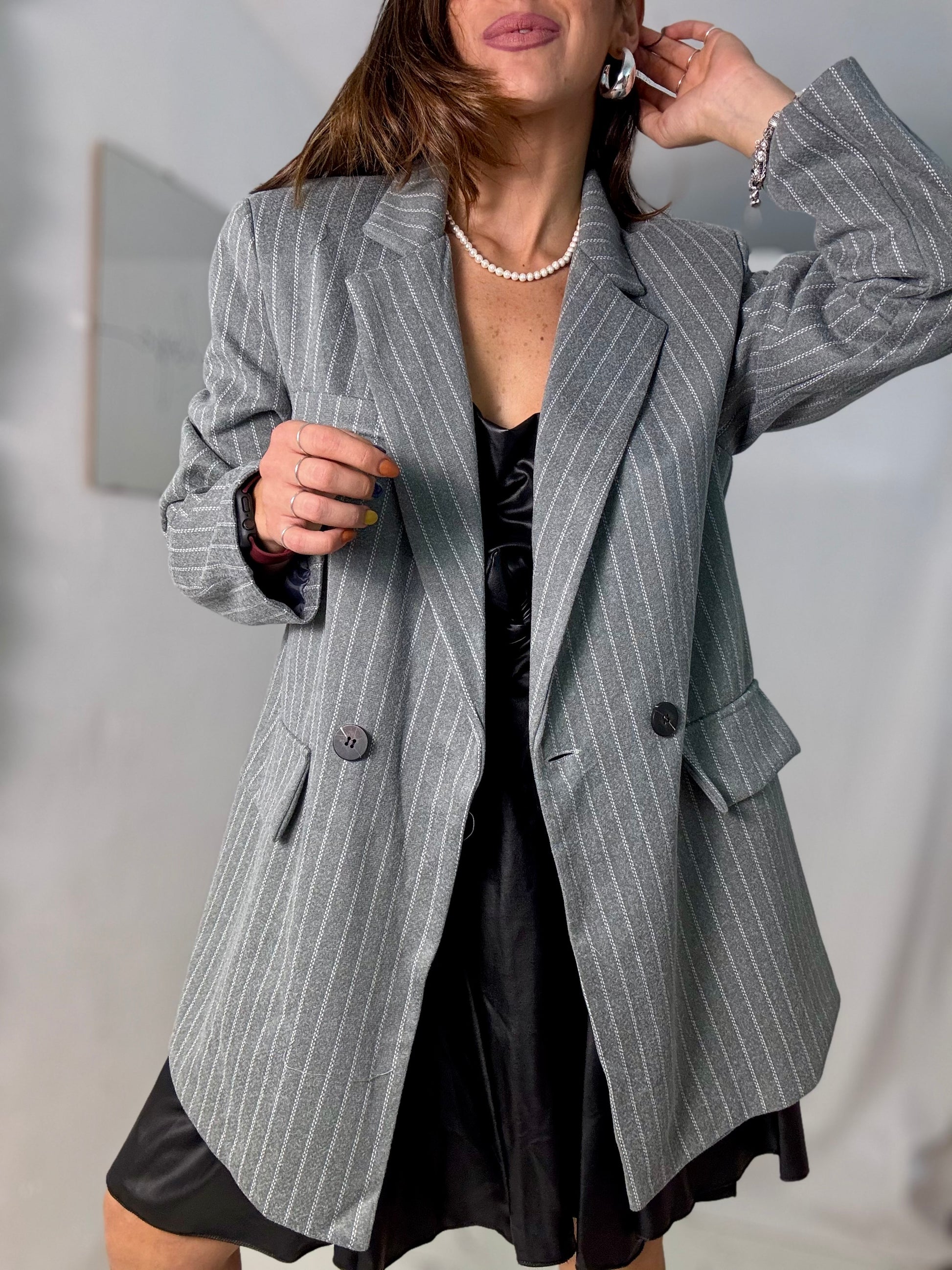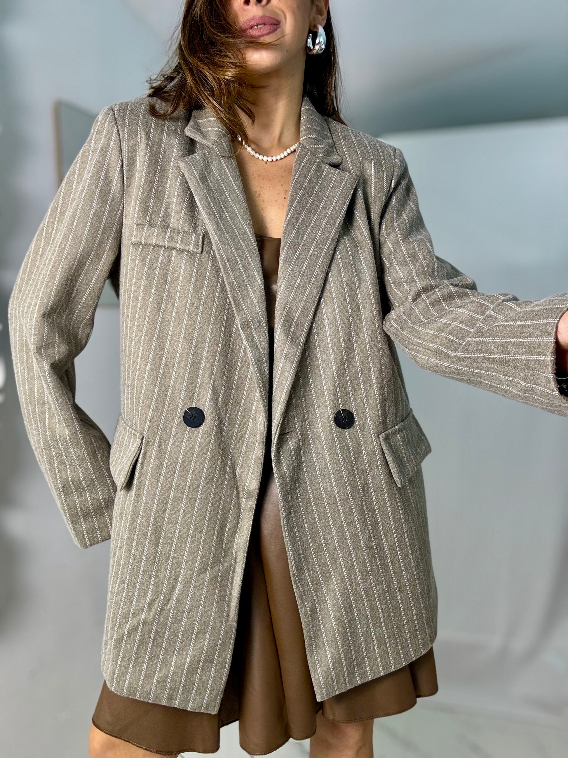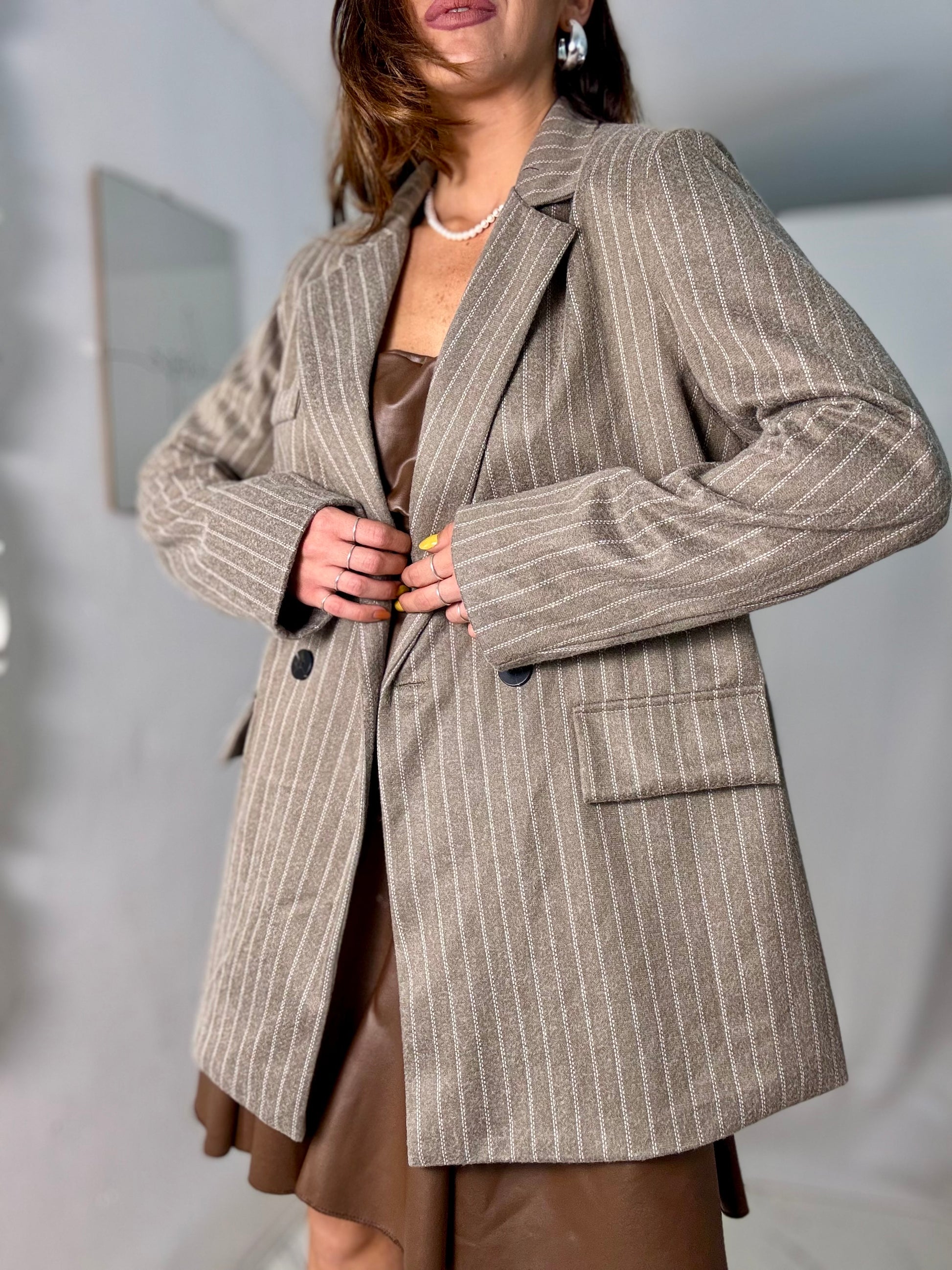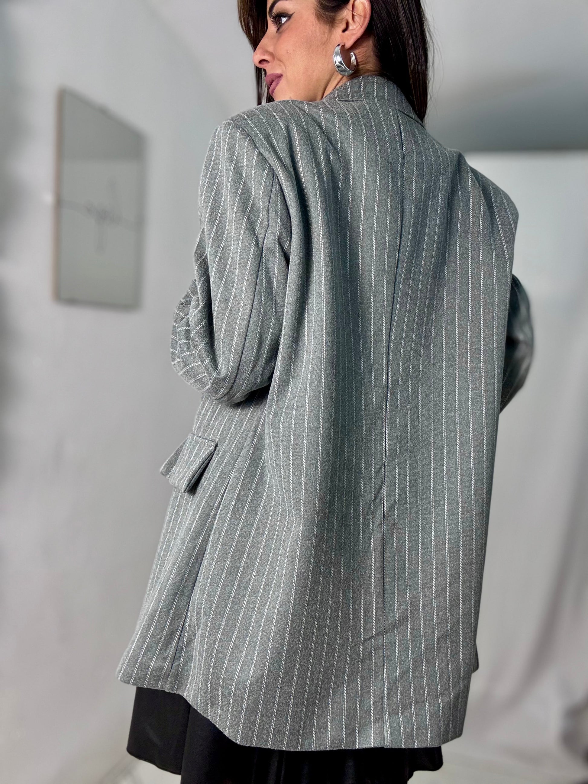 Blazer in flanella, fantasia strisce taglia unica, veste fino ad una 44 abbondante