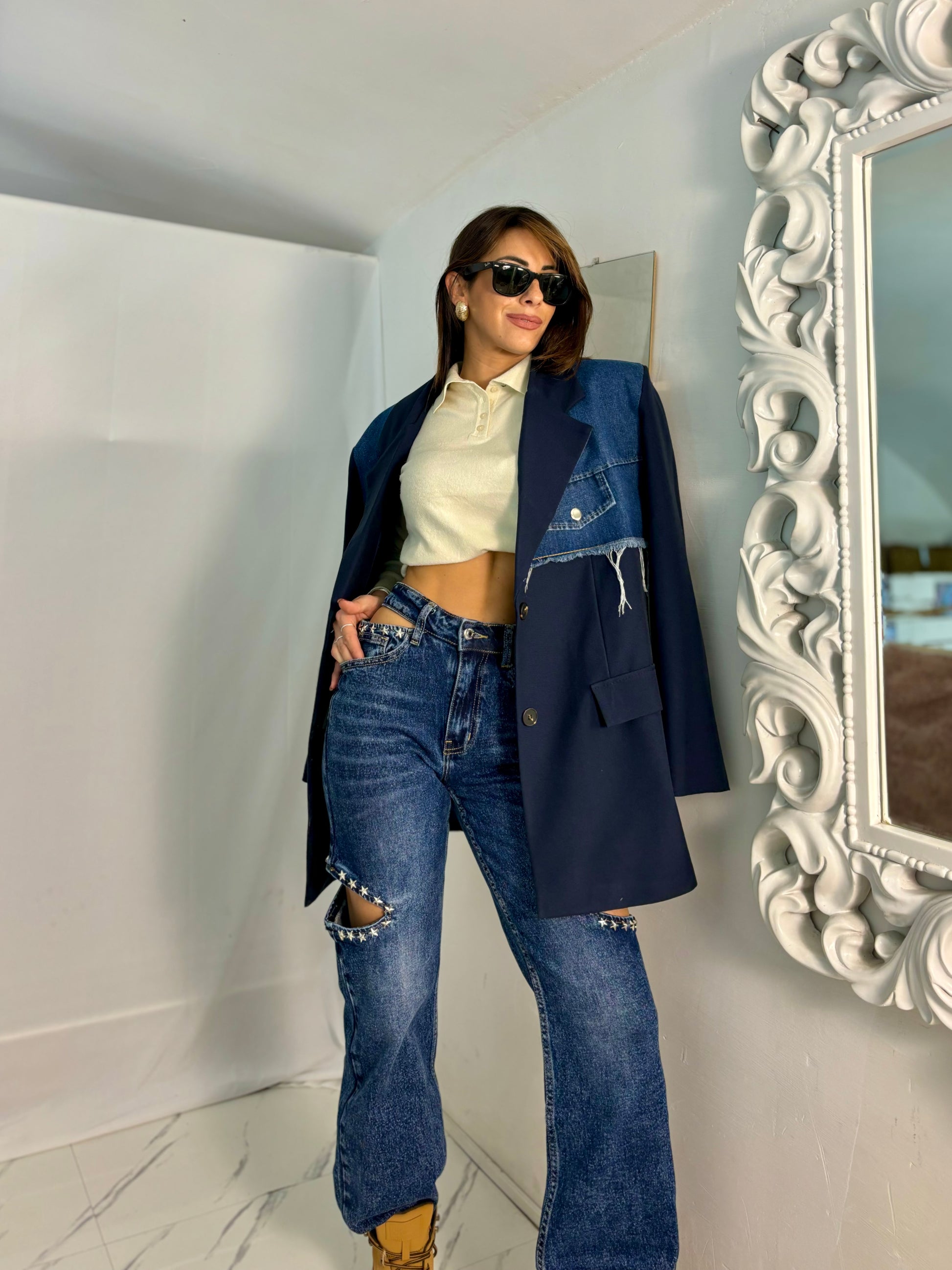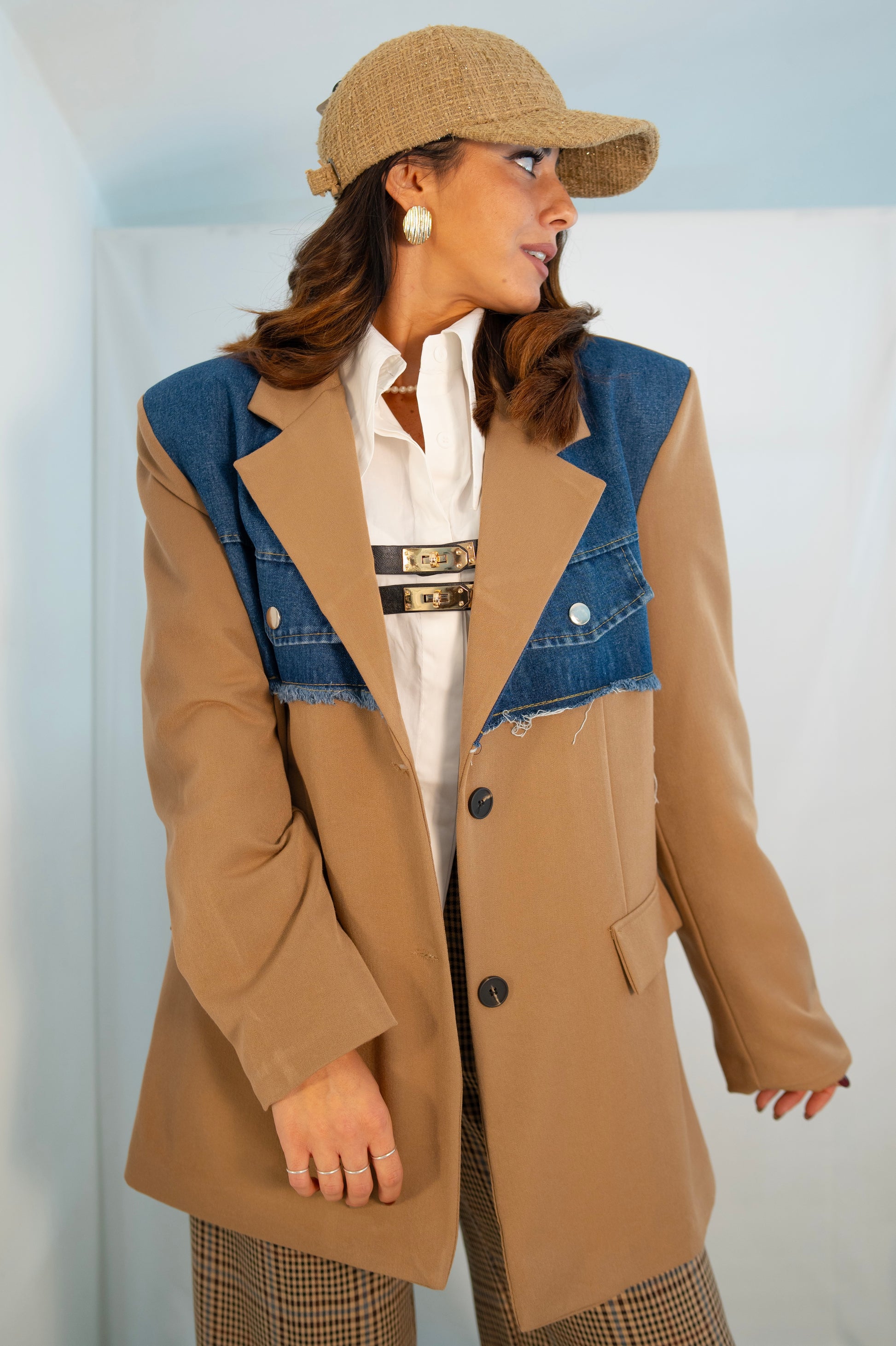 Blazer taglio regolare con dettagli in Denim frontale veste fino ad una 44