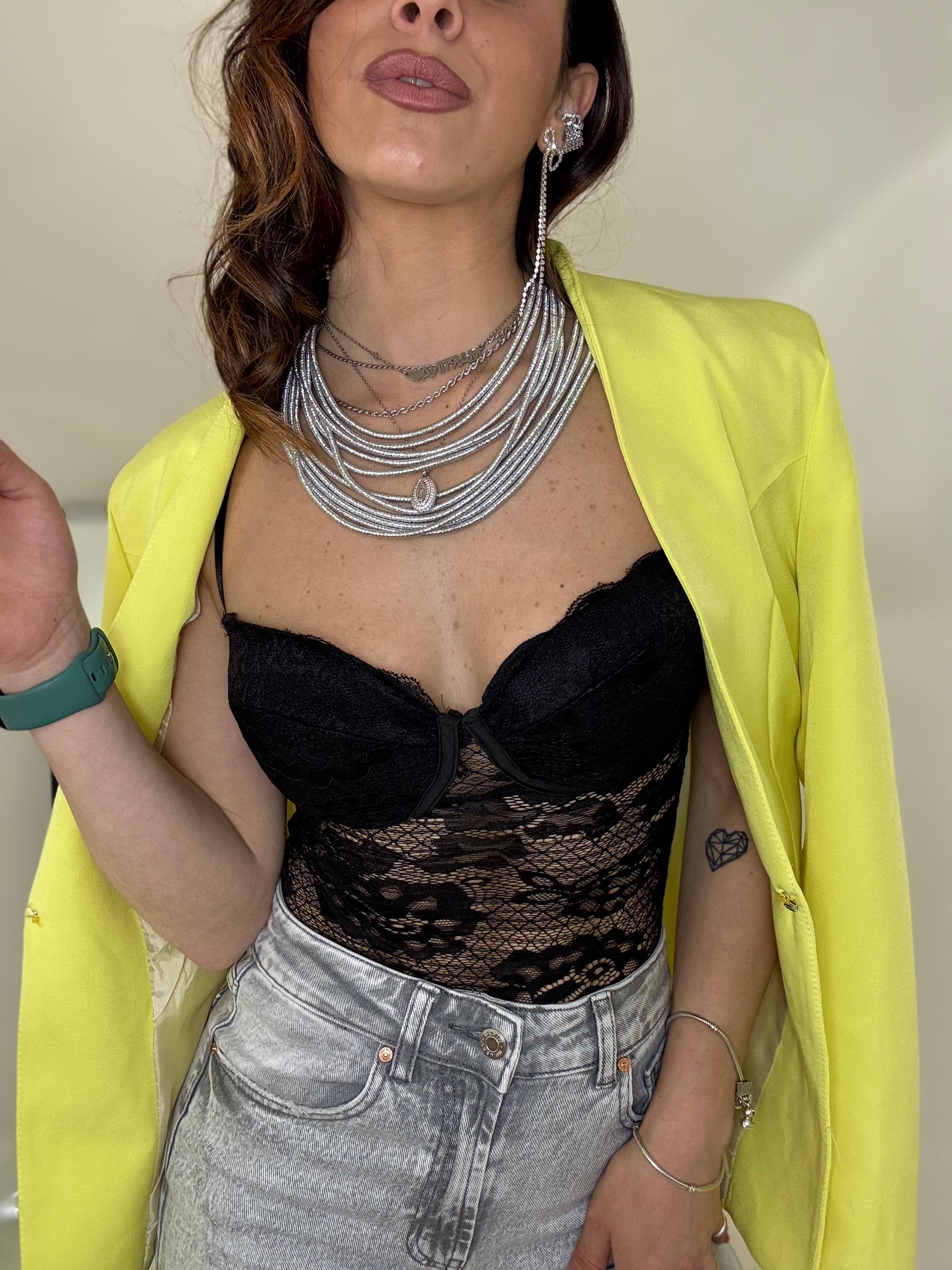 Body in pizzo con bretelle regolabili tessuto semi elastico