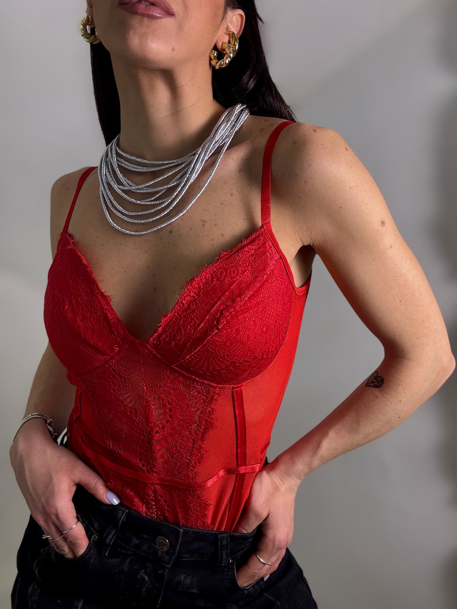 Body con dettagli in pizzo e trasparenze coppe cucite veste fino ad una 44