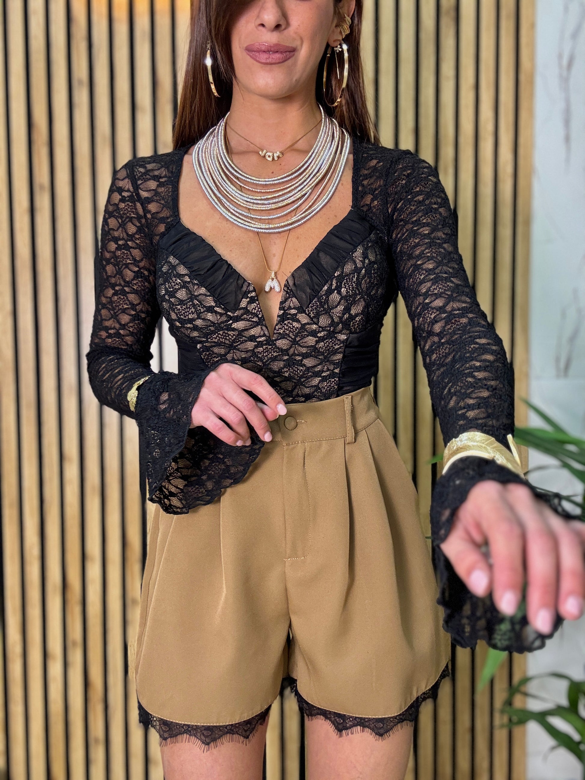 Body strutturato con scollo a V coppe cucite manica lunga fondo a campana tg U veste fino ad una 44-46