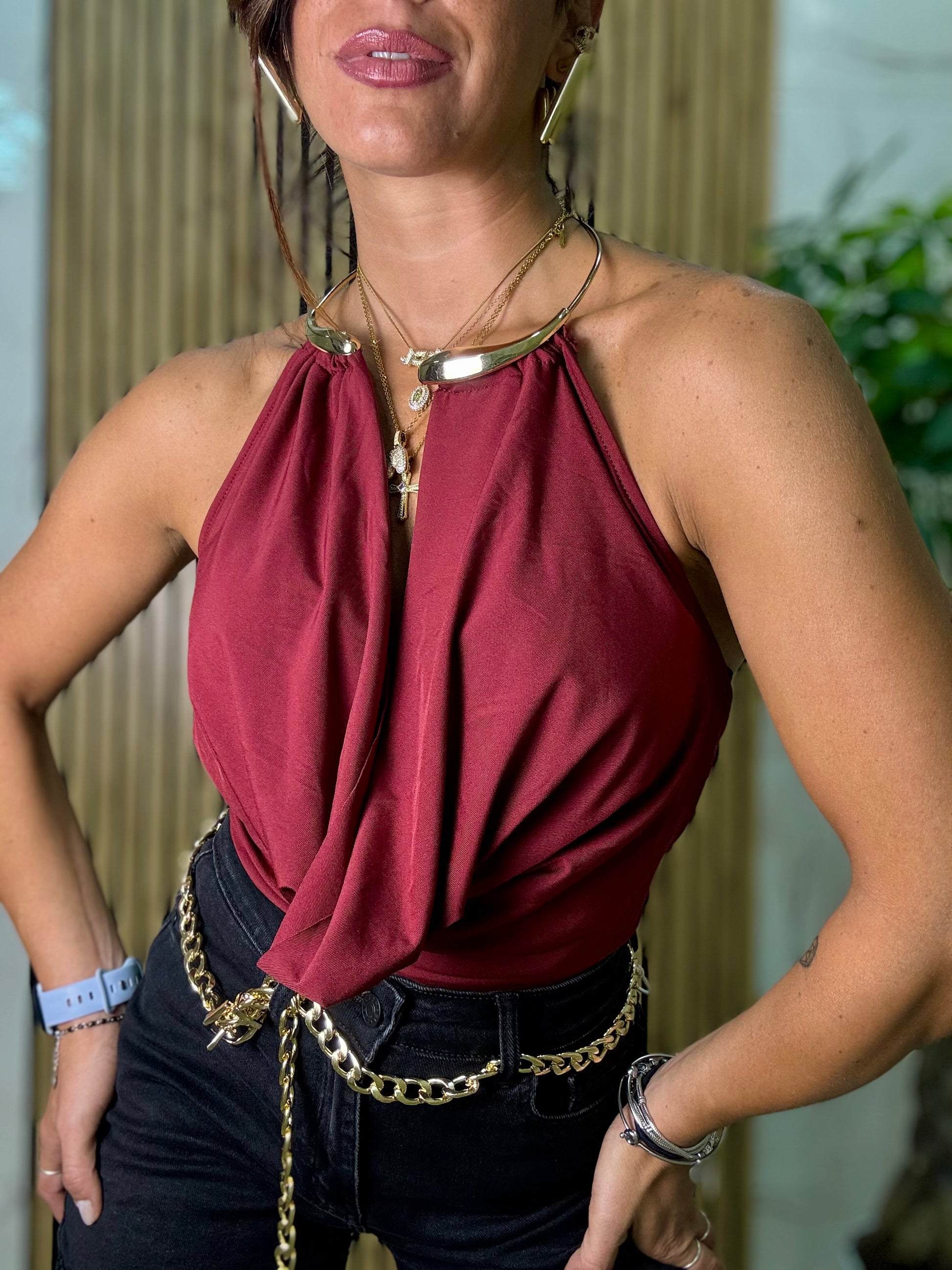 Body satinato , modellino sciallato, effetto collana tessuto elastico, taglia unica, veste fino ad una 44 46