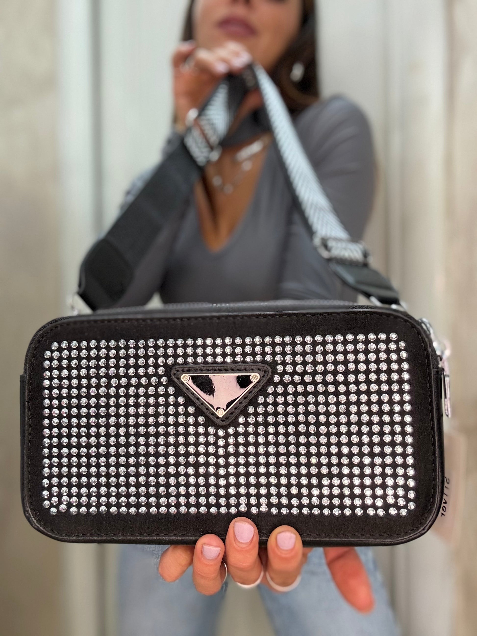 Borsetta quadrata rigida con tracolla compresa fantasia strass modello Prada