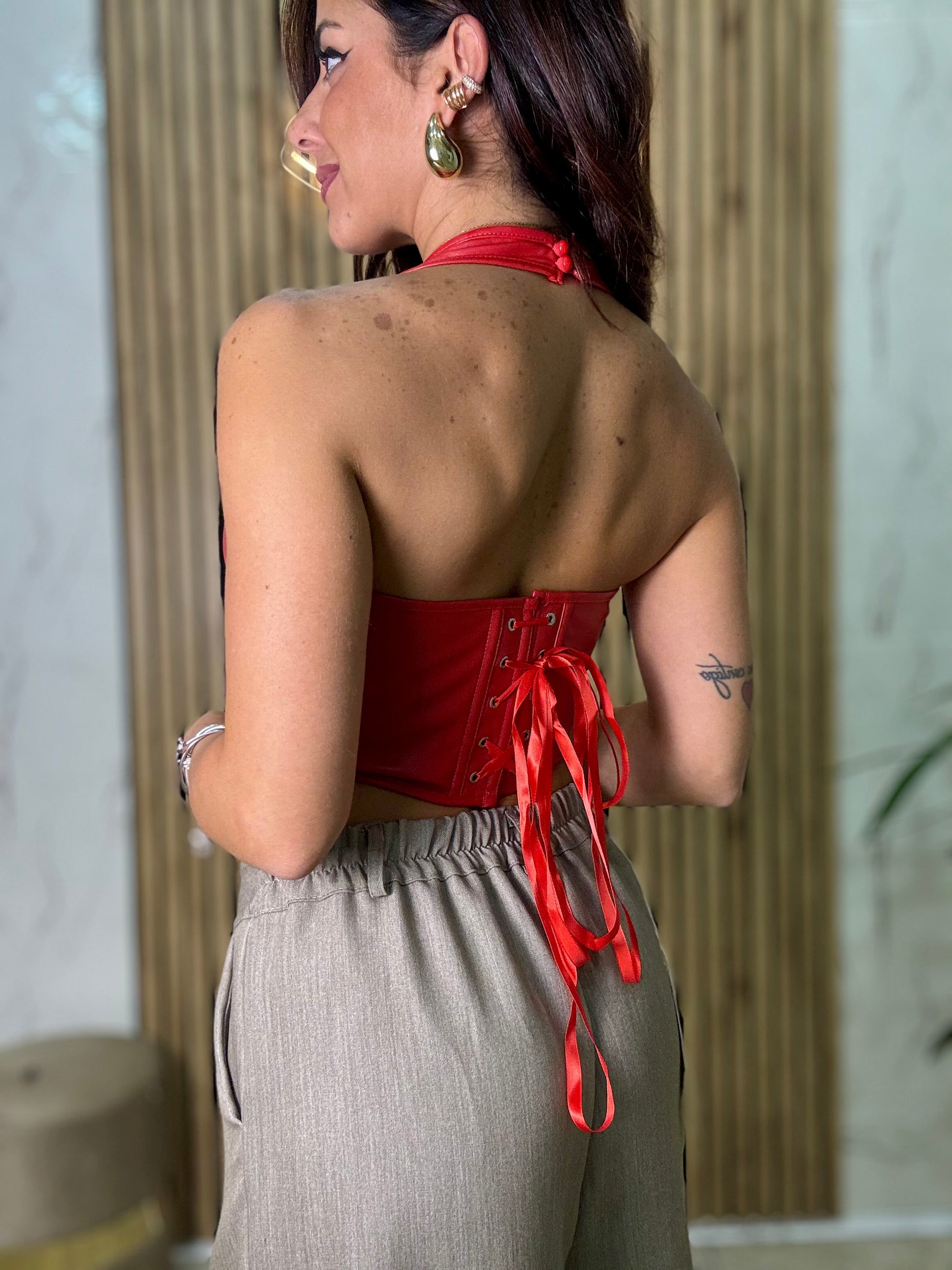 Bustino in ecopelle con ciappe davanti e chiusura nastro dietro tg U veste fino ad una 44