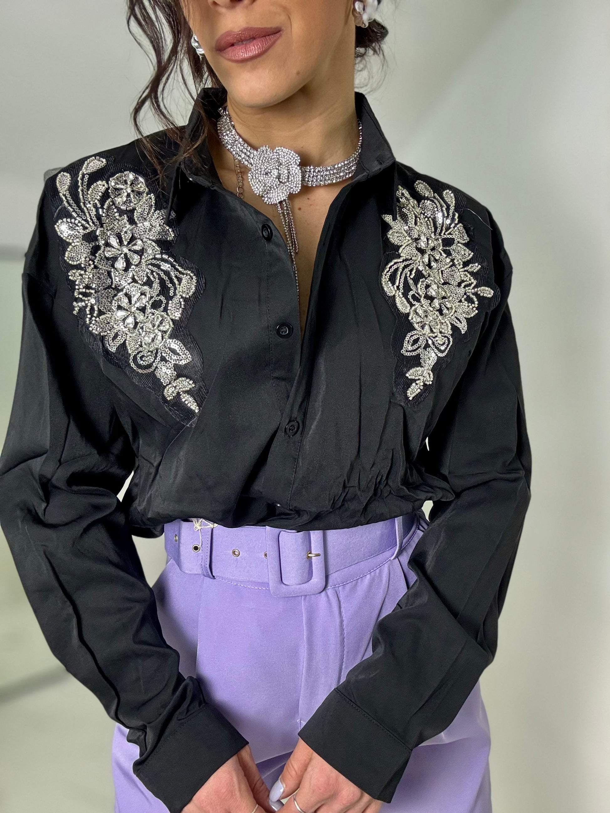 Camicia lunghezza regolare con applicazione di strass sulla parte superiore vestibilità morbida