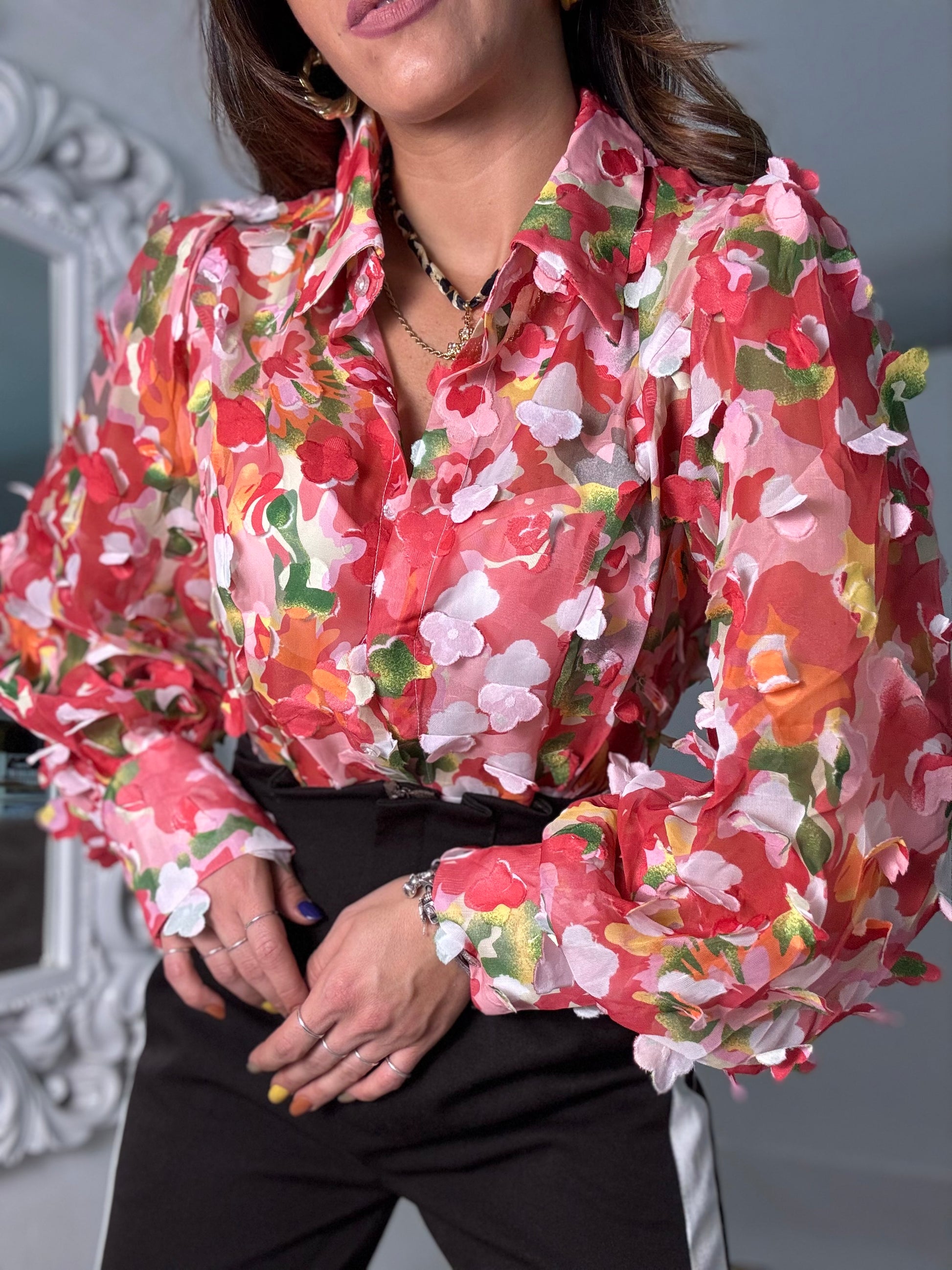 Camicia fiori in rilievo vestibilità giusta lunghezza regolare