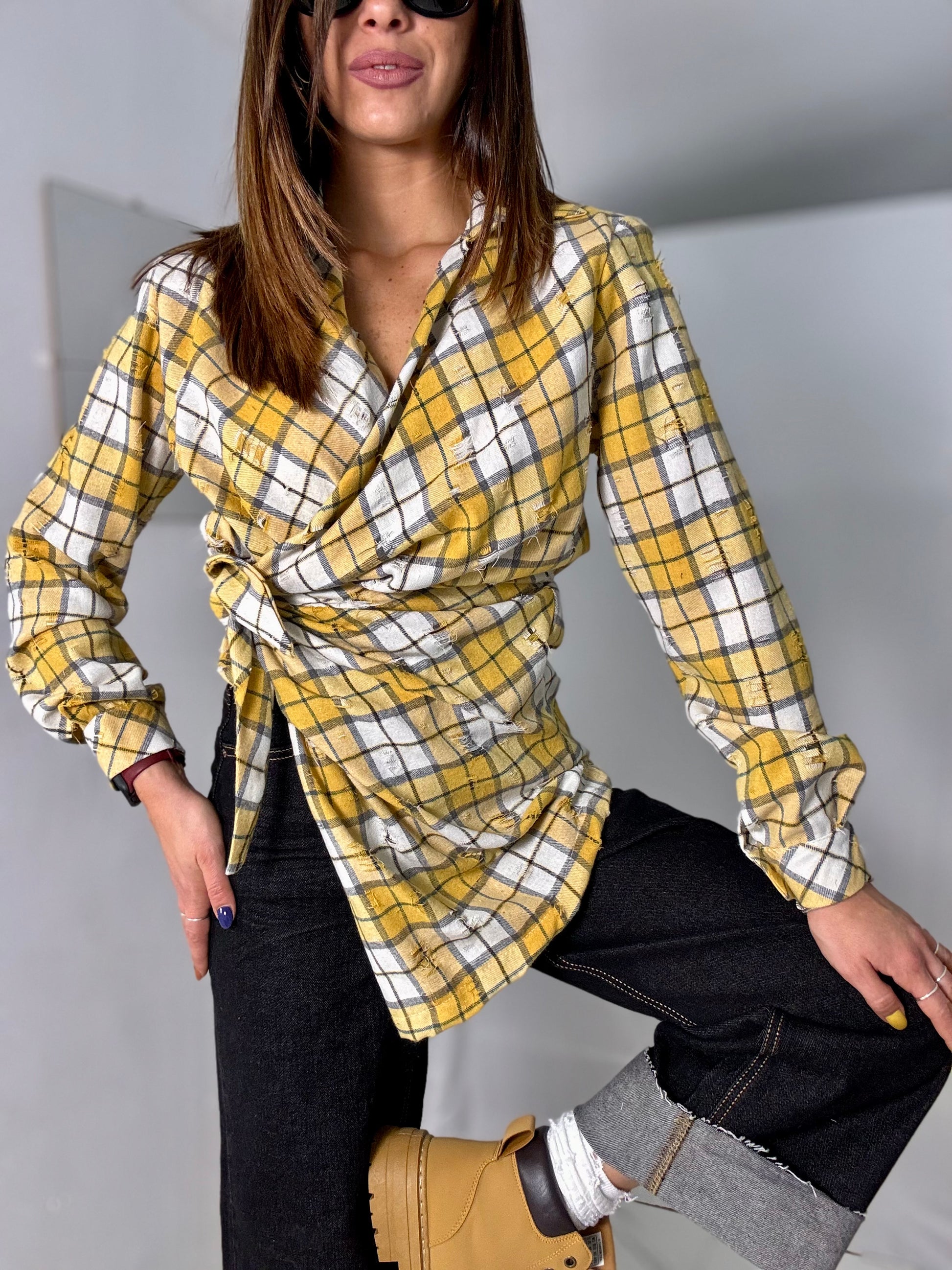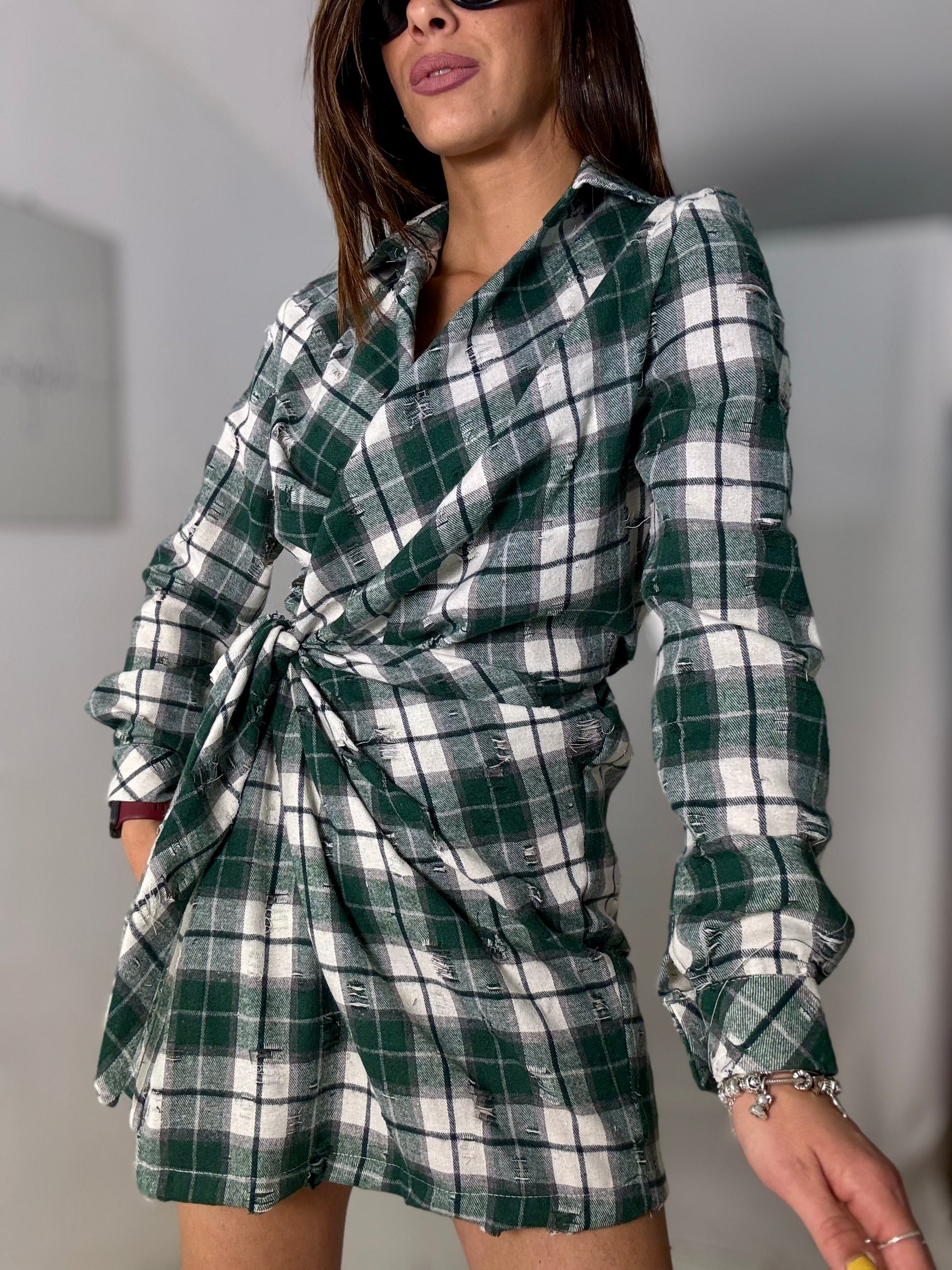 Camicia in flanella leggera scozzese lunga a portafoglio con chiusura laccio trasversale veste fino ad una 44