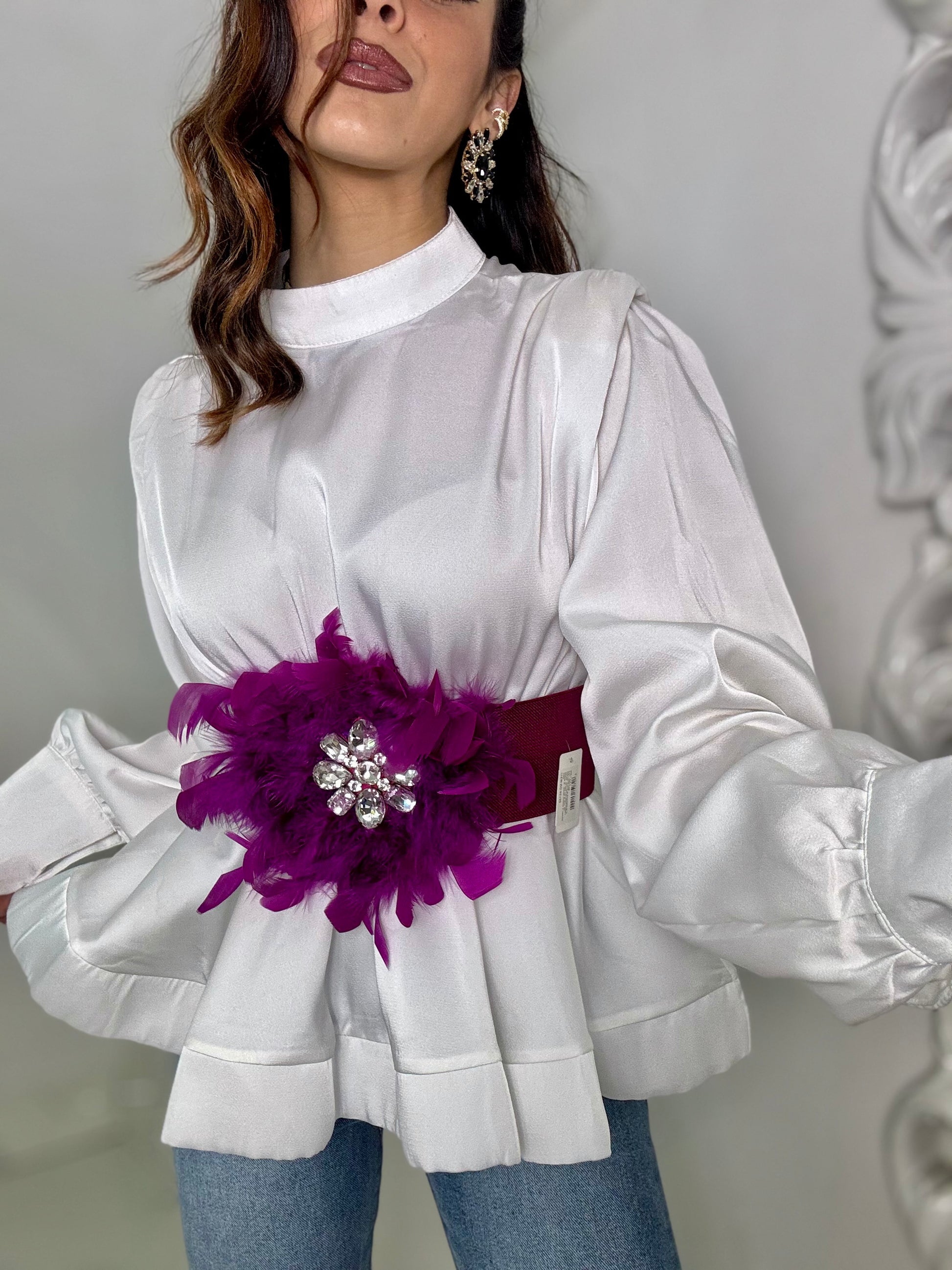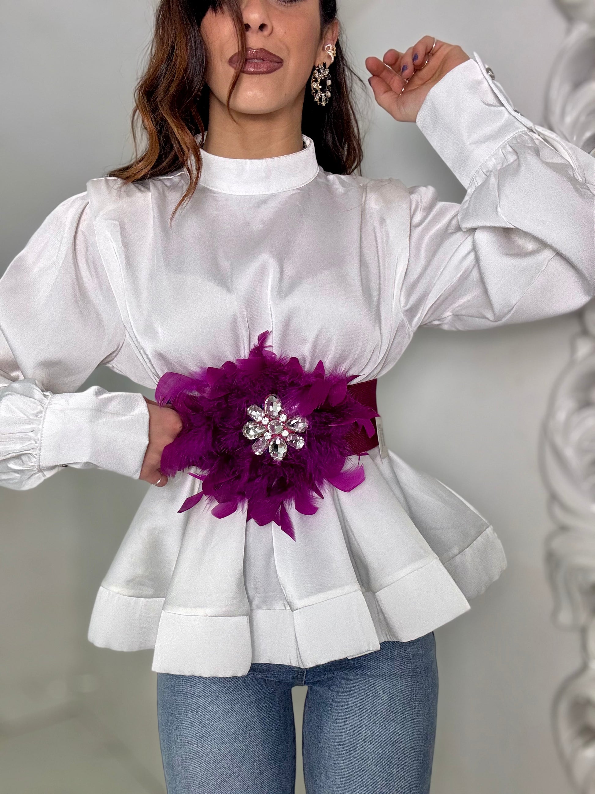 Camicia mezzo collo svasata sul fondo tessuto in raso seta chiusura lampo dietro tg U veste 40-42-44