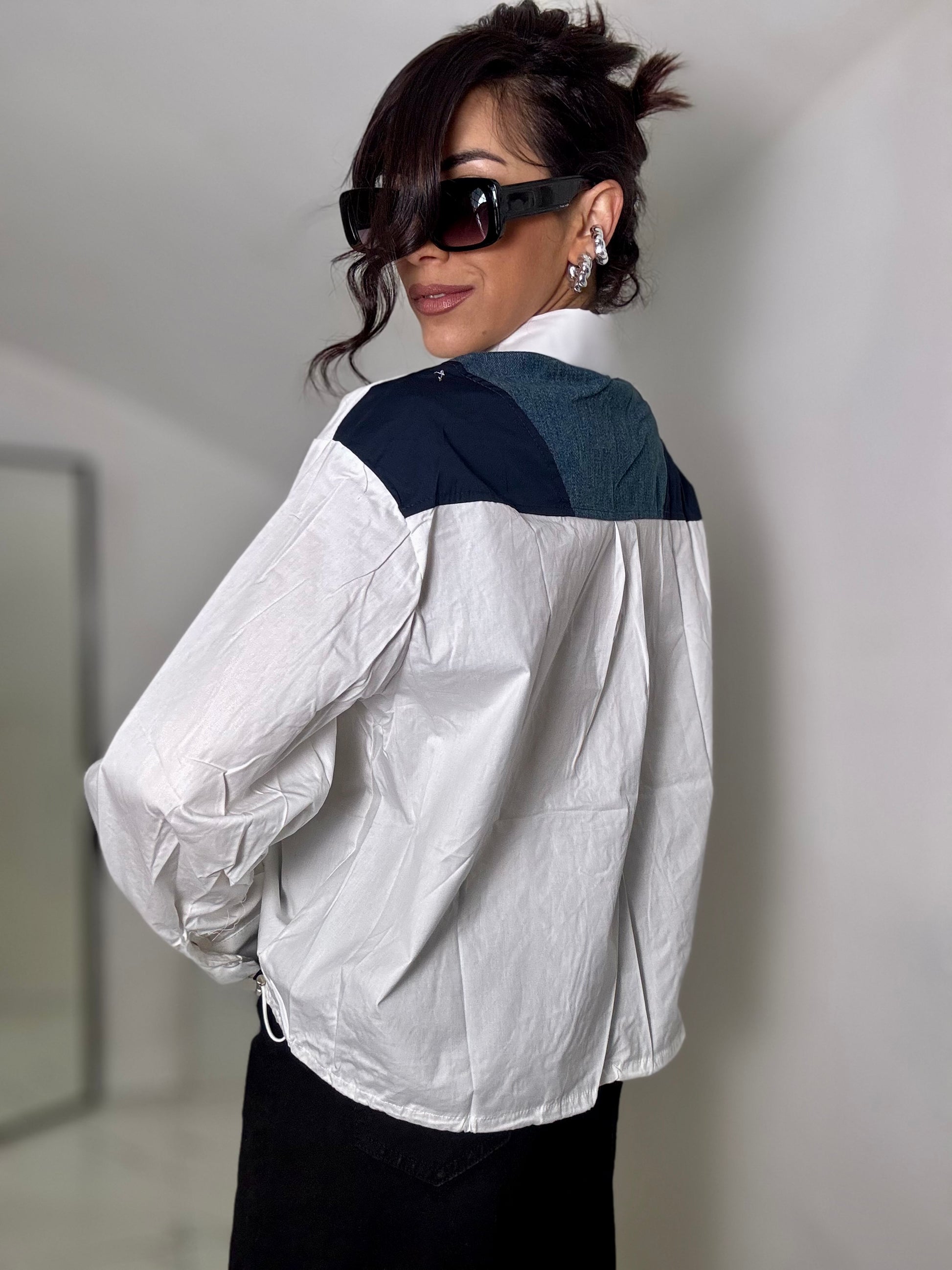 Camicia felpa con bottoni frontali bande a contrasto e coulisse sul fondo tg U veste fino ad una 44