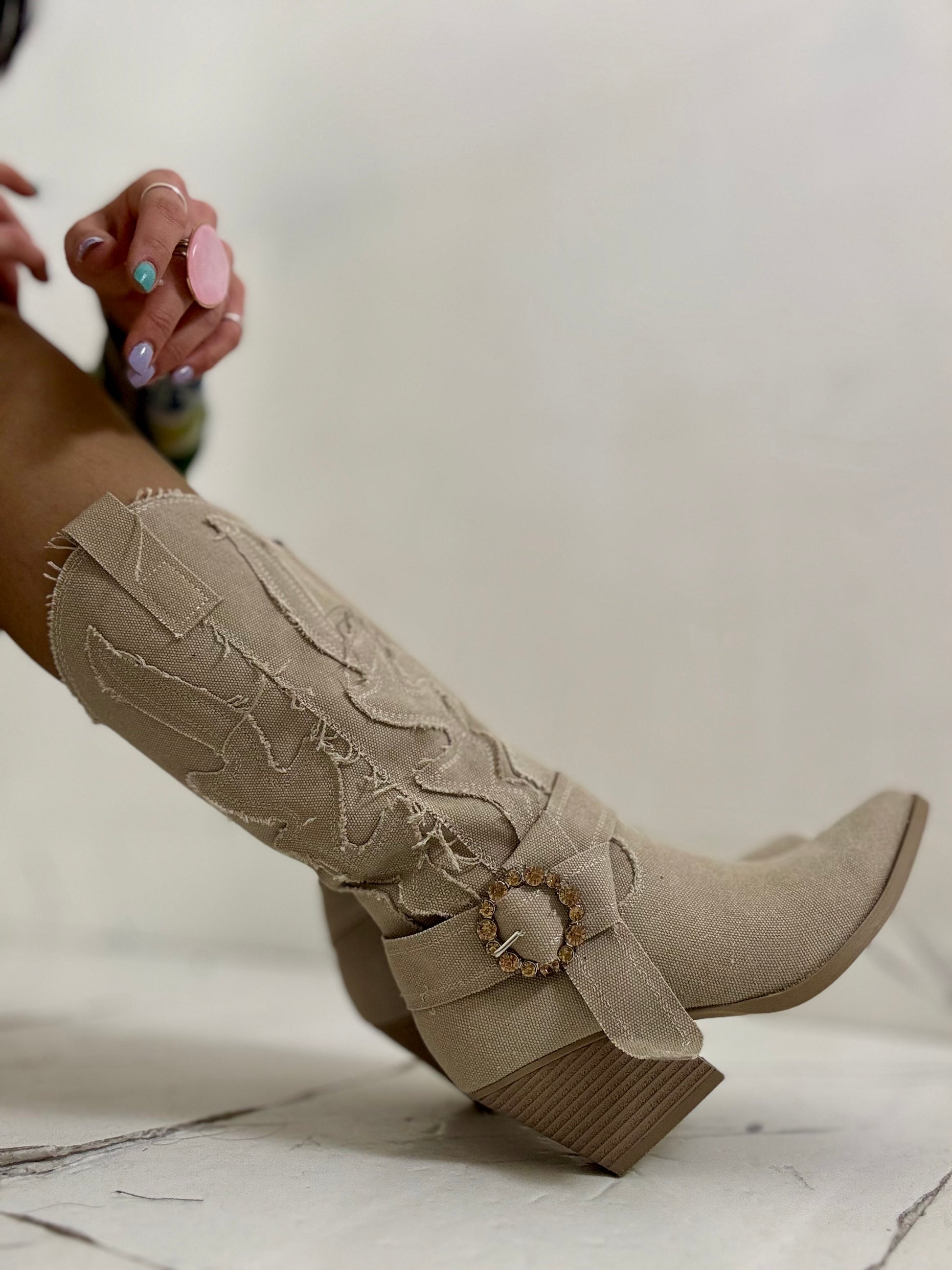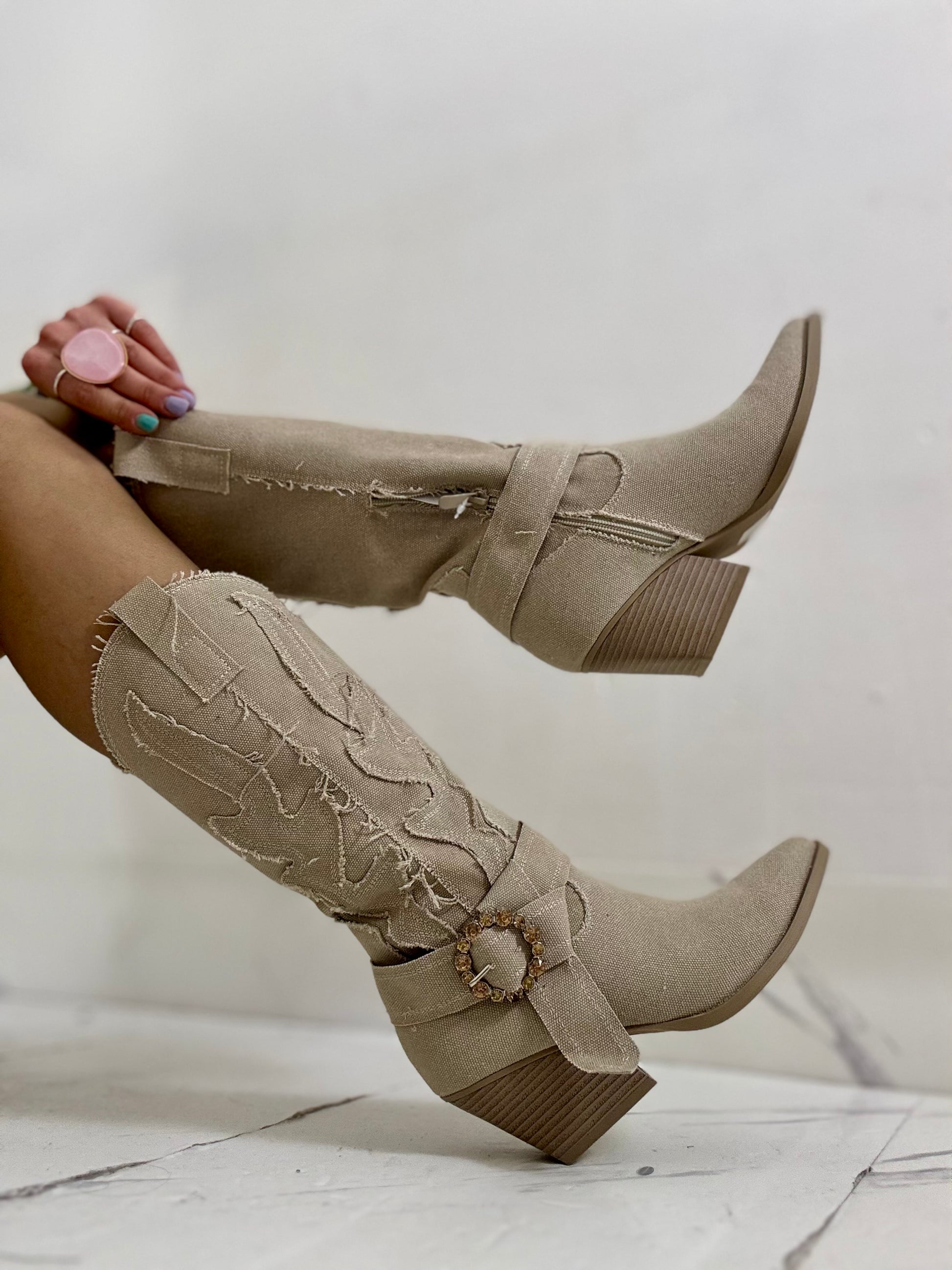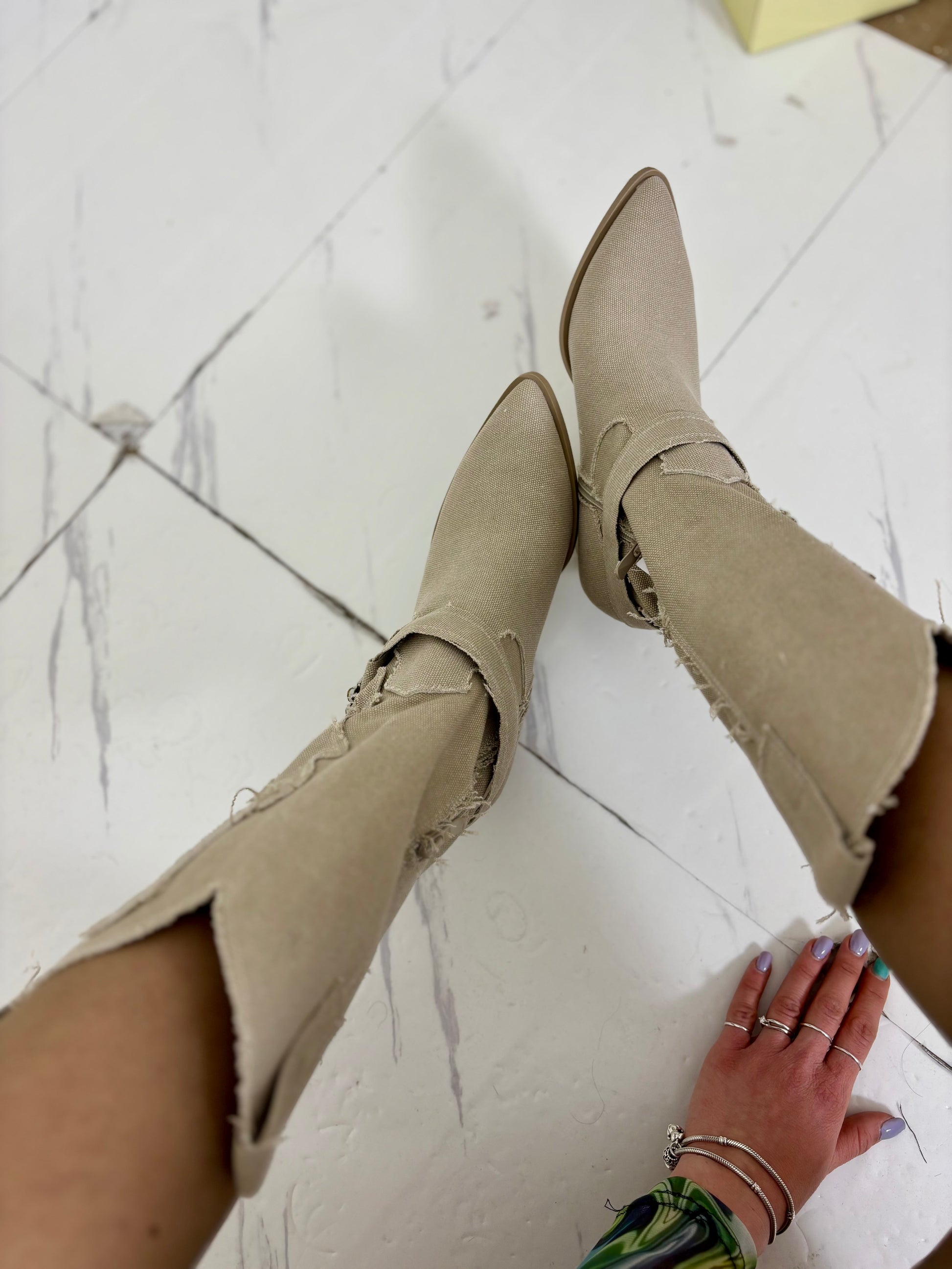 Camperos In denim beige con punta e tacco comodo vestibilità giusta