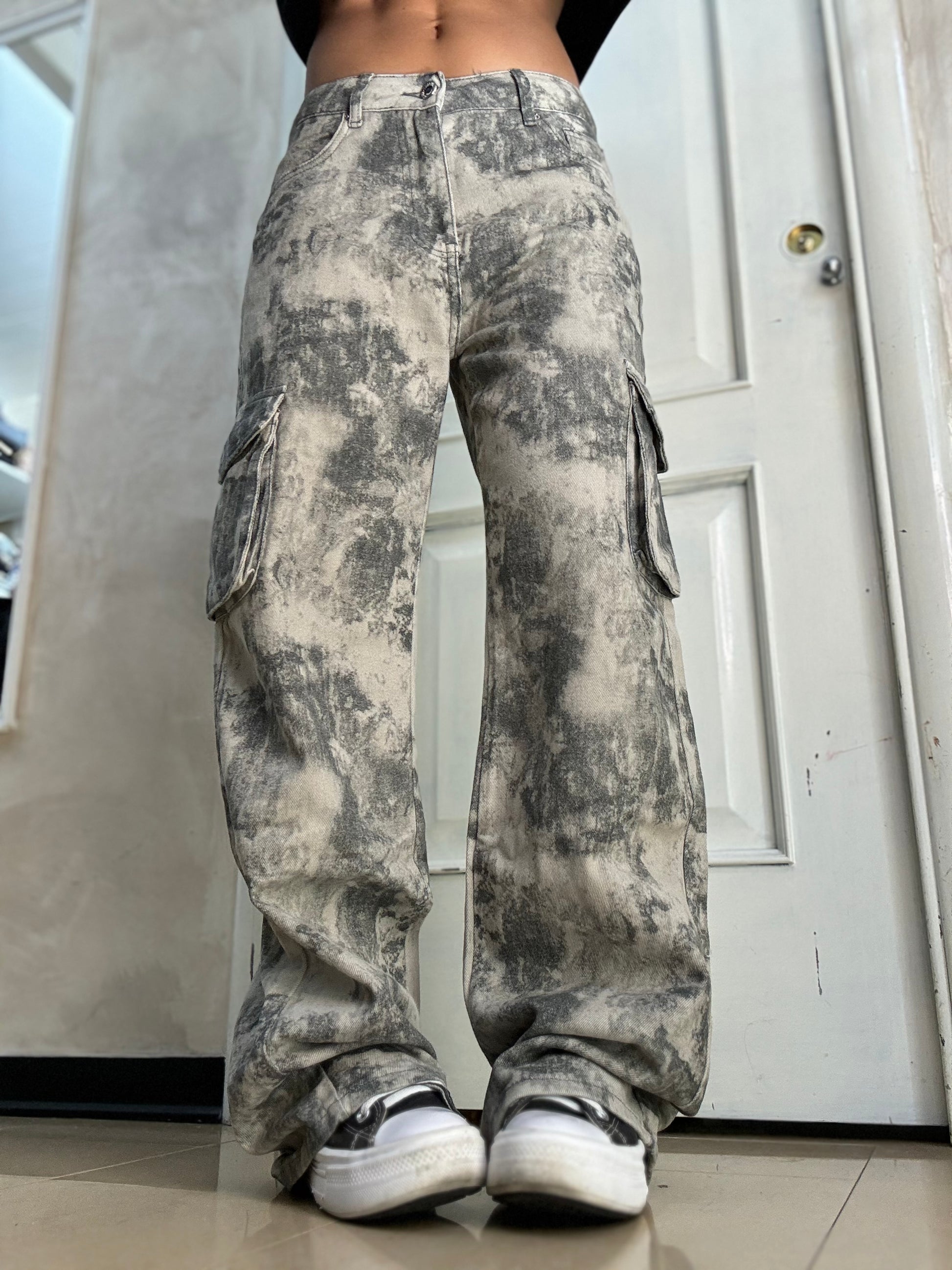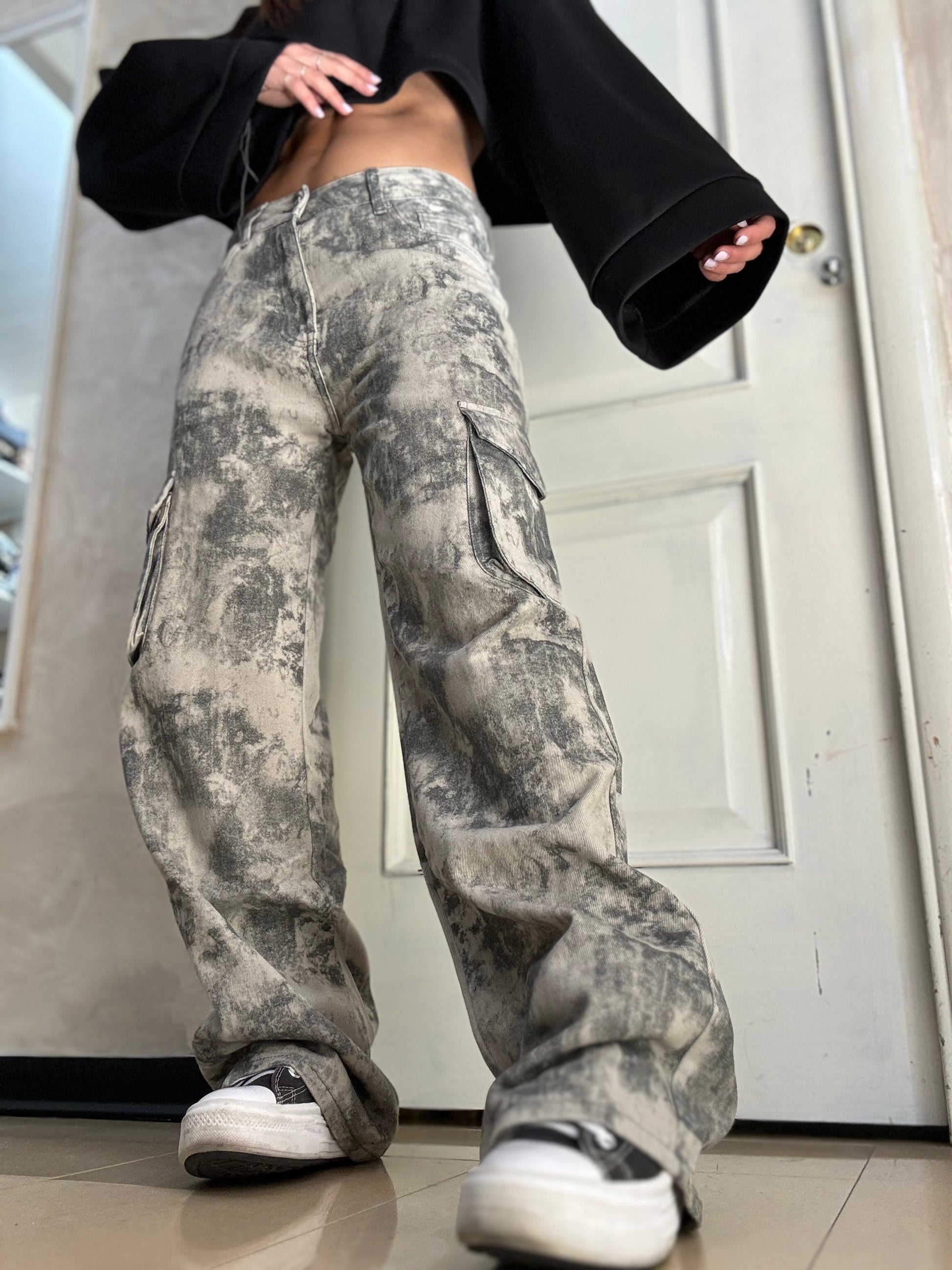 Cargo effetto slavato taglio dritto con tasconi laterali