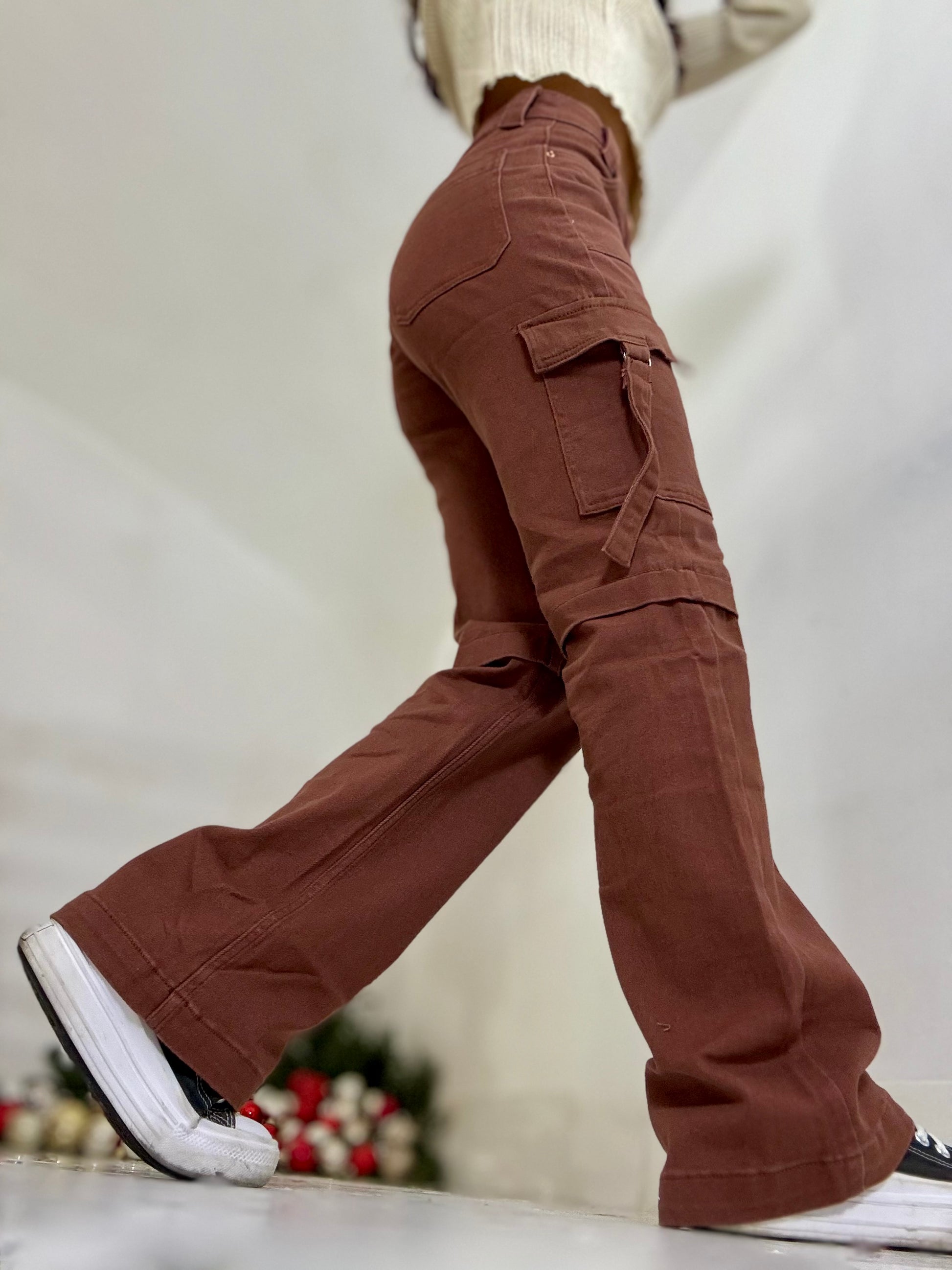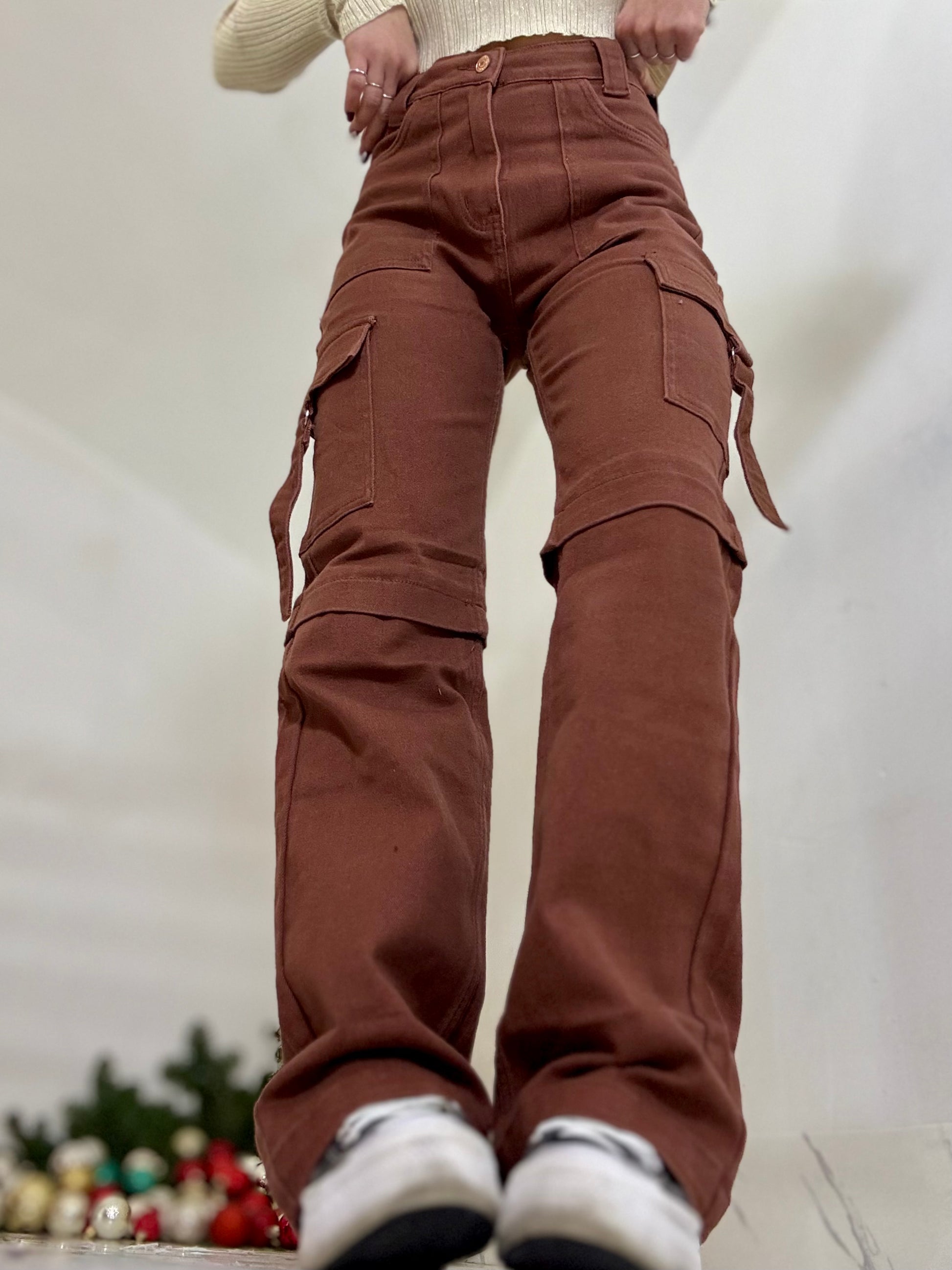 Cargo taglio dritto con tasconi laterali tessuto elastico