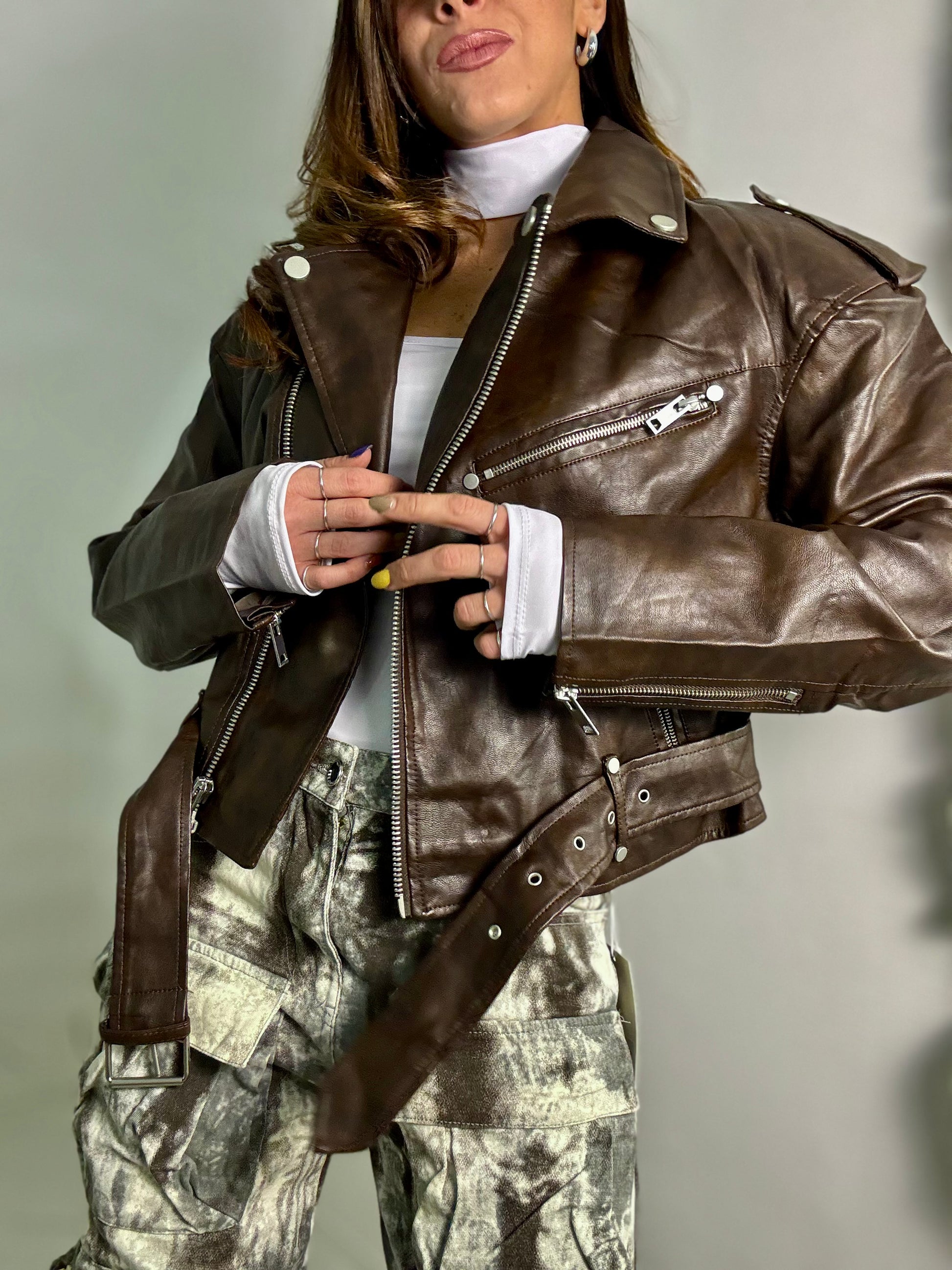 Chiodo doppio petto lunghezza regolare con cintura e zip