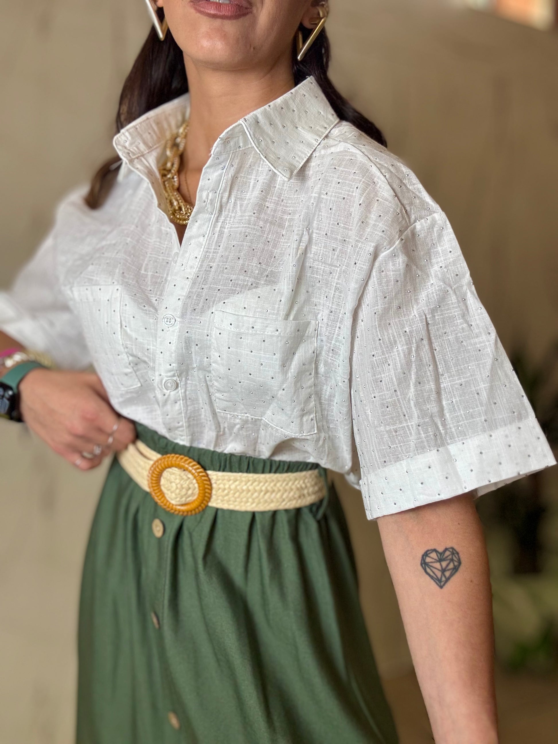 Camicia CROP strass con tasche frontali tg U veste fino ad una 44 46