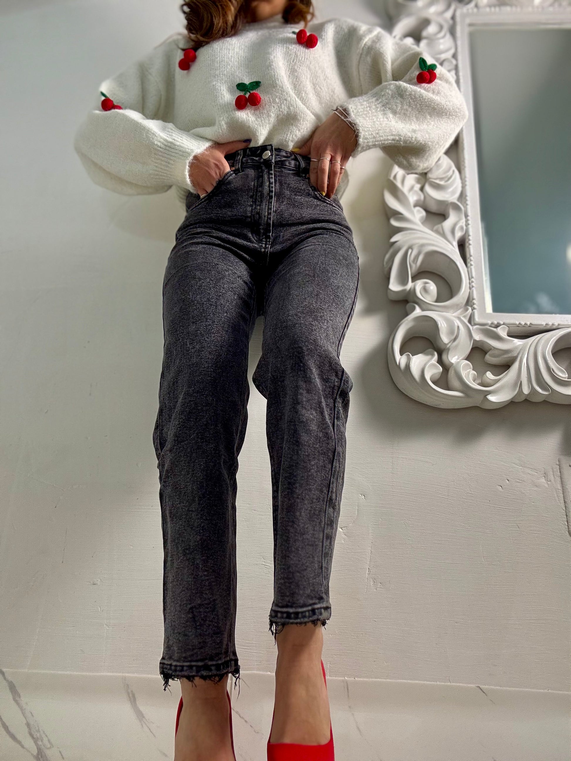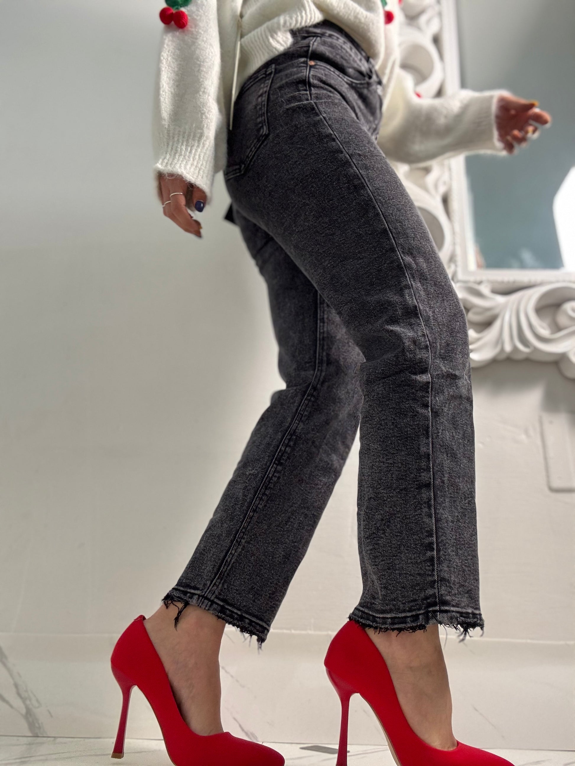 Denim Premium quality grigio slavato modello mom tessuto semi elastici