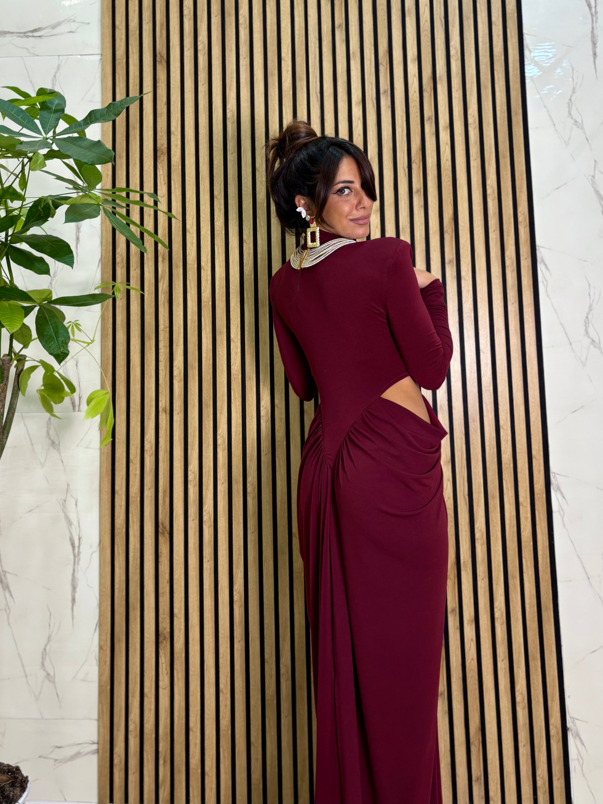 Abitino lungo vestibilità morbida con dettaglio aperture e drappeggi morbidi , spalline strutturate tg U veste fino ad una 44-46