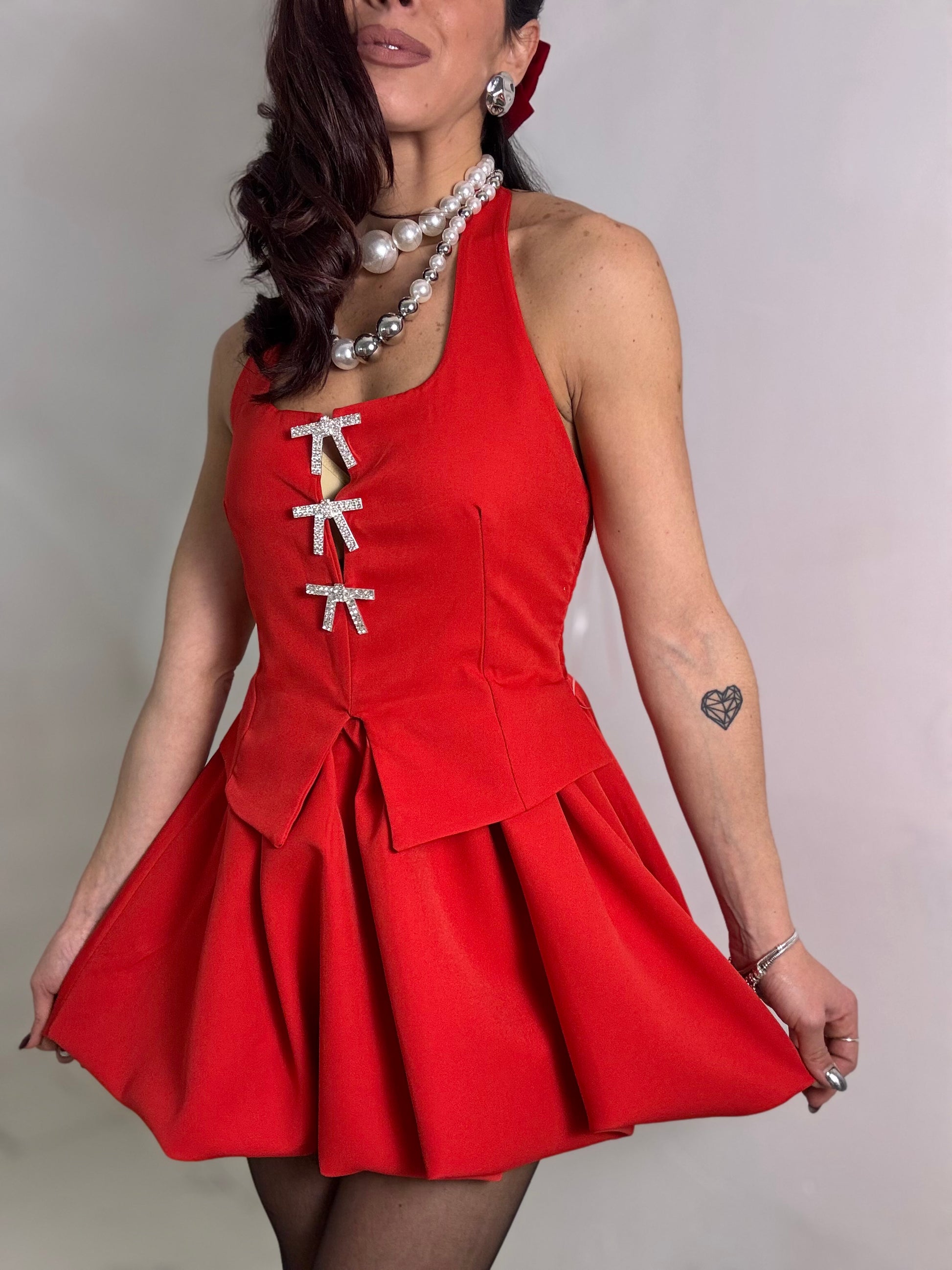 Abitino a palloncino con dettagli fiocchetti frontali veste fino ad una 44