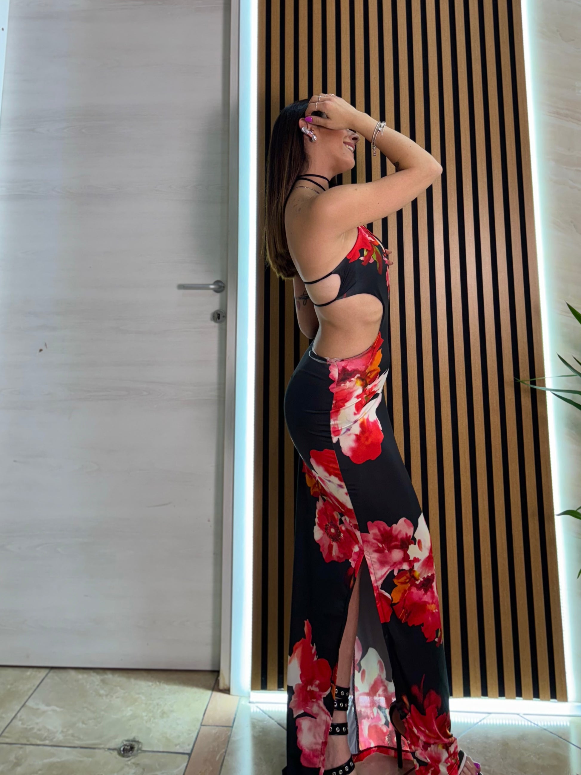 Abito lungo floreale con aperture frontali e la laterale taglia unica veste fino ad una 44