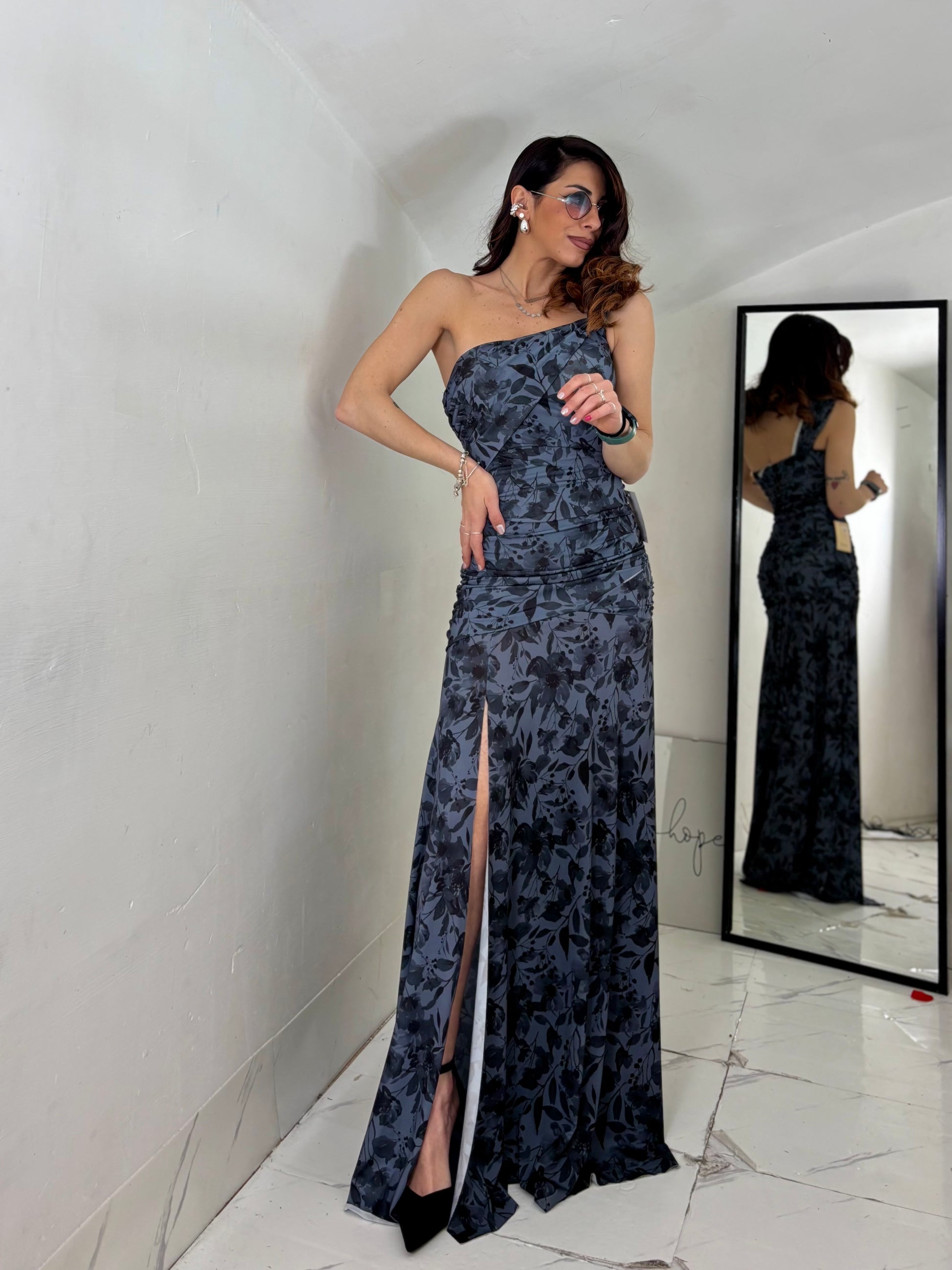 Abito lungo floreale avvitato e scende svasato tessuto elastico tg U veste fino ad una 44