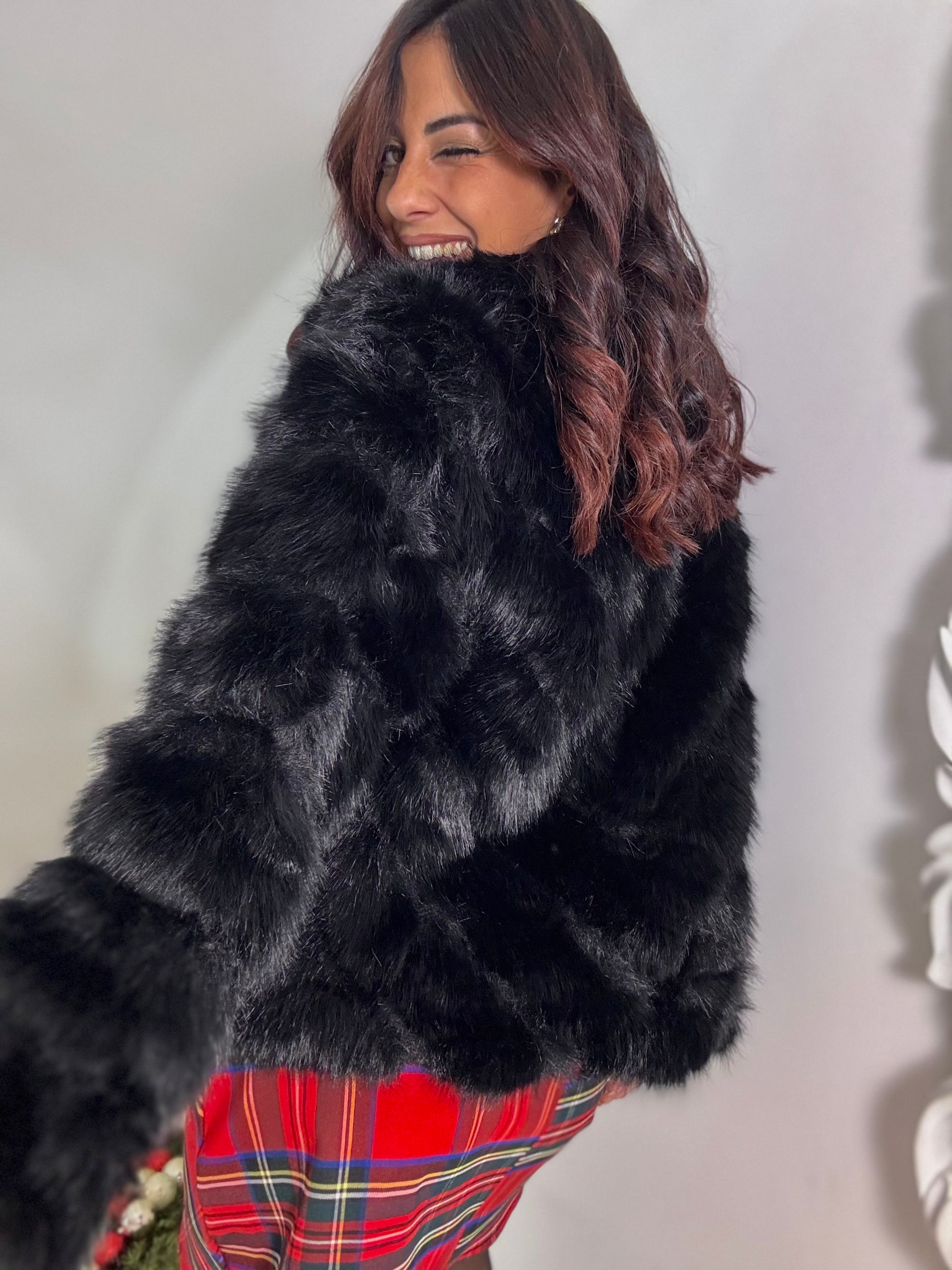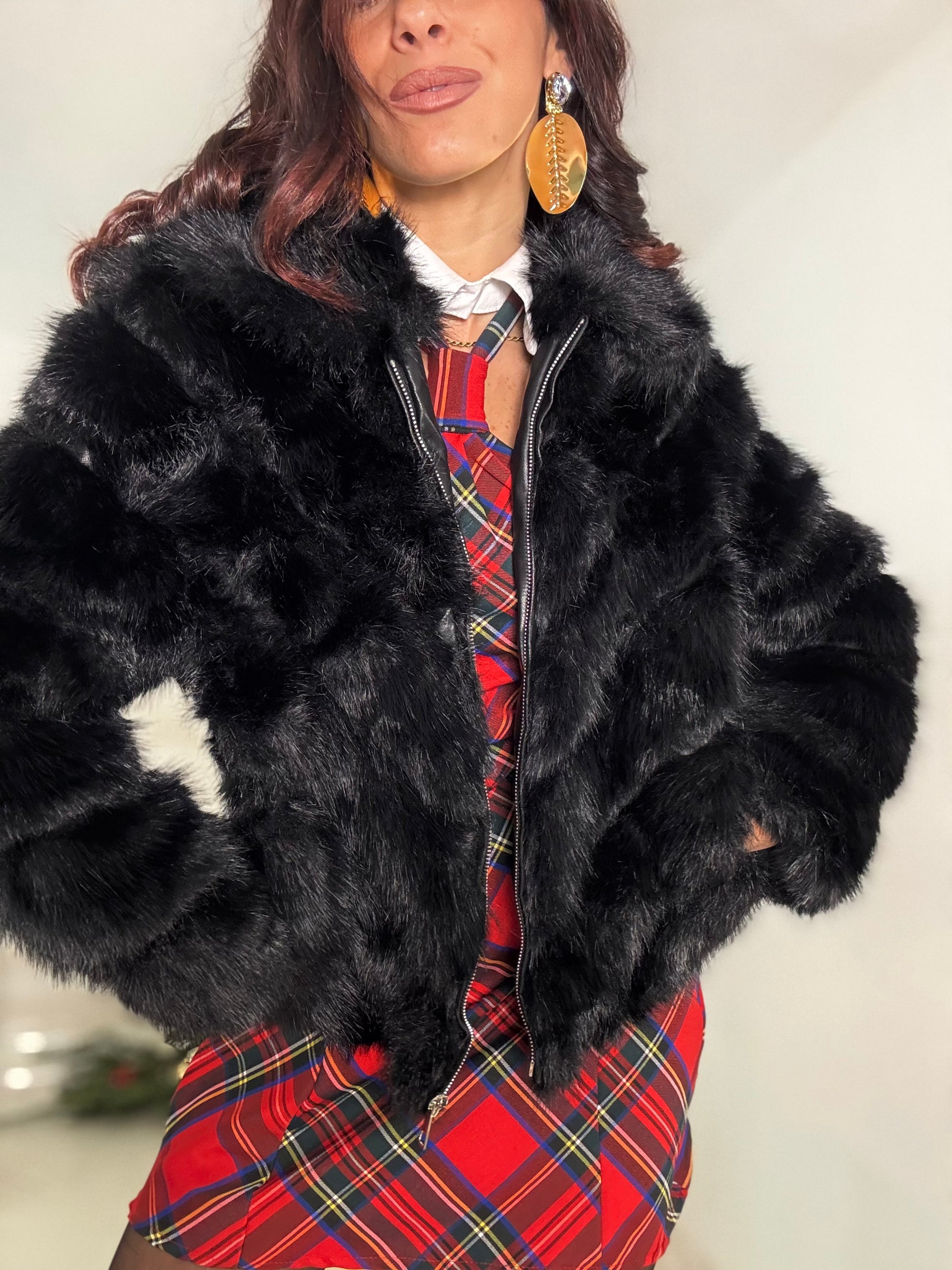Eco Fur strutturata con chiusura zip frontale veste fino ad una 44
