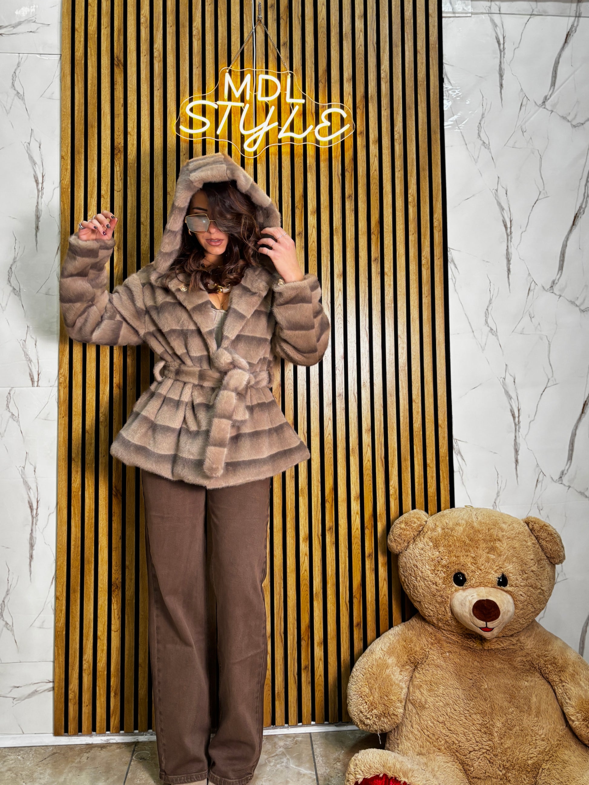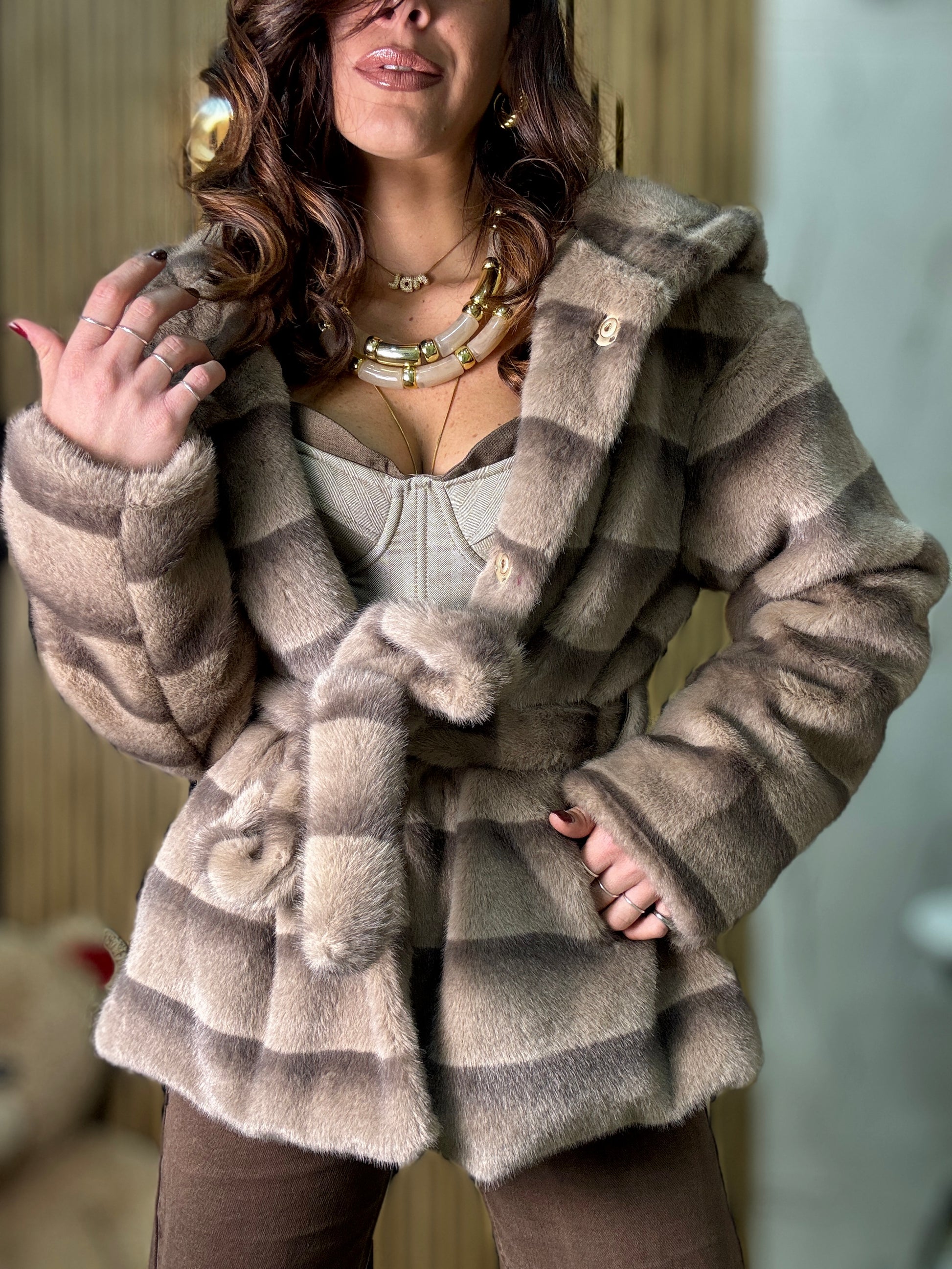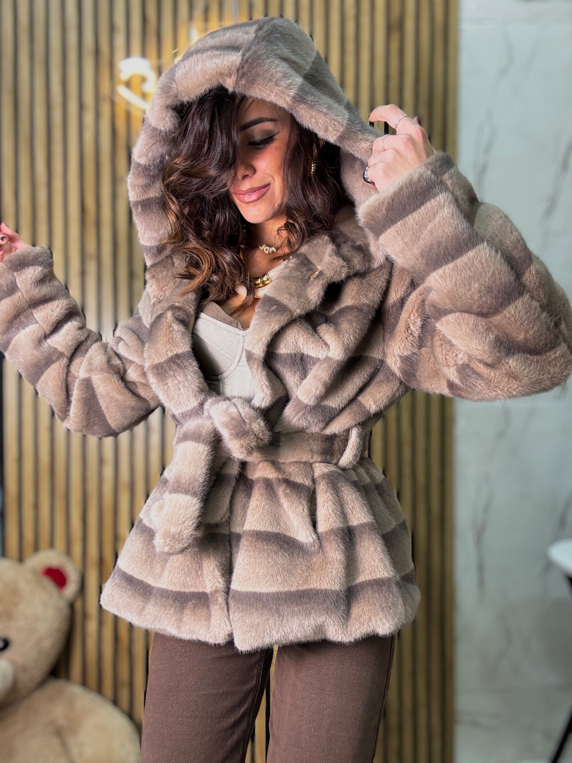 Ecofur con cintura e cappuccio lunghezza regolare bicolore tg U veste fino ad una 44-46
