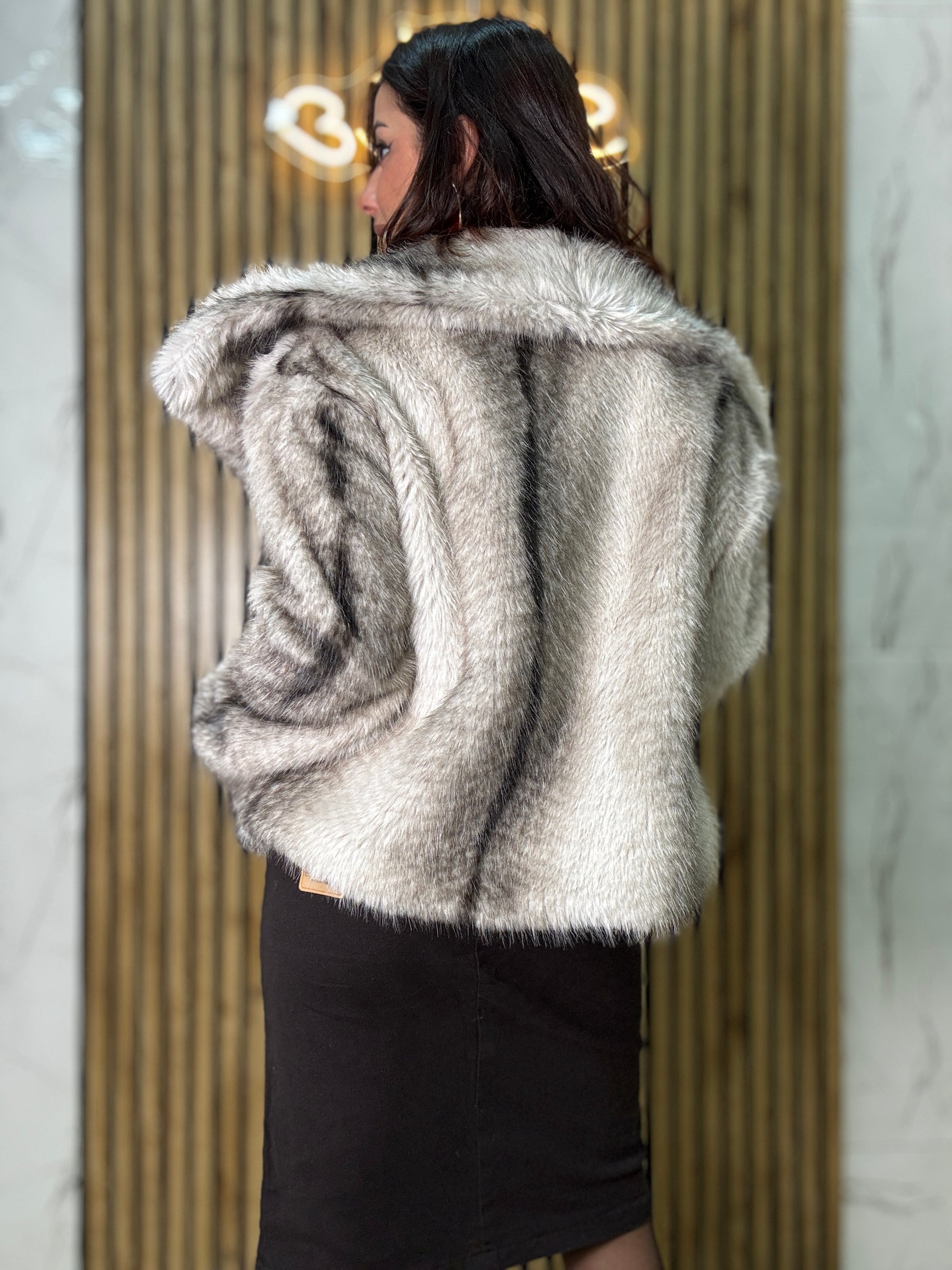 EcoPelliccia beige con dettagli marroni doppio petto maxi lunghezza regolare tg U veste fino ad una 46