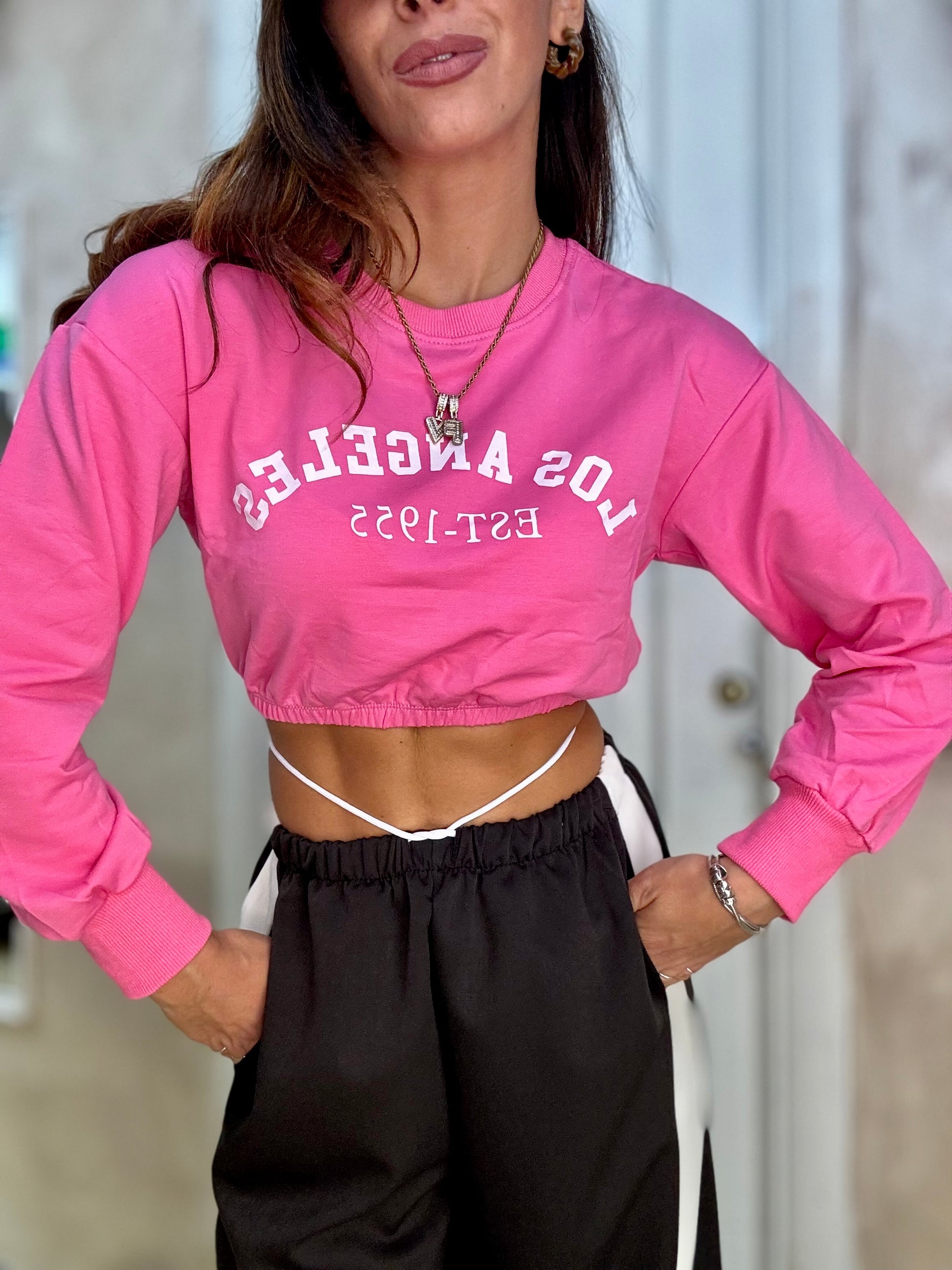 Felpa Crop con elastico sul fondo stampa frontale tessuto leggero
