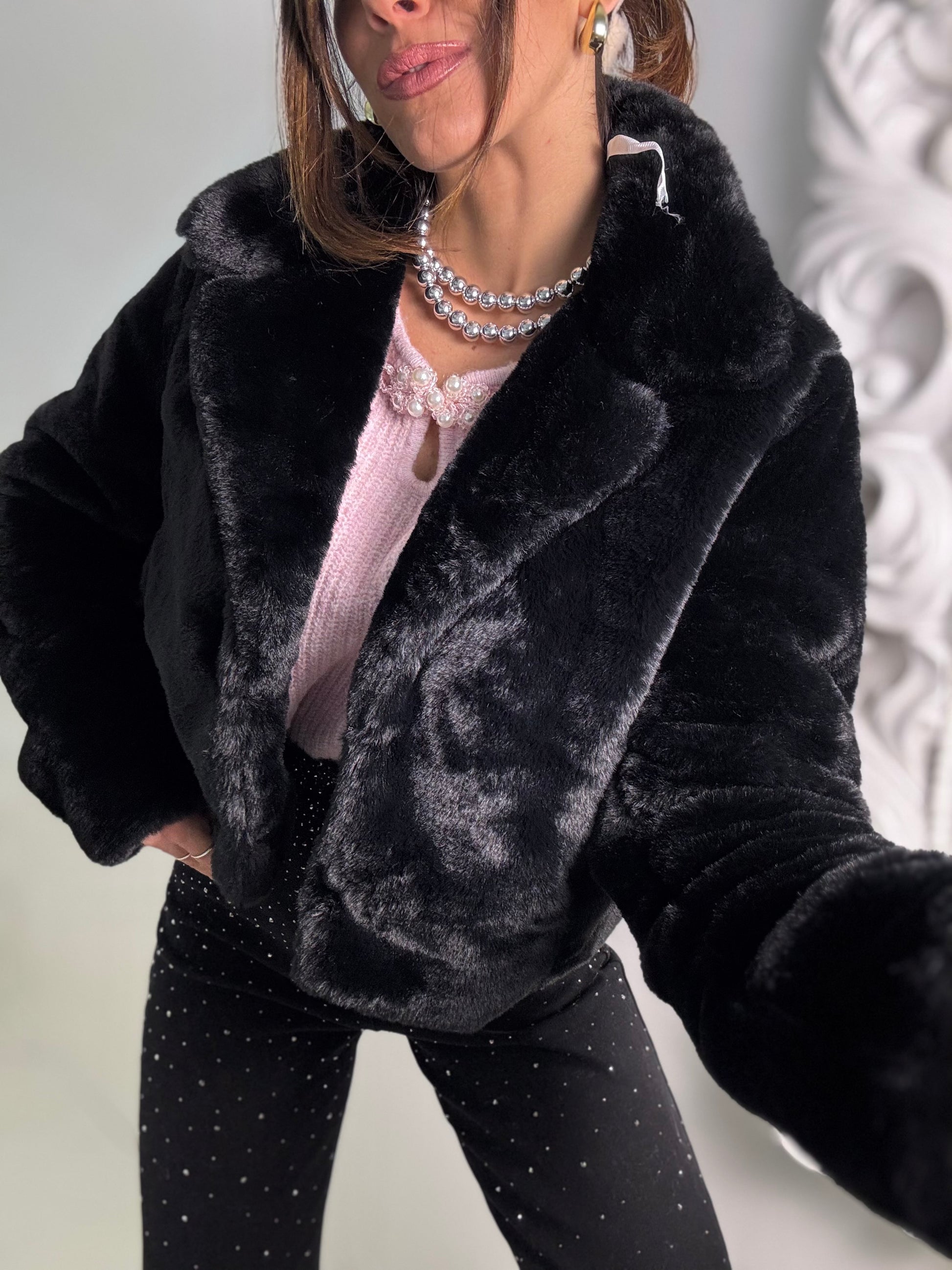 FUR CROP di colore nero in eco pelliccia