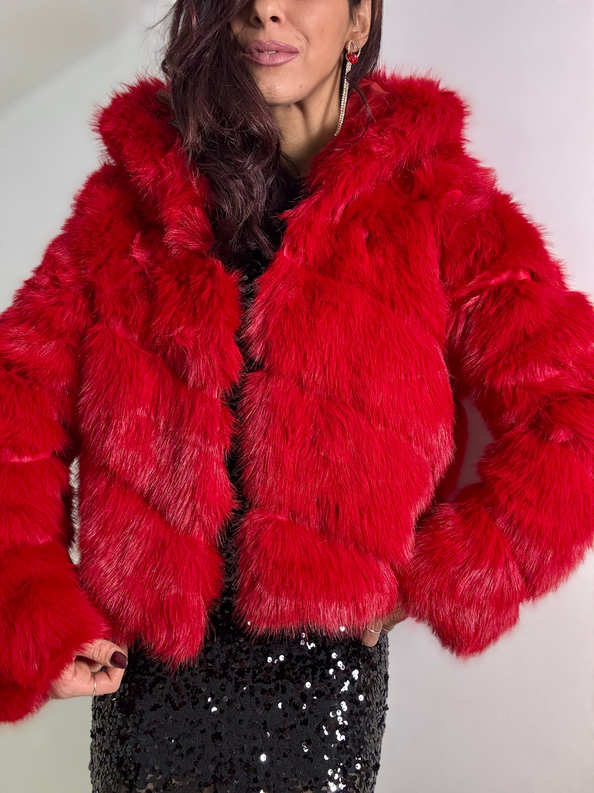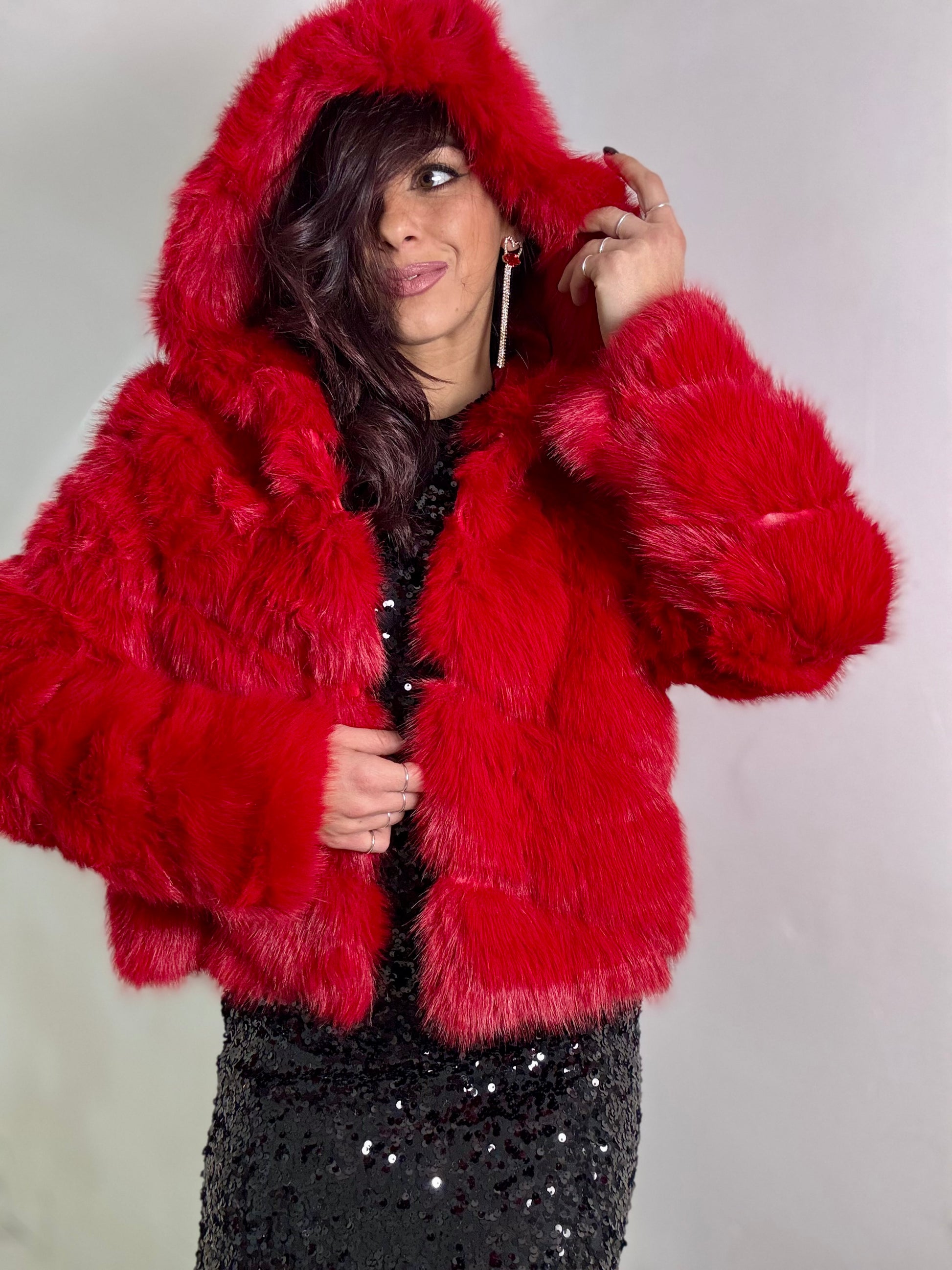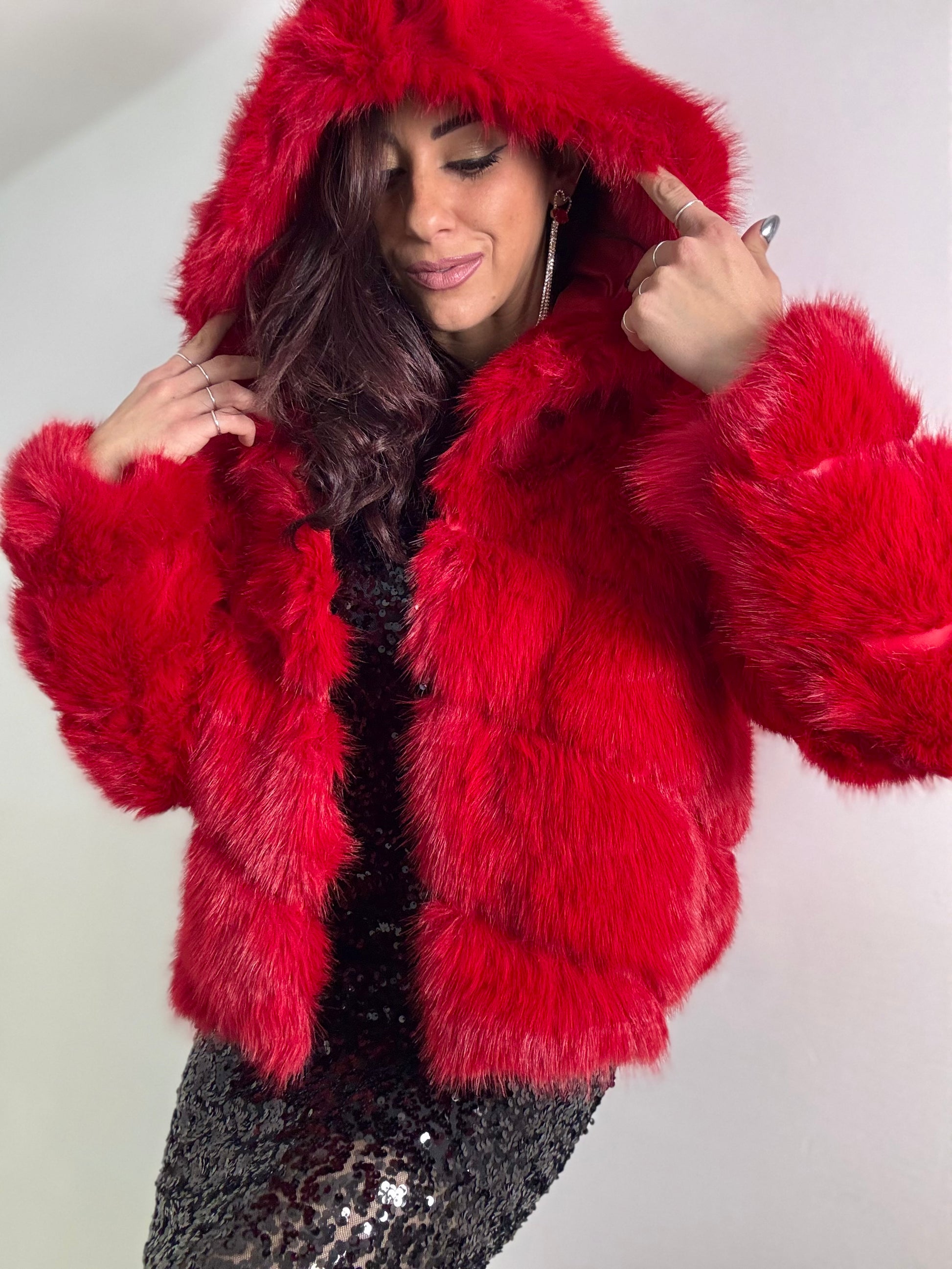 FUR Strutturata con maxi cappuccio e chiusura ciappe frontali veste fino ad una 46