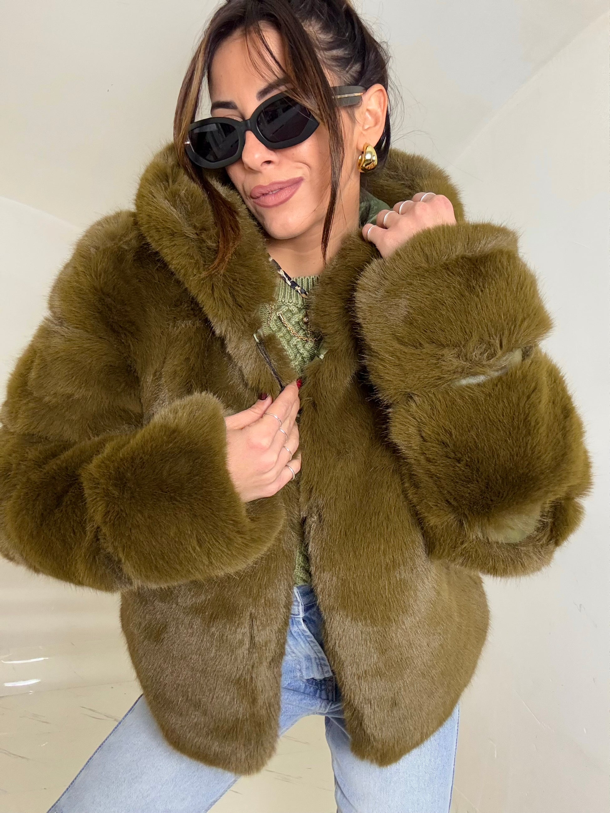 Ecofur con chiusura ciappette frontali maxi cappuccio tg unica veste fino ad una 46