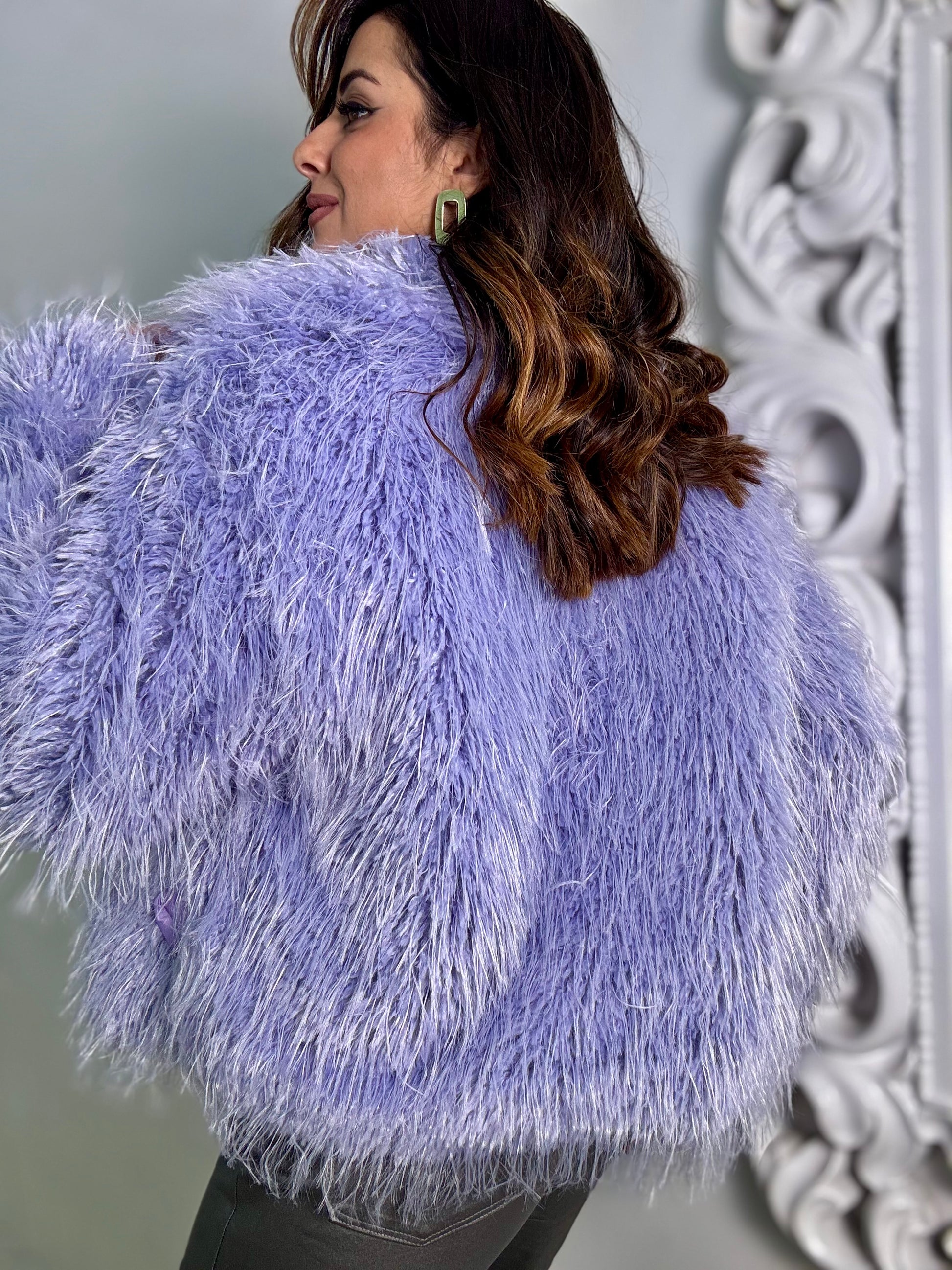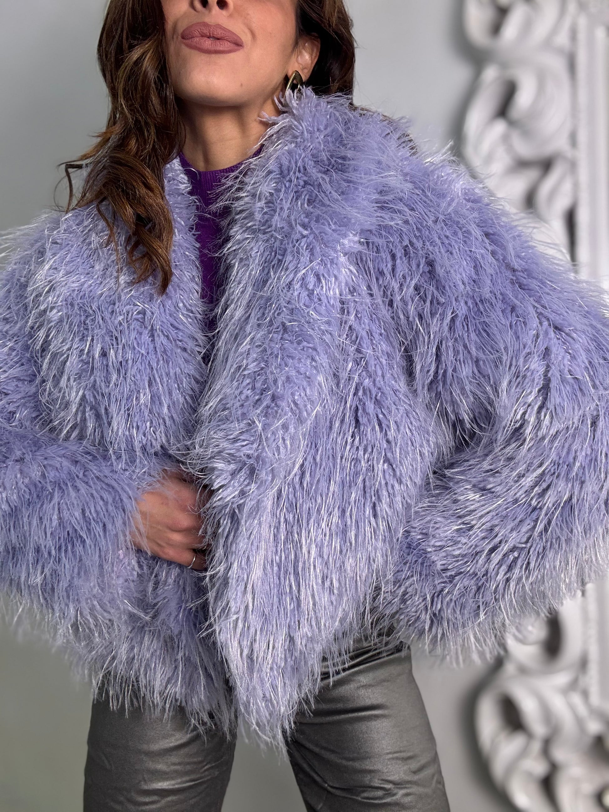 Eco fur pelo voluminosa doppio petto chiusura bottone frontale veste fino ad una 44