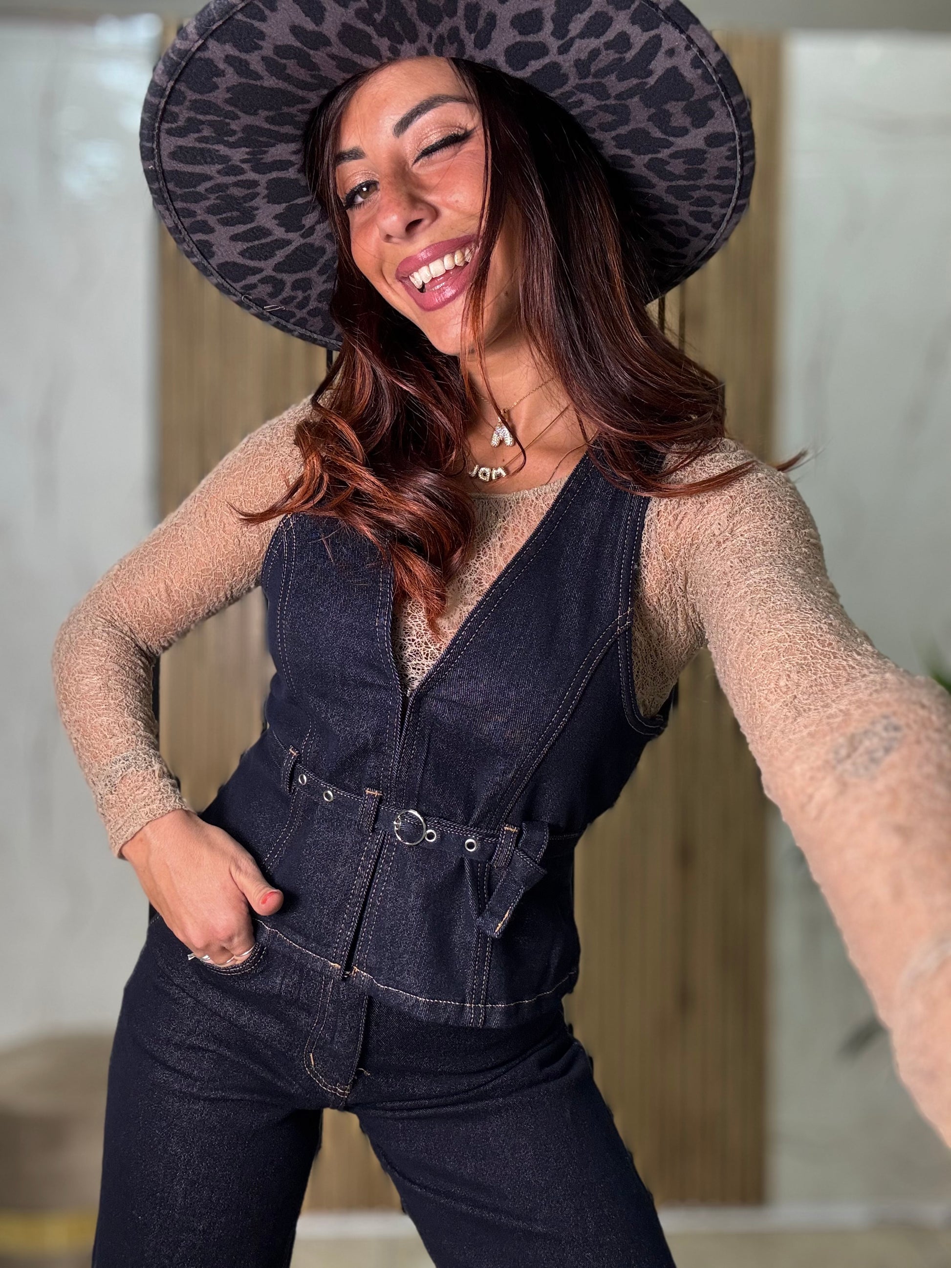 Gilet in denim chiusura ciappa e cinturino mod elastico
