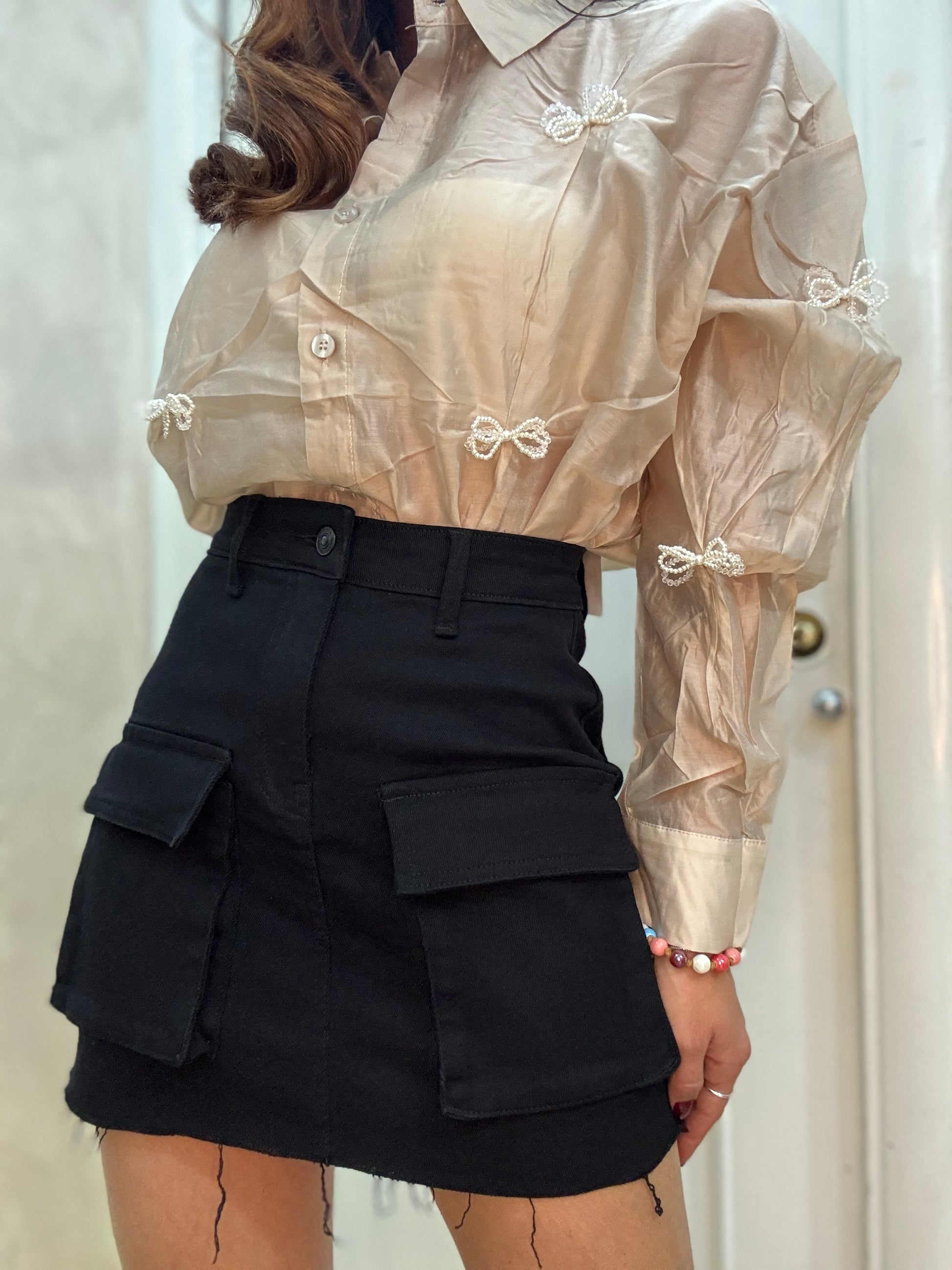 Gonna elasticizzata con tasconi frontali
