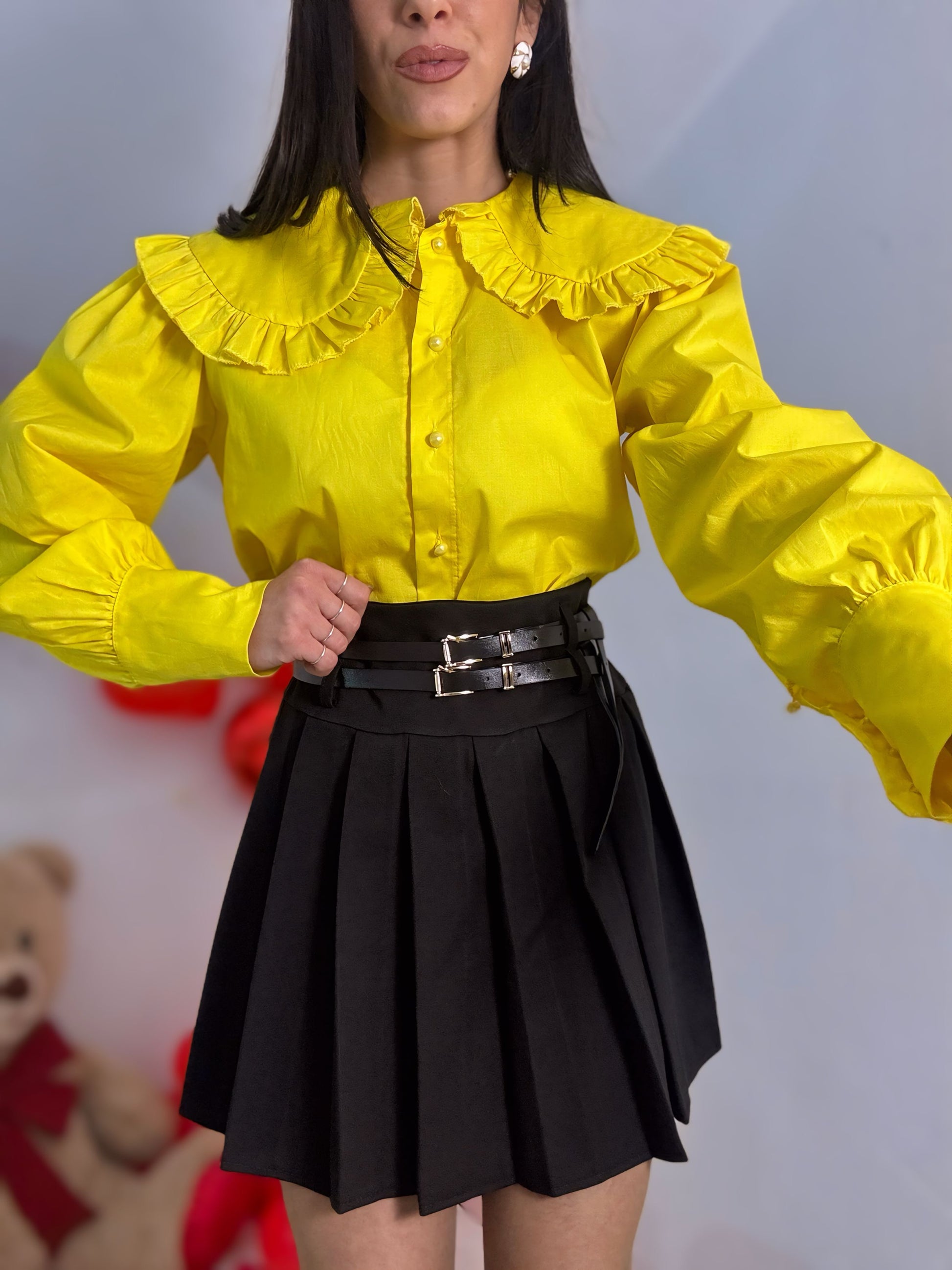 Gonna pieghettata con doppia cintura compresa