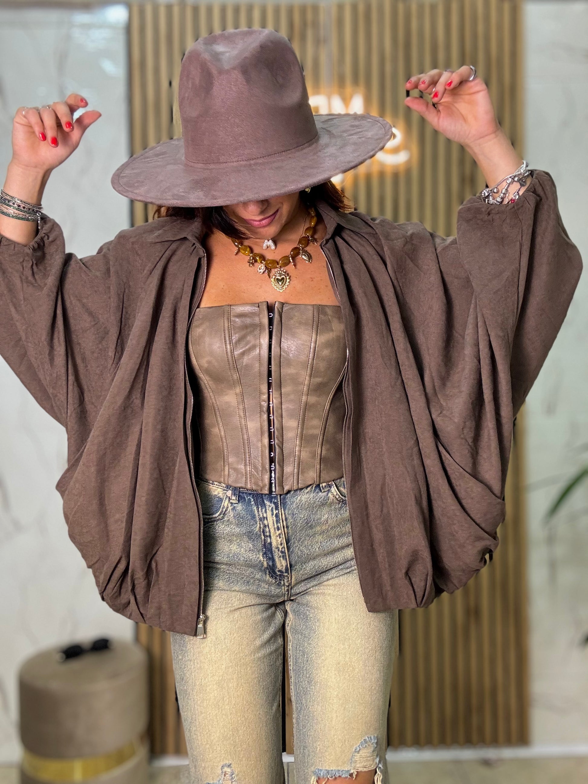 Jacket morbida tessuto leggero modello a palloncino con chiusura zip tg U veste fino ad una 46