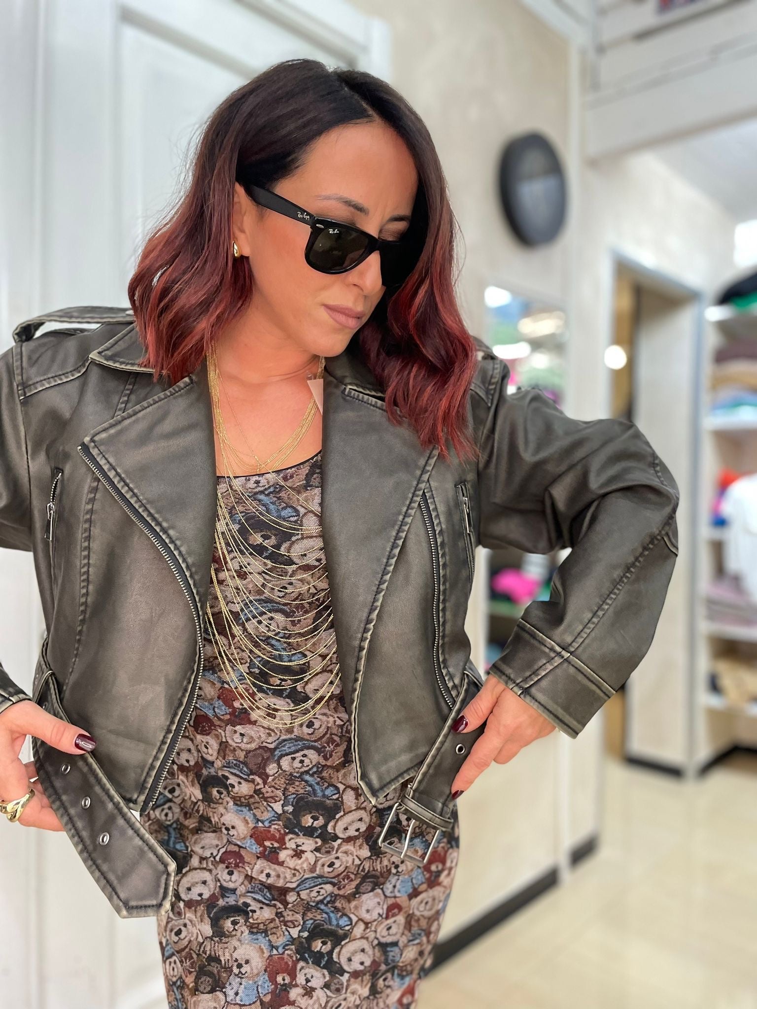 Jacket in ecopelle con cinturino zip e doppio petto