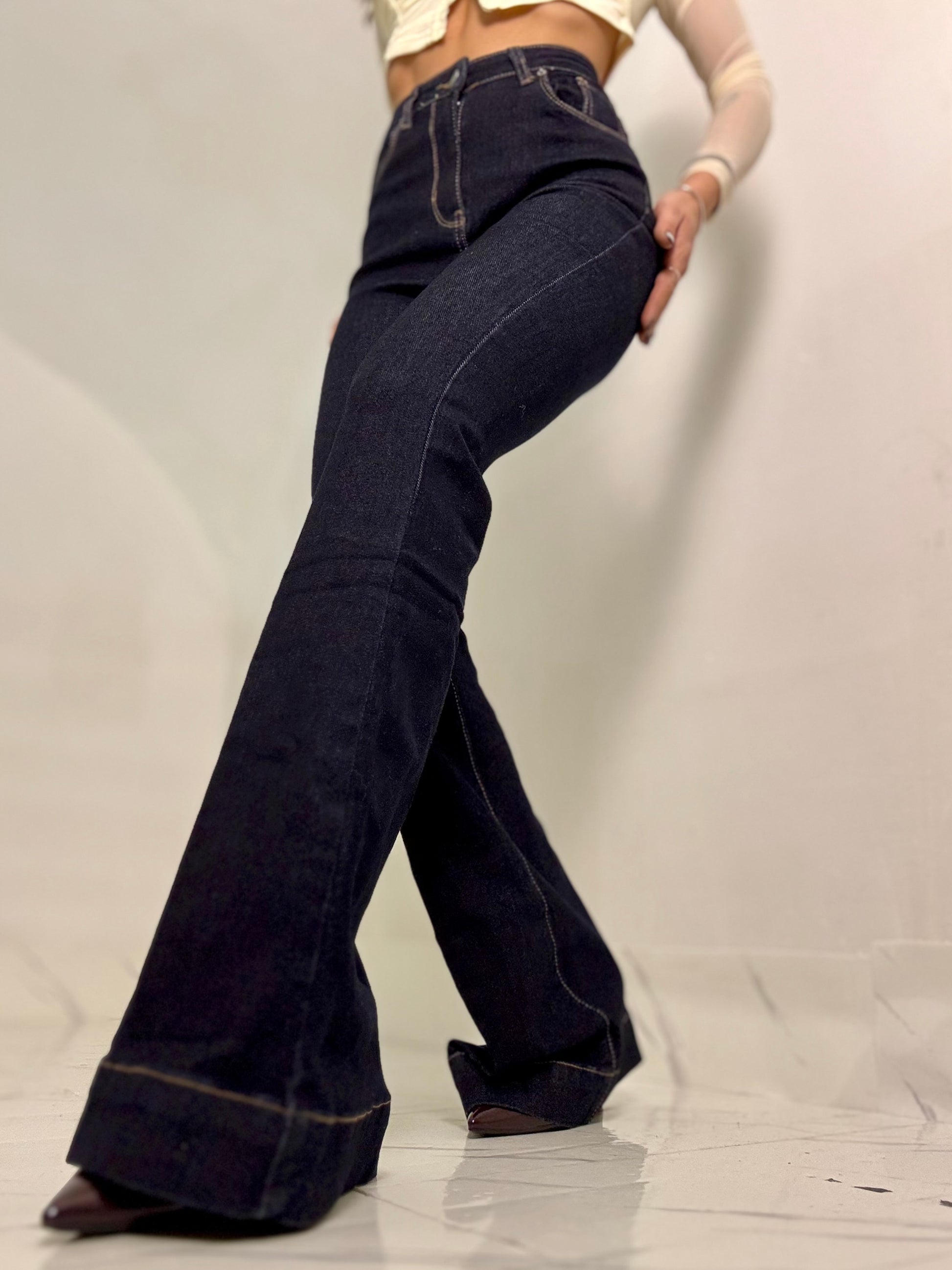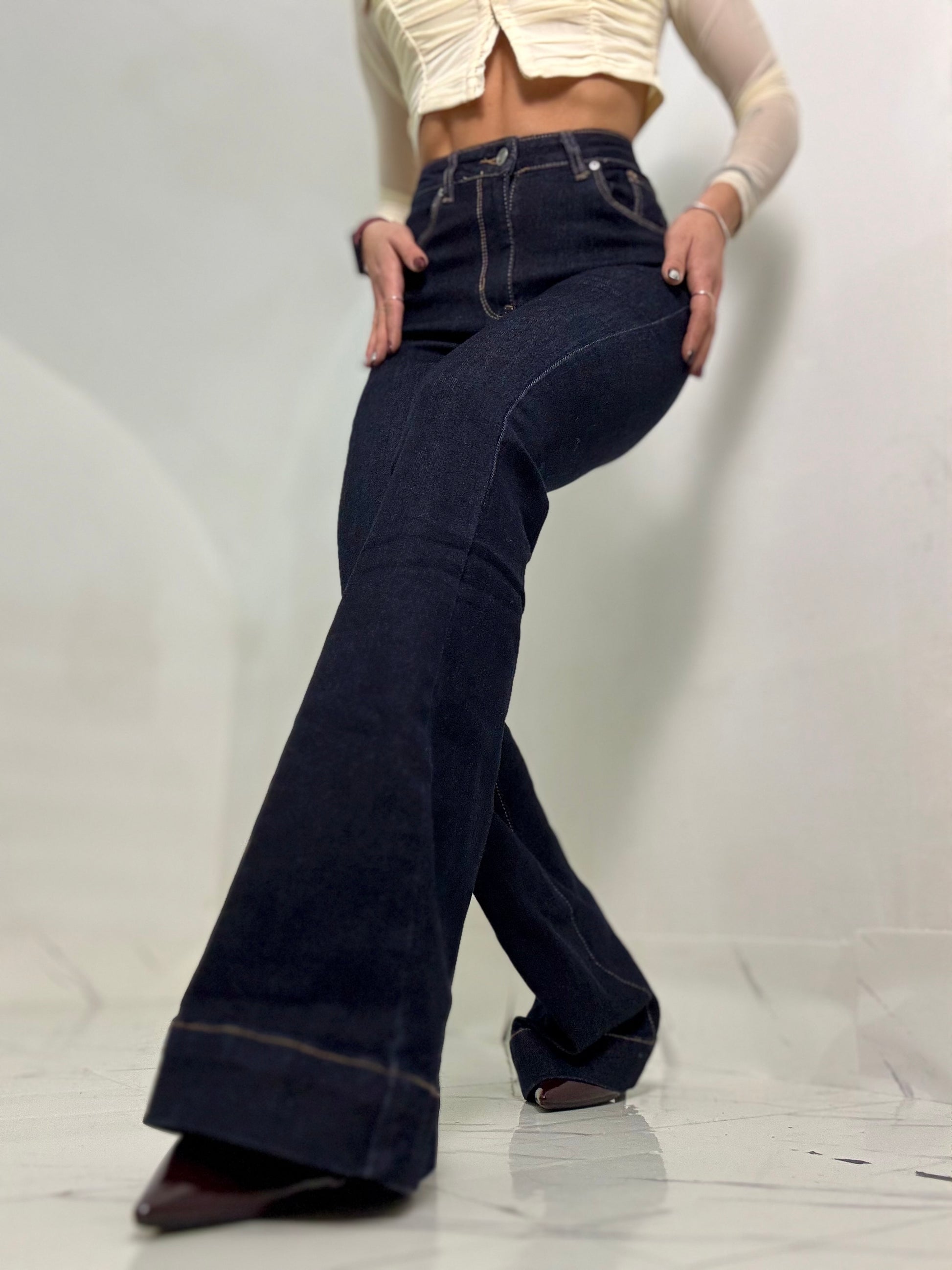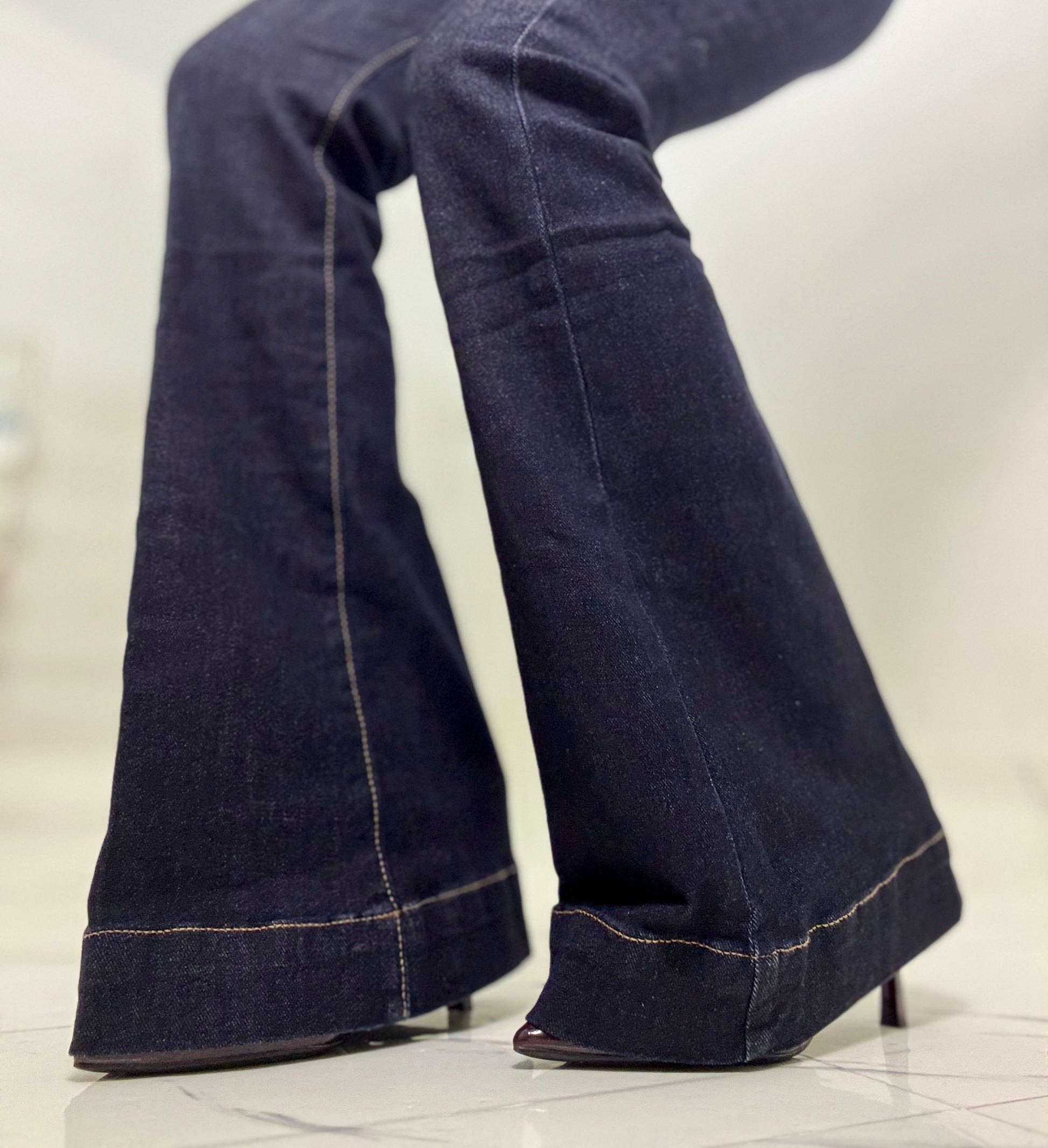 Jeans a zampa tessuto elasticizzato vita altissima vestibilità top