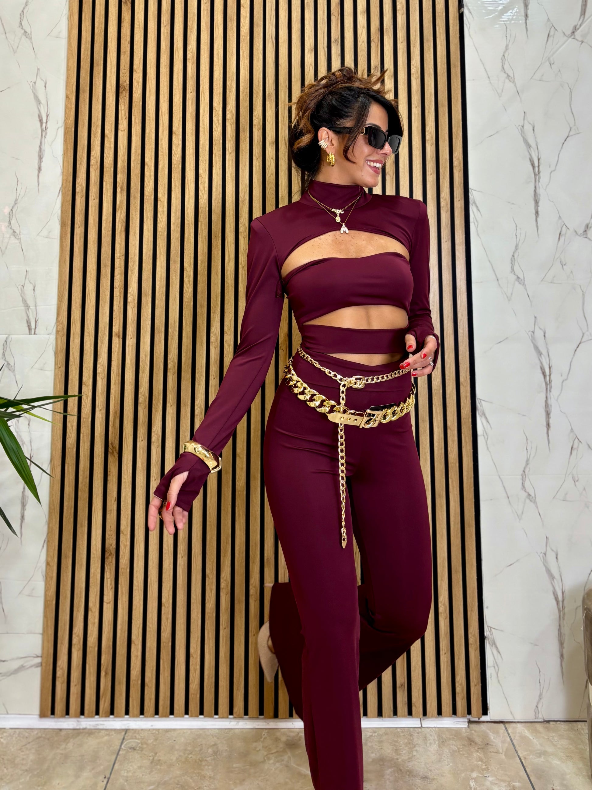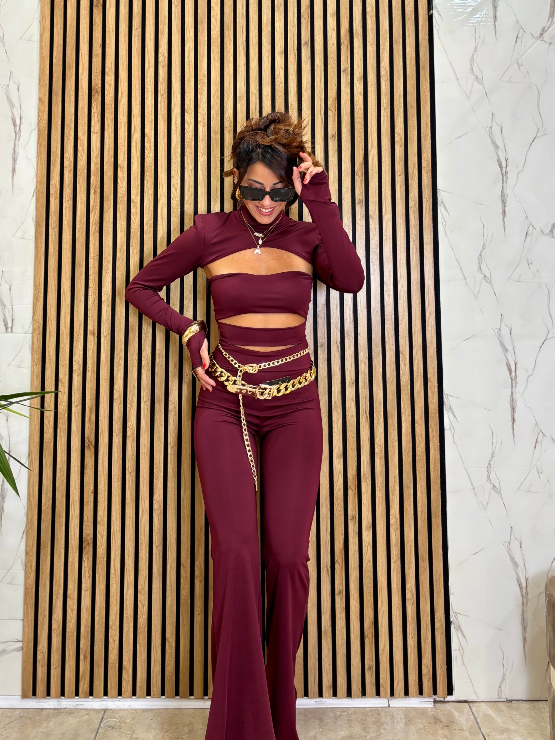 Tutone in licra non trasparente con scollature frontali scende a zampa taglia unica veste fino ad una 44