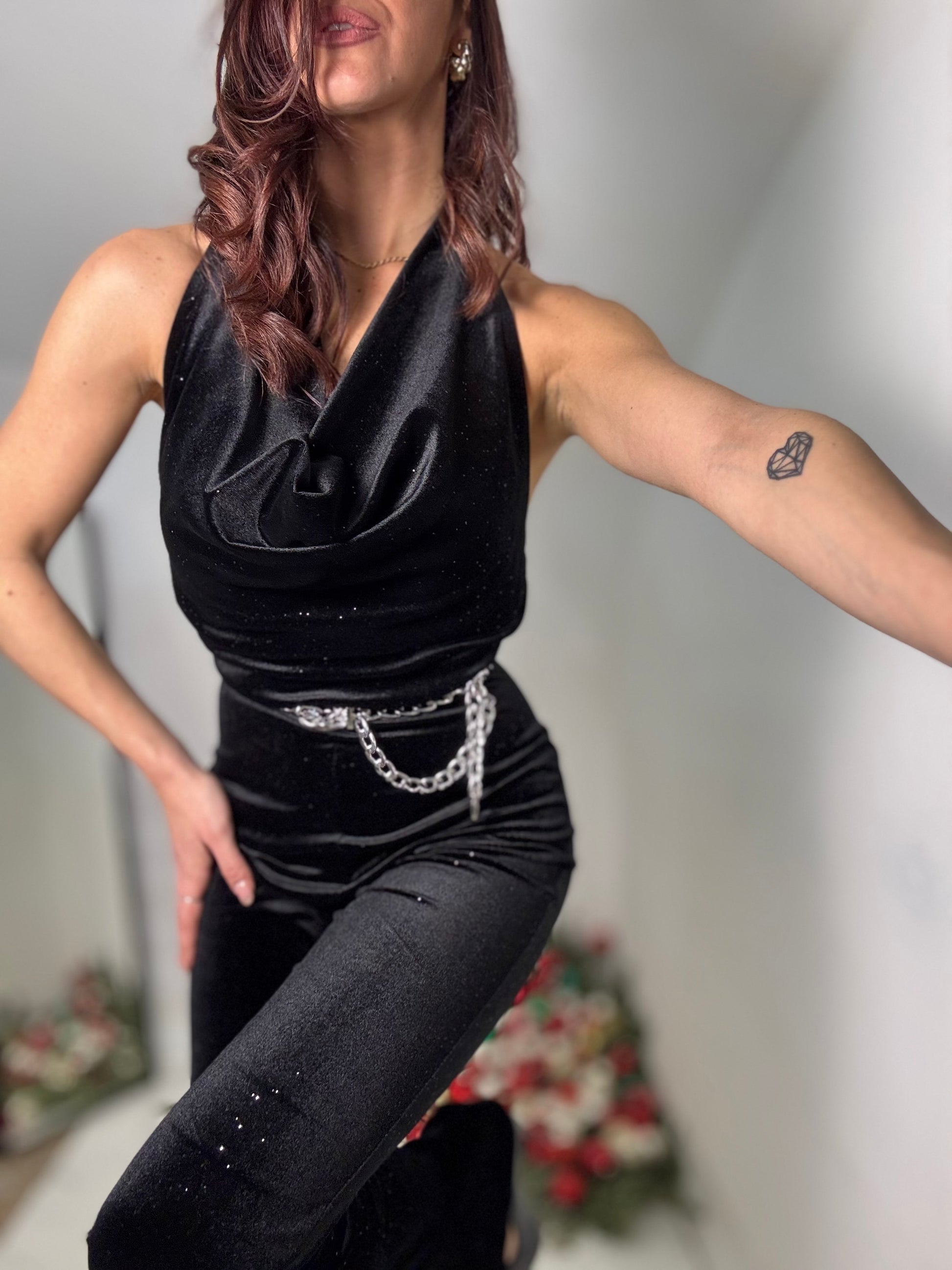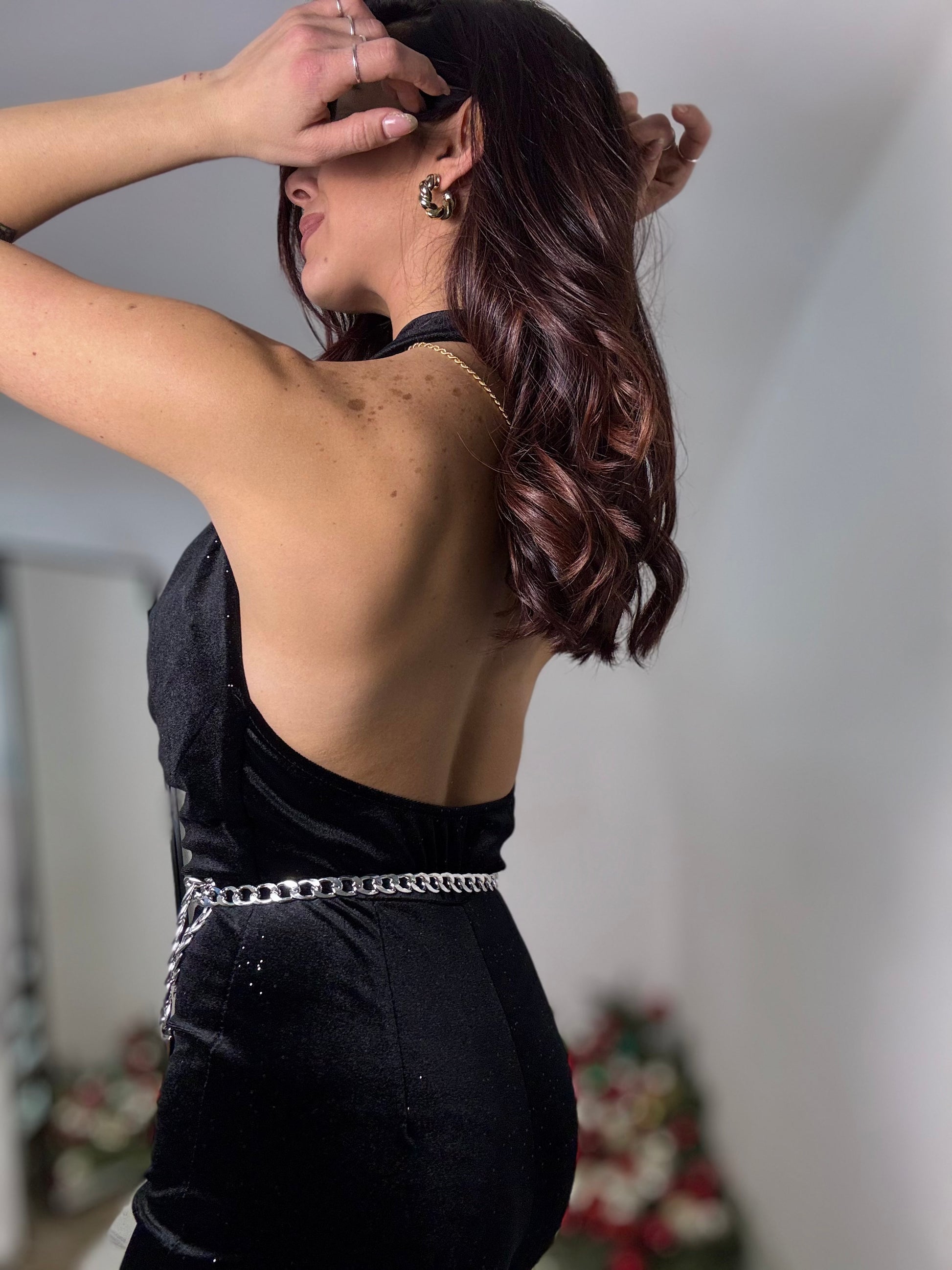Tutone in velluto effetto brillantinato scollo morbido frontale veste fino ad una 44-46